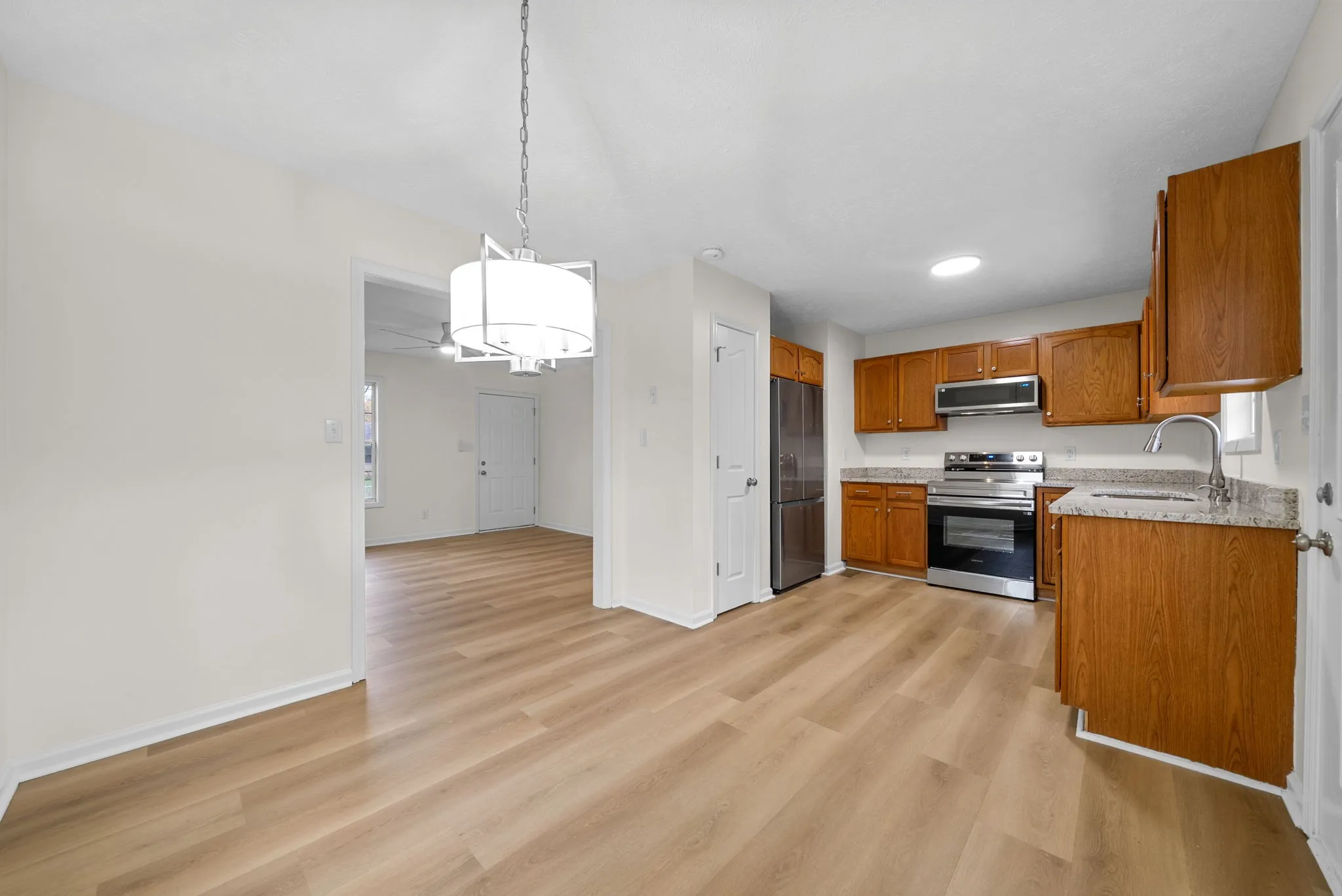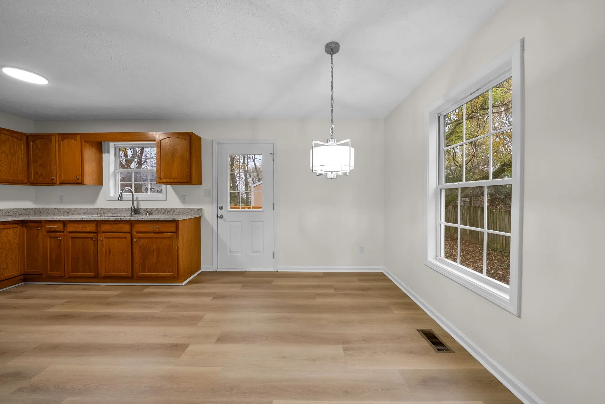 Professional photos coming on Monday 11/10! Completely renovated single level home ready for new owners. Brand new kitchen appliances and stackable washer and dryer to convey with the home! Stand up shower in primary bathroom and new flooring answers all of your needs. The property features mature trees and a chain link fence with a brand new deck. The detached garage is 19×23 and has power and plenty of space for any of your needs. Tucked away at the back of a road, is better than a cul de sac! Come take a look before it is gone.