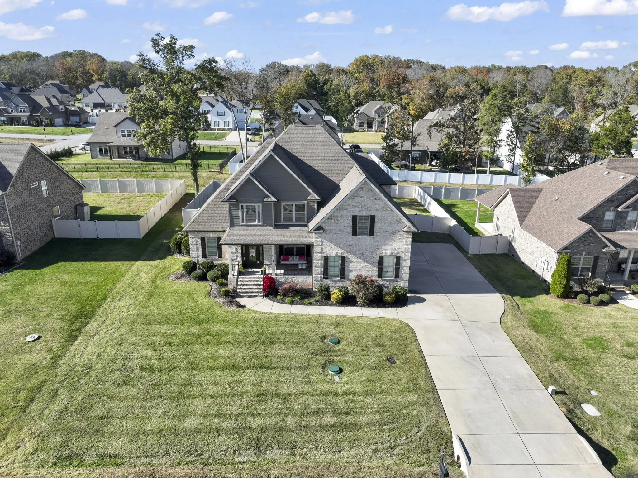 Welcome to this beautifully designed 3,380 sq. ft. home featuring elegant finished wood floors throughout and thoughtful upgrades in every room. The spacious owner’s suite offers a luxurious retreat with a custom walk-in closet, electric window coverings, and a spa-inspired bathroom complete with a custom tile shower. Perfect for guests or multi-generational living, a private guest/in-law suite includes its own full bathroom for added comfort and privacy on the main level. The gourmet kitchen is a chef’s dream, showcasing granite countertops, a farmhouse sink, and modern appliances, including a refrigerator with a 5-year warranty plus a washer and dryer. Enjoy cozy evenings by the gas-burning fireplace and appreciate the custom lighting that enhances the home’s warm and inviting atmosphere. Every bathroom features premium tile showers and stylish finishes, reflecting quality craftsmanship throughout. This home seamlessly combines comfort, style, and functionality–ready for you to move in and make it your own. (See home video link under document section!!)