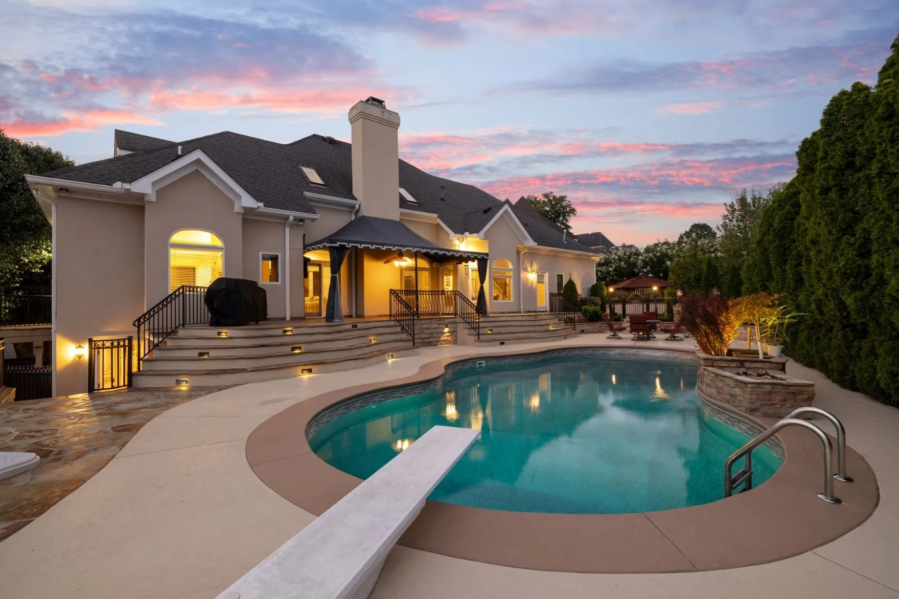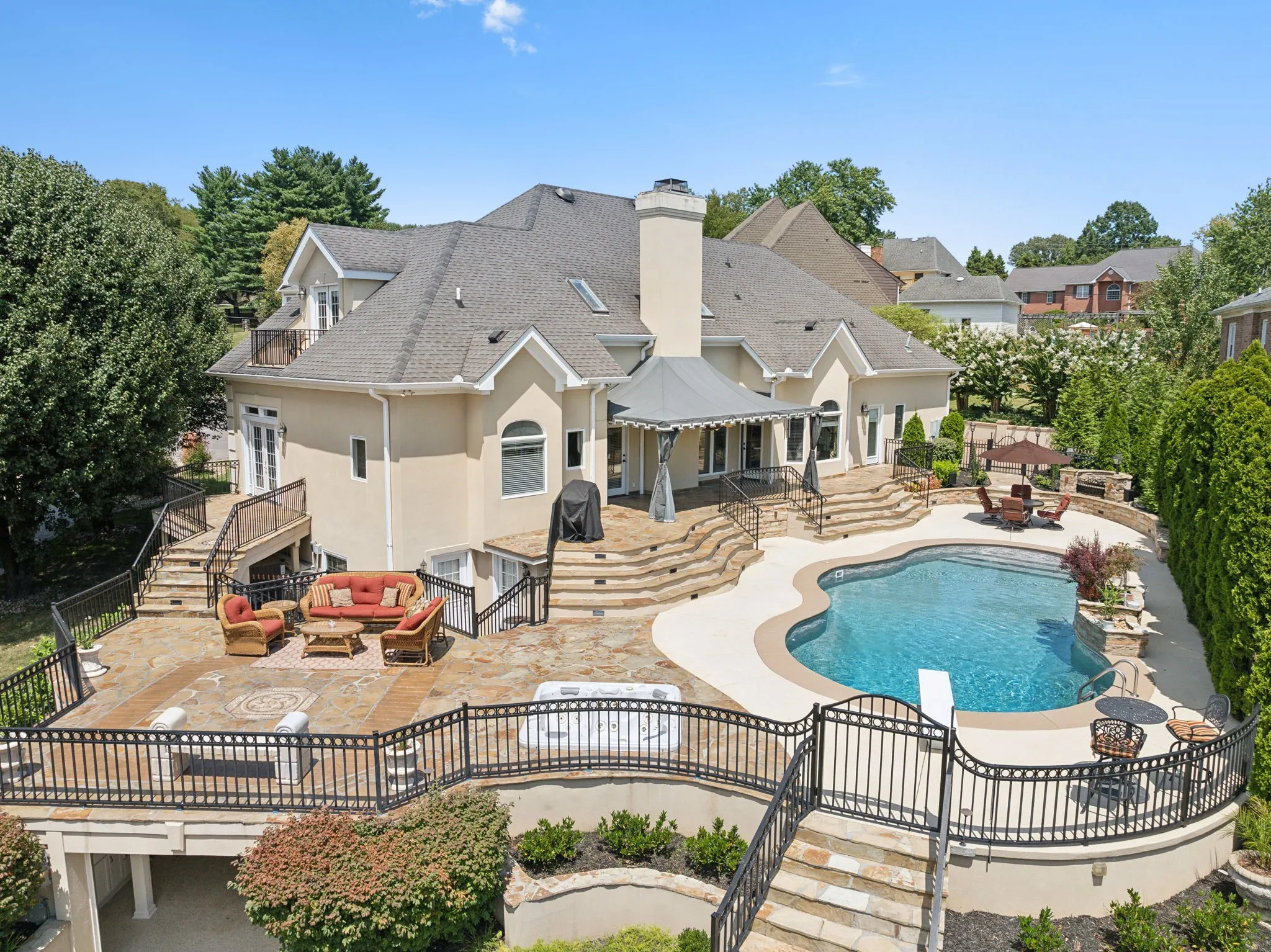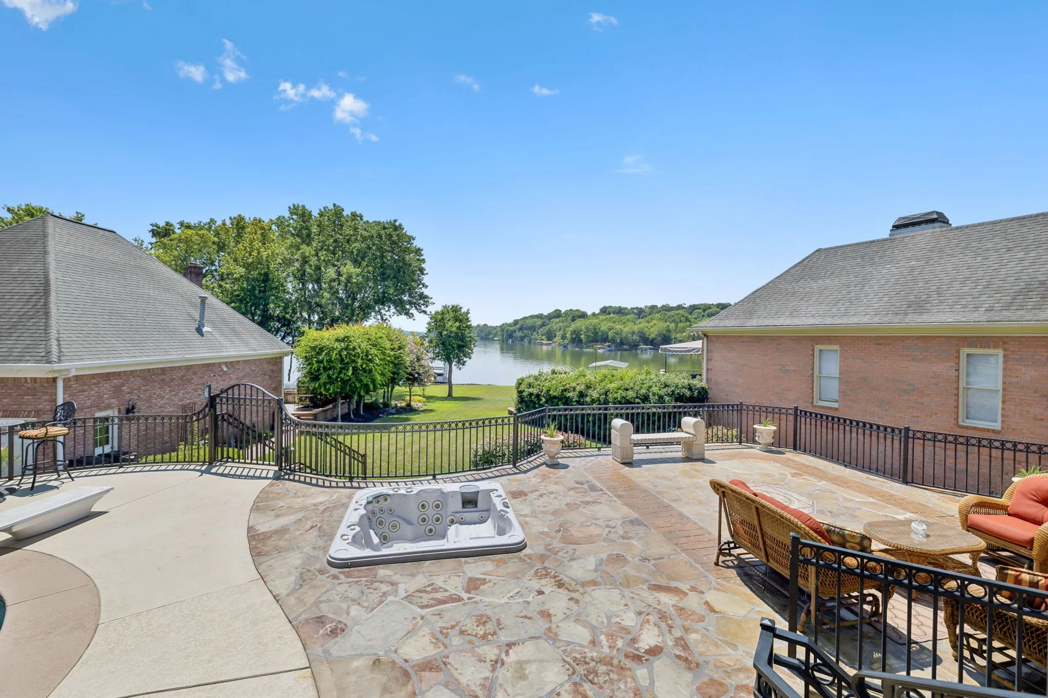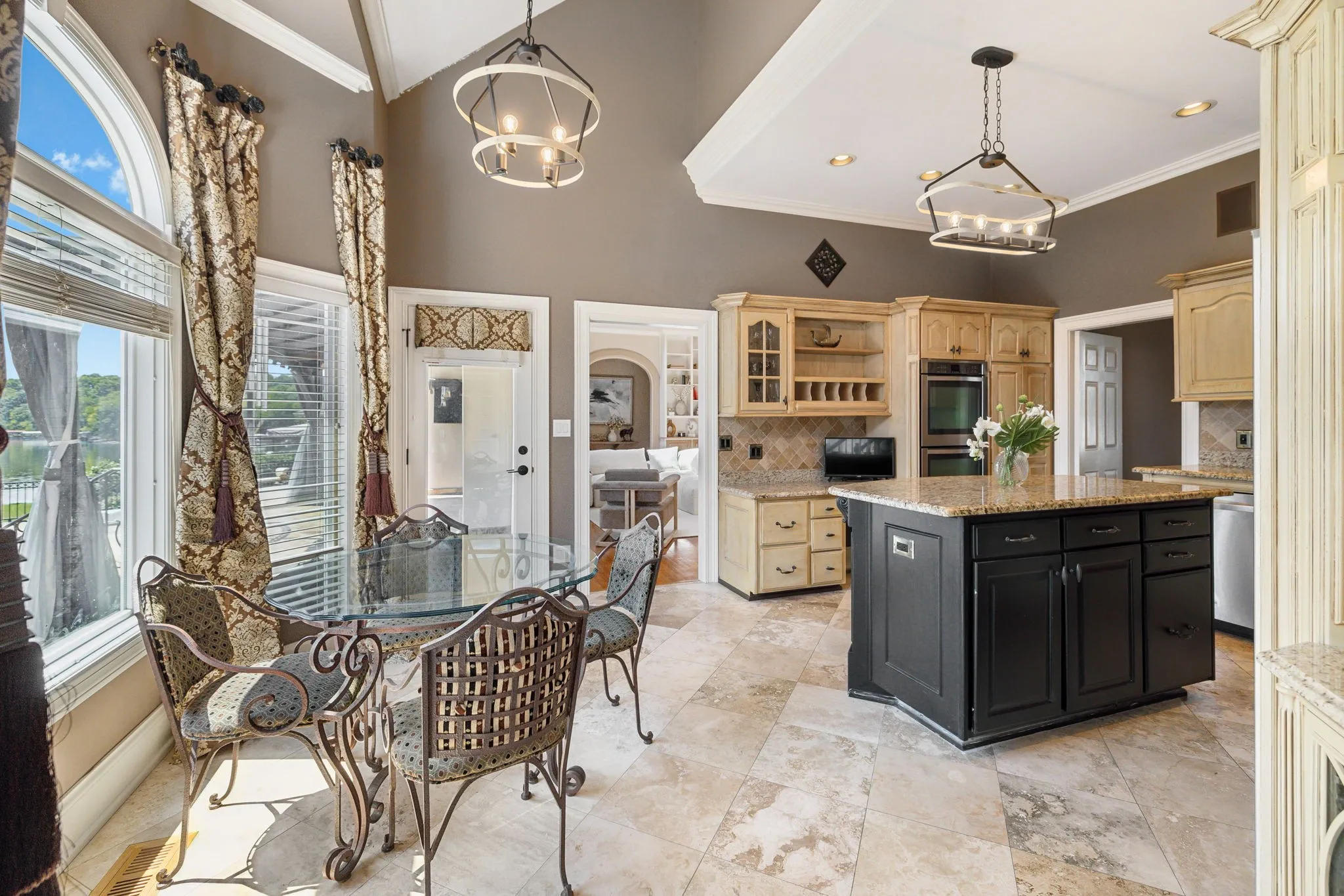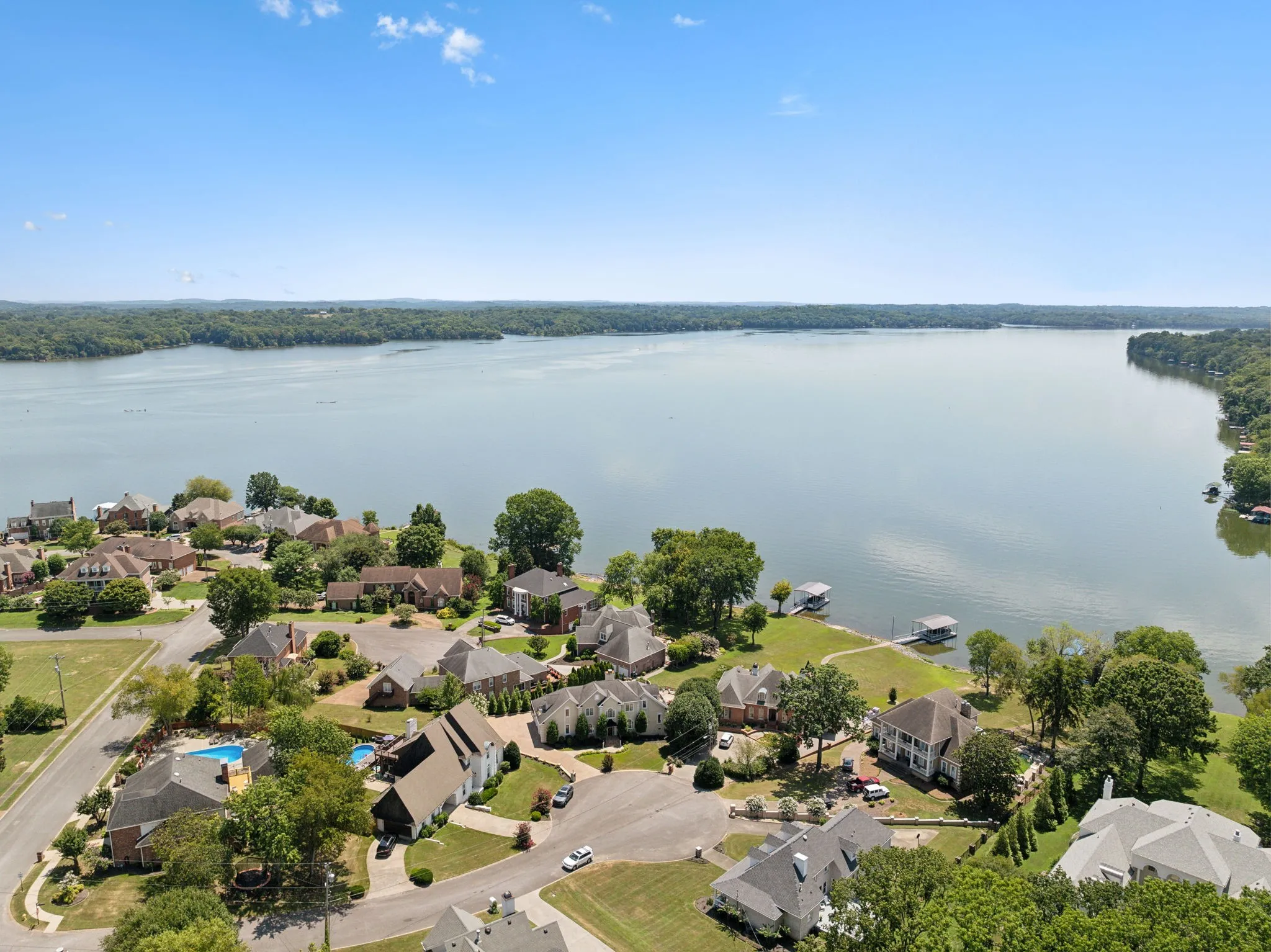 Experience lakefront luxury at 105 Governors Cv S—where timeless craftsmanship meets resort-style living on Old Hickory Lake. Situated on a quiet cul-de-sac in the exclusive Governors Point neighborhood on the Indian Lake Peninsula, this stately home offers over 5000 sq ft of living space, water views, dedicated shoreline, elegant finishes & exceptional indoor-outdoor living. The versatile floor plan includes formal & casual dining areas and several living spaces, including a piano room. The main living room impresses with soaring 20’+ ceilings, fireplace, skylights and leads seamlessly to the outdoor living space w/ stunning lake views. The spacious primary suite is a private retreat with a private terrace overlooking the water. Five generously sized bedrooms offer flexibility for family & guests. Plus a full in-law suite w/ separate entrance, full kitchen & living area – perfect for multigenerational living or long-term guests. Outdoor living is unmatched: stone patio with cool decking surrounds the in-ground pool with water feature & outdoor fireplace, creating a true private oasis. The private boat/ jetski garage features its own dedicated ramp and lake drop-in—an exceptional convenience rarely found in residential lakefront properties. Additional highlights include an attached garage w/ half bath & utility sink, ideal for a workshop or easy lake-day clean-up. Luxury, privacy, and stunning lakefront views—this is a rare opportunity to own one of Hendersonville’s premier properties. 1% lender credit with use of preferred lender.