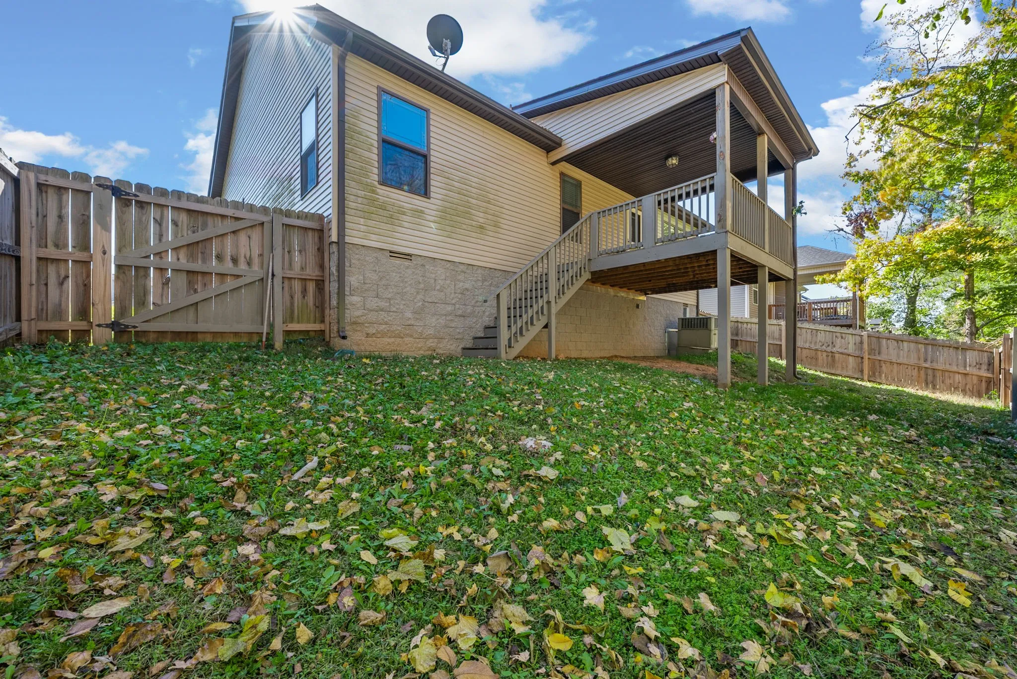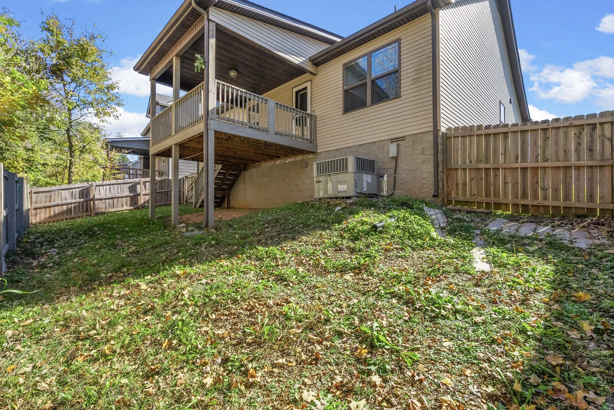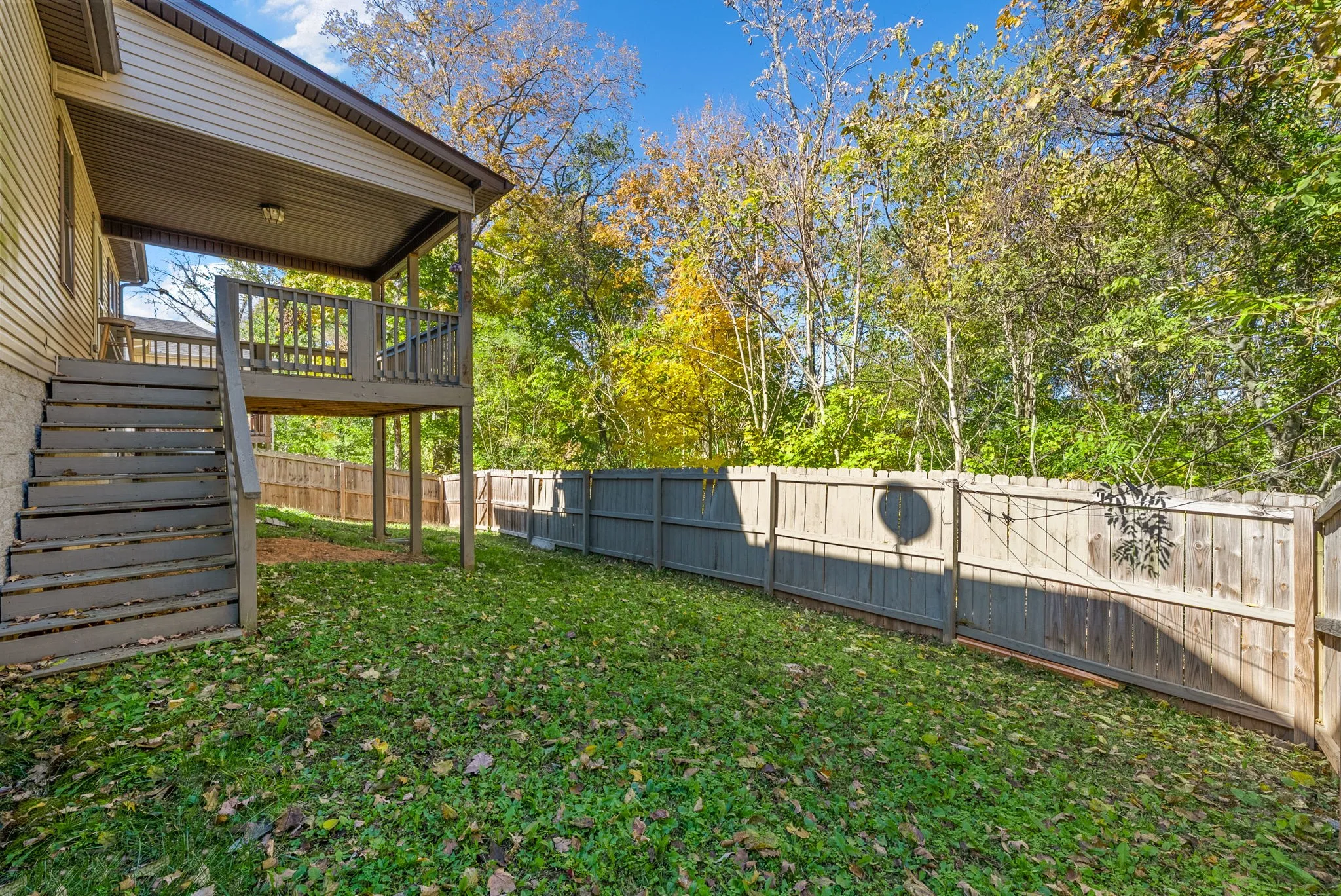 Step out back to enjoy a covered deck with stairs leading to a fully fenced backyard that is ideal for outdoor relaxation or gatherings with friends and family.