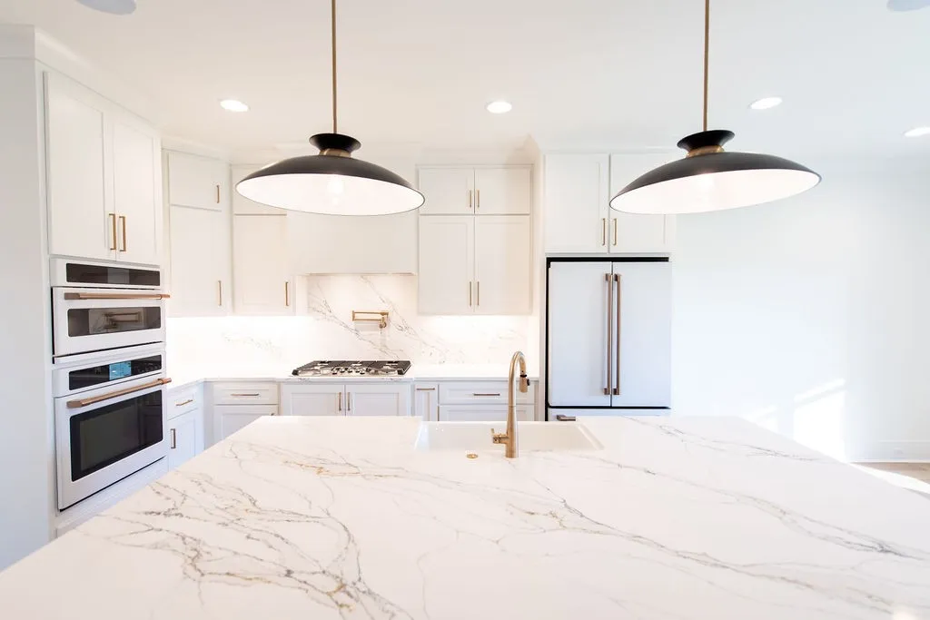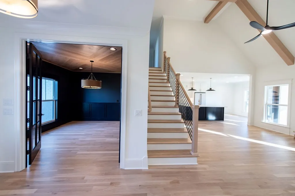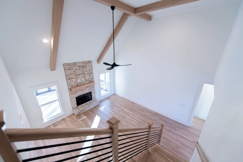 This stunning home offers 4 bedrooms and 3 baths, thoughtfully designed with the primary suite and Bedroom #2 on the main level, and Bedrooms #3 and #4 upstairs. The kitchen showcases quartz countertops and backsplash, complemented by matte white GE Café appliances—including the refrigerator. Secondary baths feature quartz countertops, while the great room highlights a floor-to-ceiling stone fireplace and a beautiful trim package throughout. Elegant black and champagne bronze finishes add a touch of modern sophistication. Additional features include a spacious 22×31 bonus room over the 3-car garage, epoxy-coated garage floors, and sod in the front and side yards. Enjoy outdoor living on the covered, screened-in porch—perfect for relaxing or entertaining.