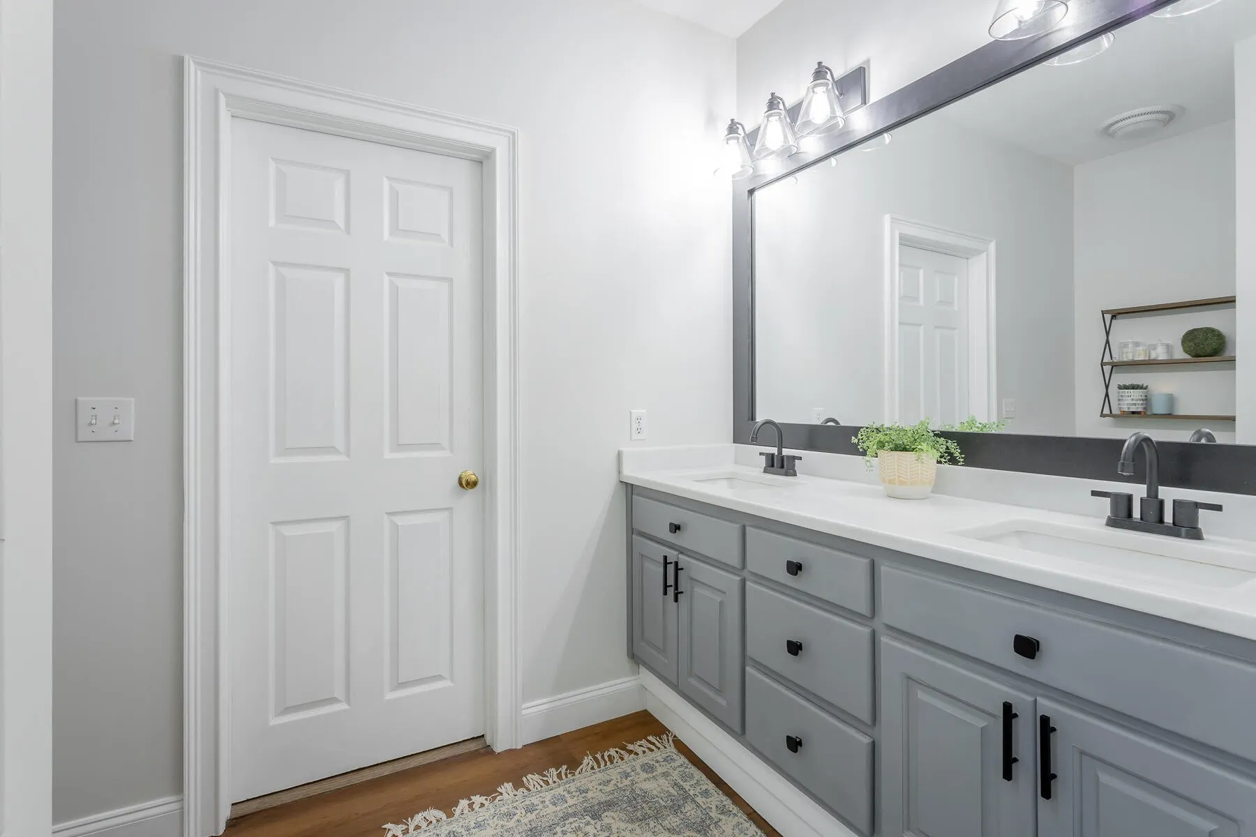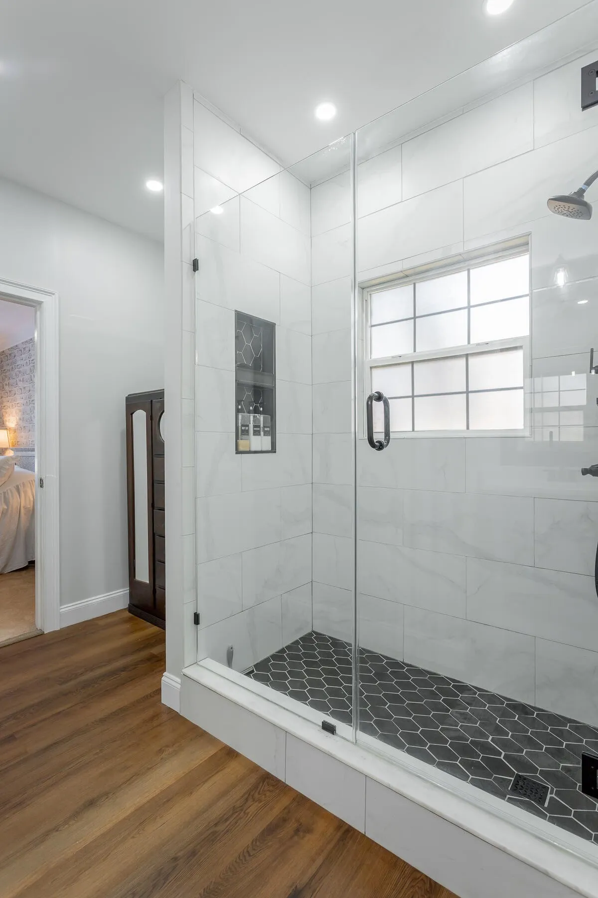The main level primary suite features an updated en-suite bathroom with dual vanities, a walk-in shower and spacious closet with an optional dressing area to the left of the shower. Upstairs, two additional bedrooms provide ample space with walk-in closets and an adjacent full bathroom, while a flexible fourth room can easily serve as a guest bedroom, home office, playroom, or media space. A second bonus space currently being used as a home office provides additional flexibility.