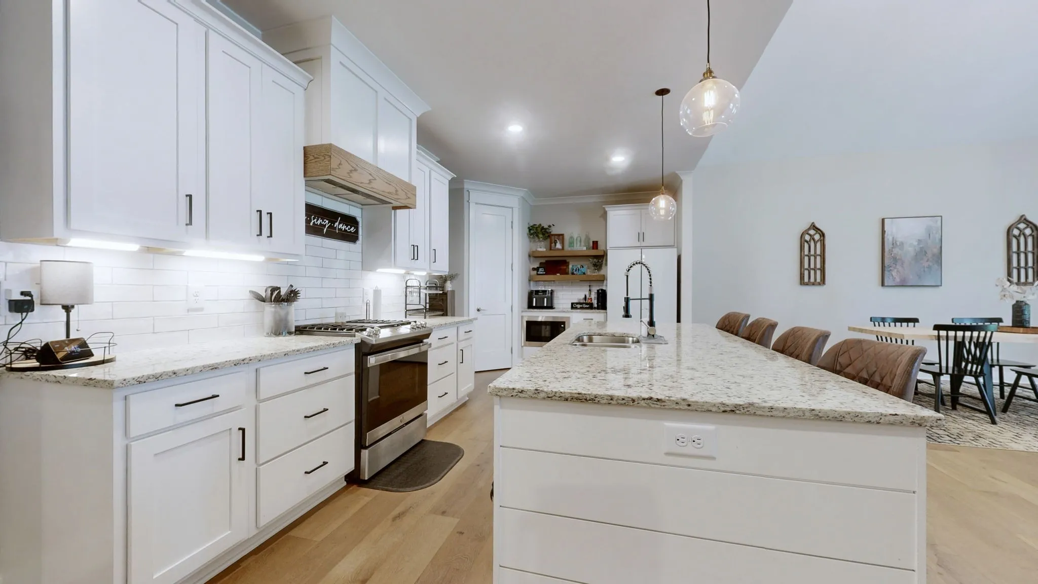 Stunning 4-bedroom, 3-bath home located in the desirable Enoch Hills community. Built in 2022, this beautifully maintained home offers 2,910 sq ft of modern living space on a spacious 0.43-acre lot. The open-concept layout features a large great room with vaulted ceilings, seamlessly flowing into the dining area and gourmet kitchen. The kitchen is equipped with stainless steel appliances, a gas oven, granite countertops, tile backsplash, walk-in pantry, and a generous island perfect for entertaining. The main level includes three bedrooms and two full baths, ideal for guests or multi-generational living. Upstairs features a second primary suite and versatile bonus room. Interior highlights include hardwood flooring, upgraded tile, beautiful crown molding and contemporary finishes throughout. Enjoy outdoor living with a covered front porch, covered back patio and a large, fenced backyard. Conveniently located near local schools, shopping, and parks, this home combines comfort, functionality, and style in one exceptional package.