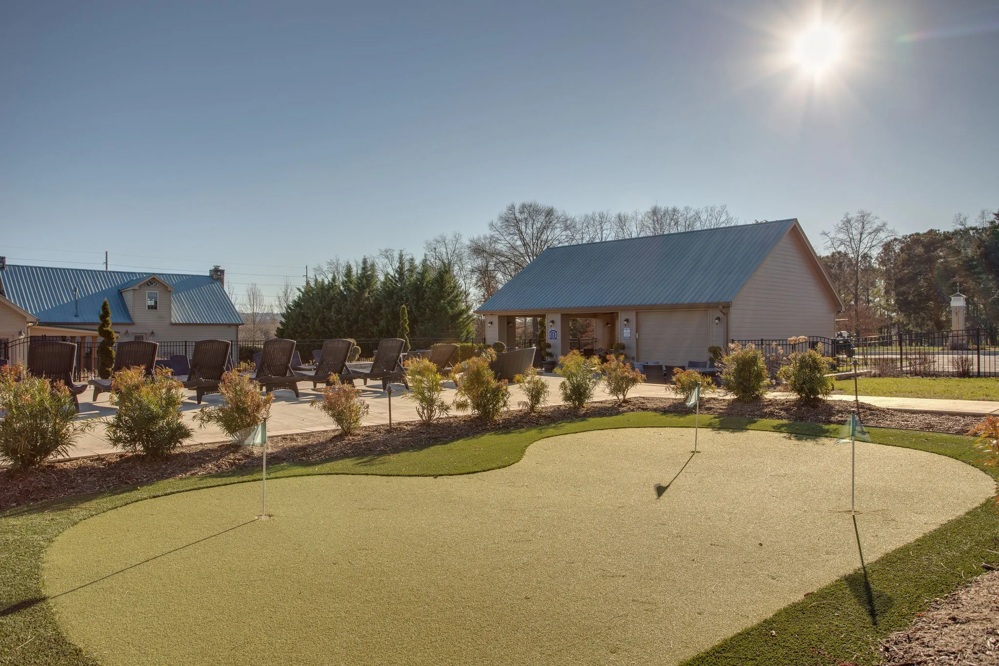 -Poolside putting green, walking trails, pavilion, and event venue
