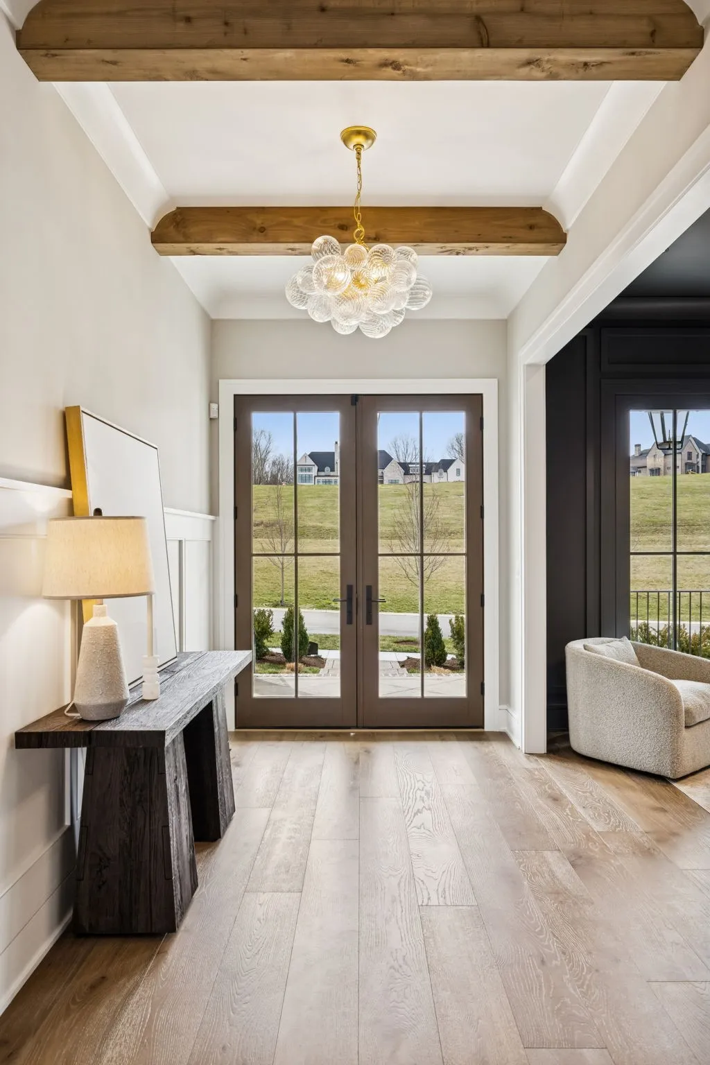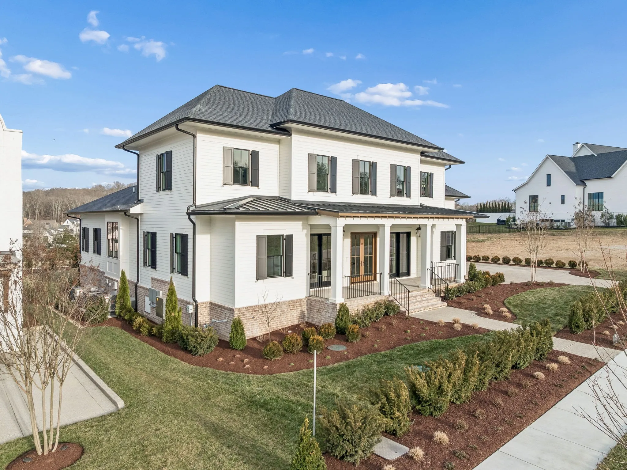 Welcome to the very latest offering at The Grove. Come see this exceptional modern farmhouse by Davis Properties situated on nearly half an acre. Premium interior finishes and exceptional craftsmanship meet you at every turn, from the front entry to the Great Room! Directly off the main entryway, a full wet bar allows for casual entertaining with friends. The spacious chef’s kitchen is designed for gathering around the quartz countertops, and a large butler’s pantry has all the storage and prep area you need for the family. Windows line the kitchen and dining room- opening up the room with an abundance of natural light. The main level Primary Suite features a spacious walk-in closet with hardwood floors and built-in dressers, plus a large garden tub and a marble tile shower make sure you are pampered each day. The main level includes a Guest Bedroom Suite! Three additional full bedroom suites and two expansive bonus rooms upstairs-ideal for gaming, a home gym, or a lounge! The lot features a large, flat backyard, complemented by a covered porch with a built-in BBQ area and cozy fireplace. Make plans to see this custom home before it’s sold!
