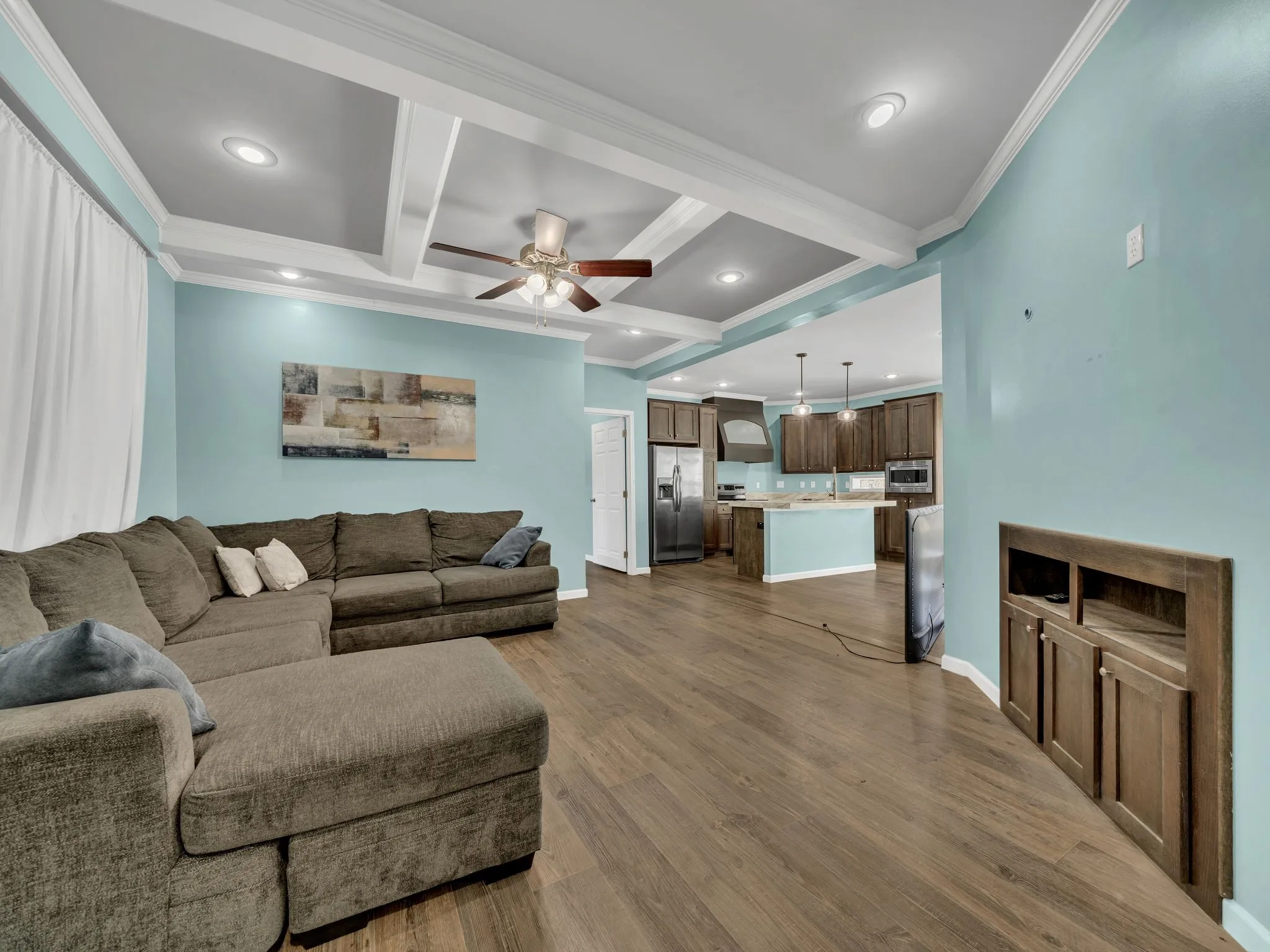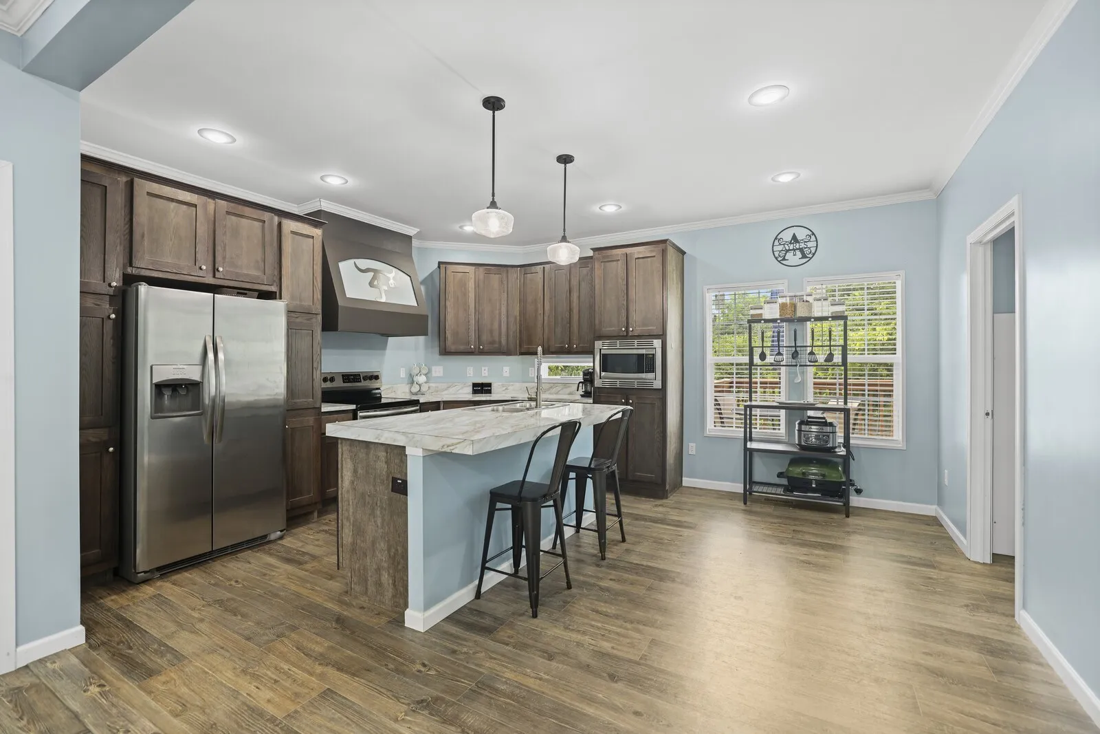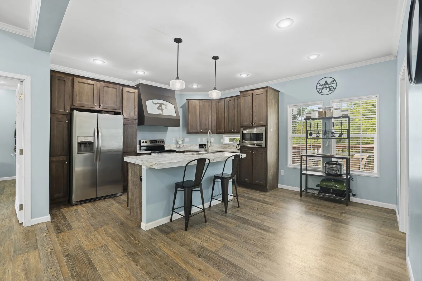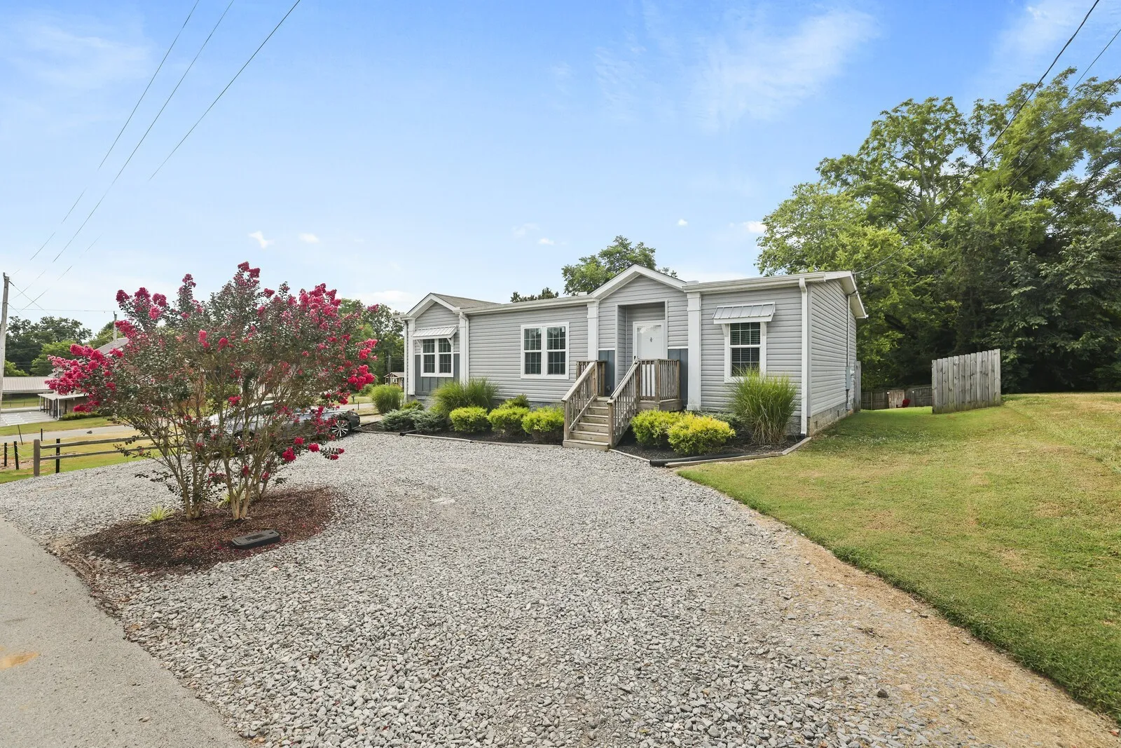 Move-in ready manufactured home on a permanent foundation in Adams, walkable to town! This home features an open floor plan with high-end finishes, custom cabinets, stainless steel appliances, and spacious walk-in closets. Enjoy a fenced backyard, perfect for pets or entertaining, plus storage buildings for all your extras.