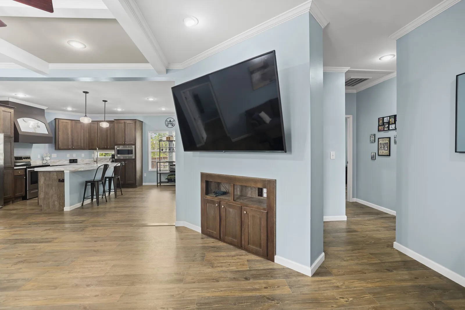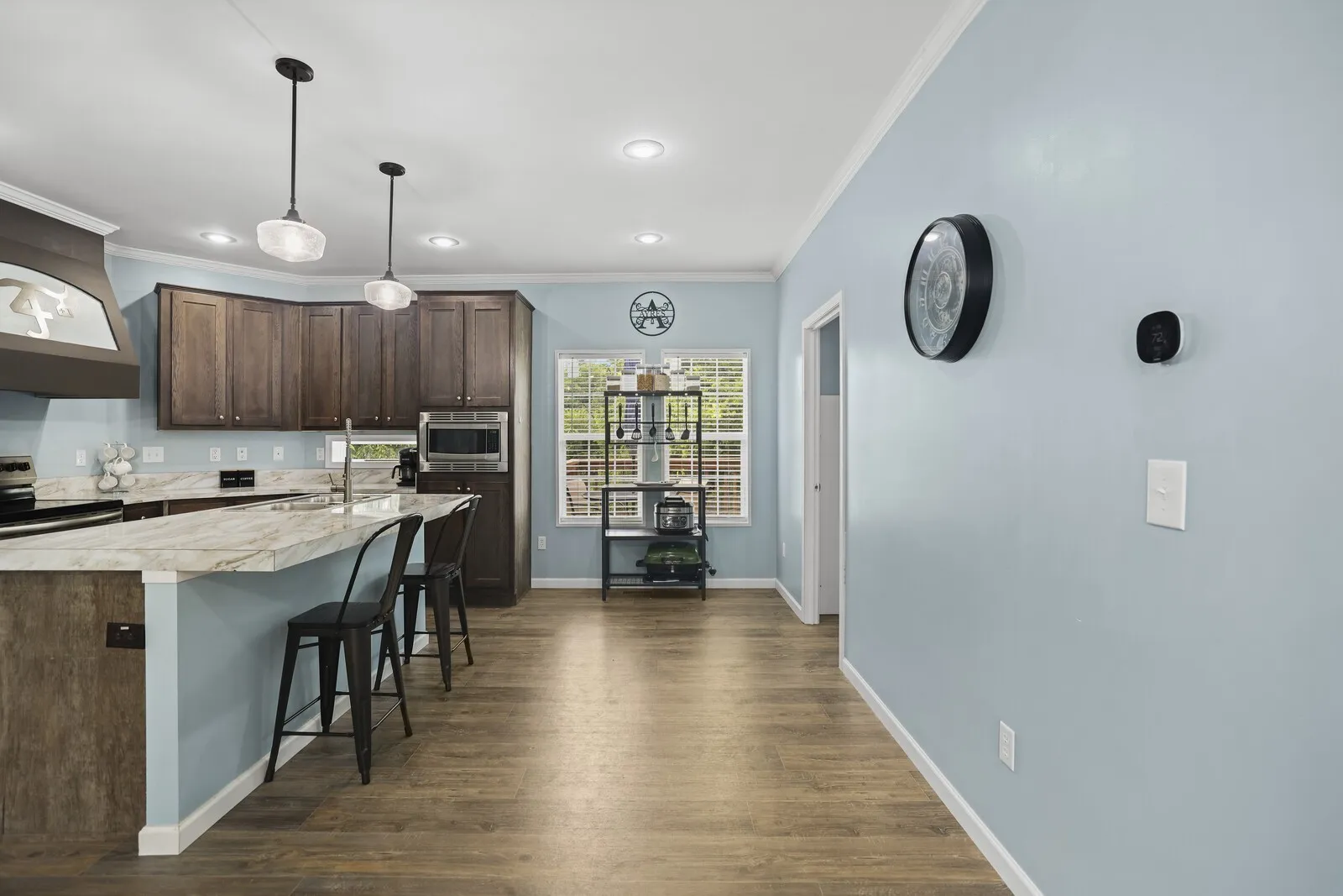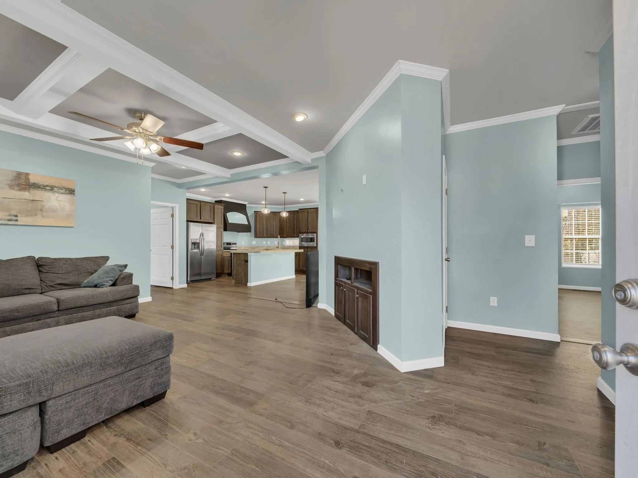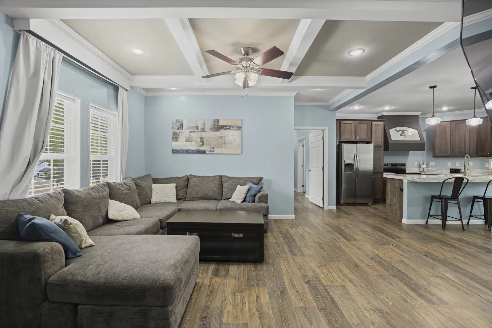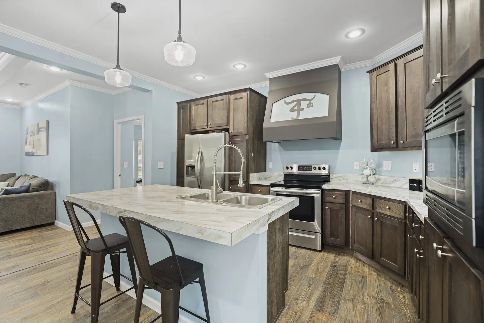 Move-in ready manufactured home on a permanent foundation in Adams, walkable to town! This home features an open floor plan with high-end finishes, custom cabinets, stainless steel appliances, and spacious walk-in closets. Enjoy a fenced backyard, perfect for pets or entertaining, plus storage buildings for all your extras.