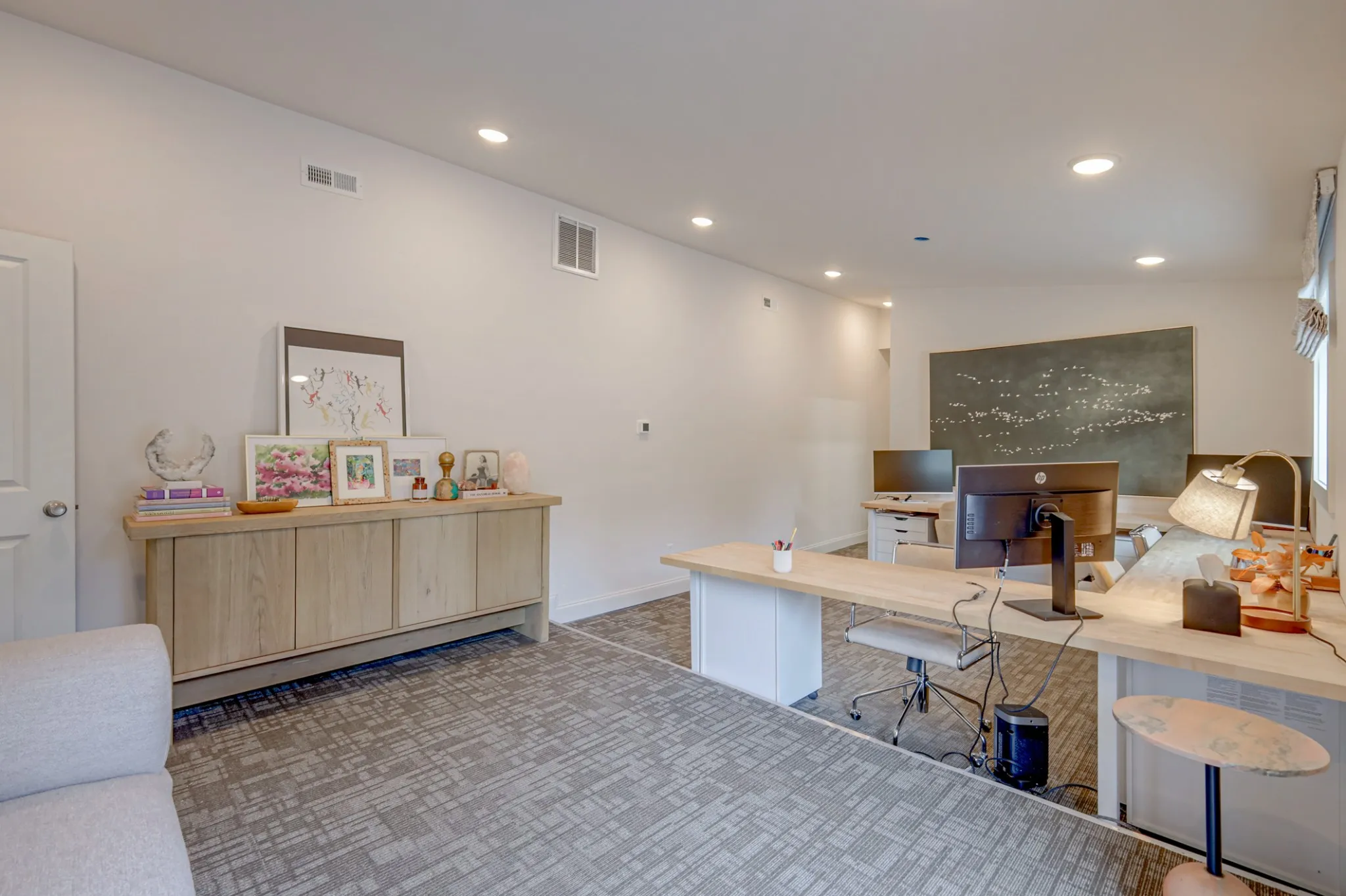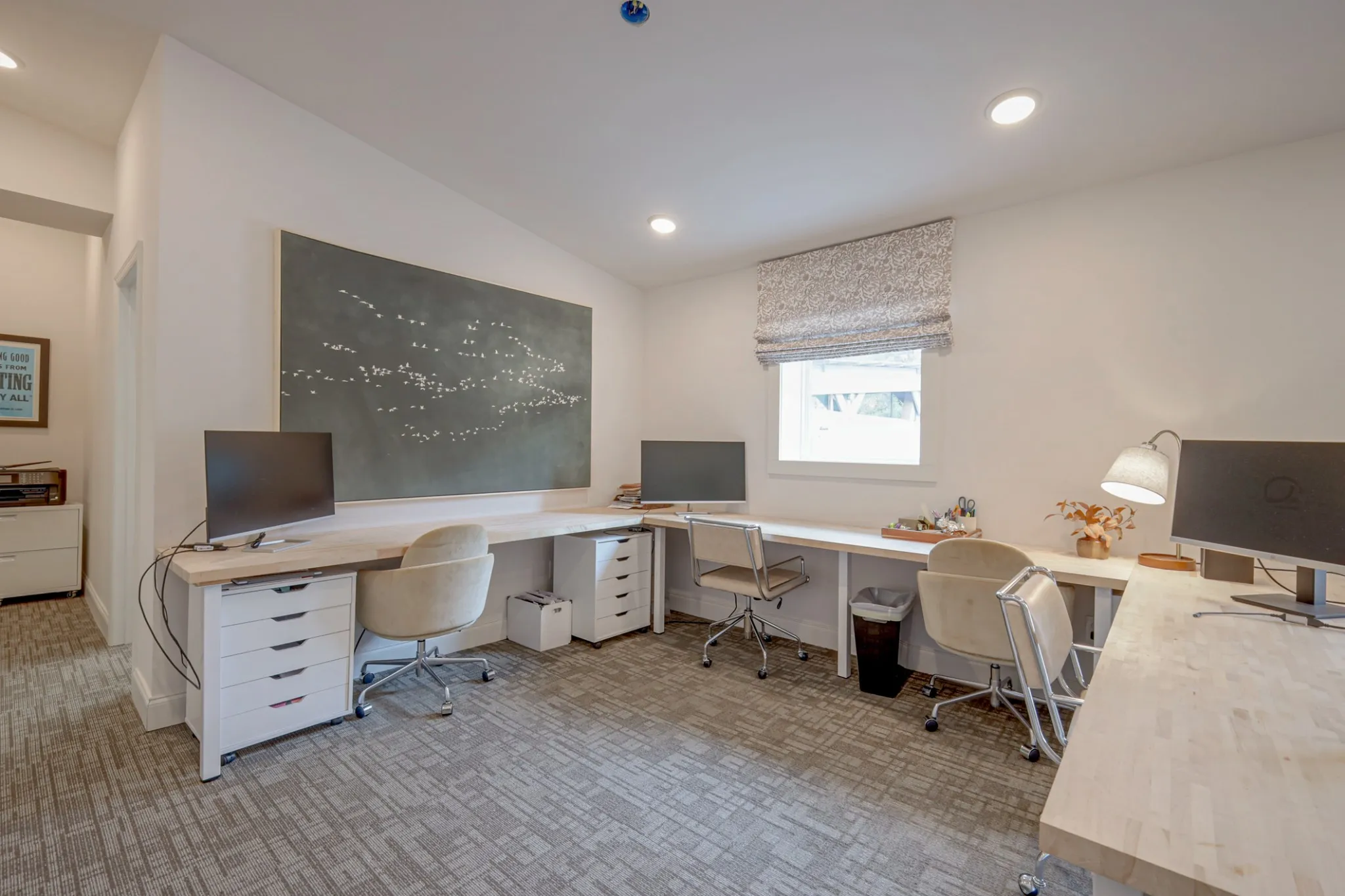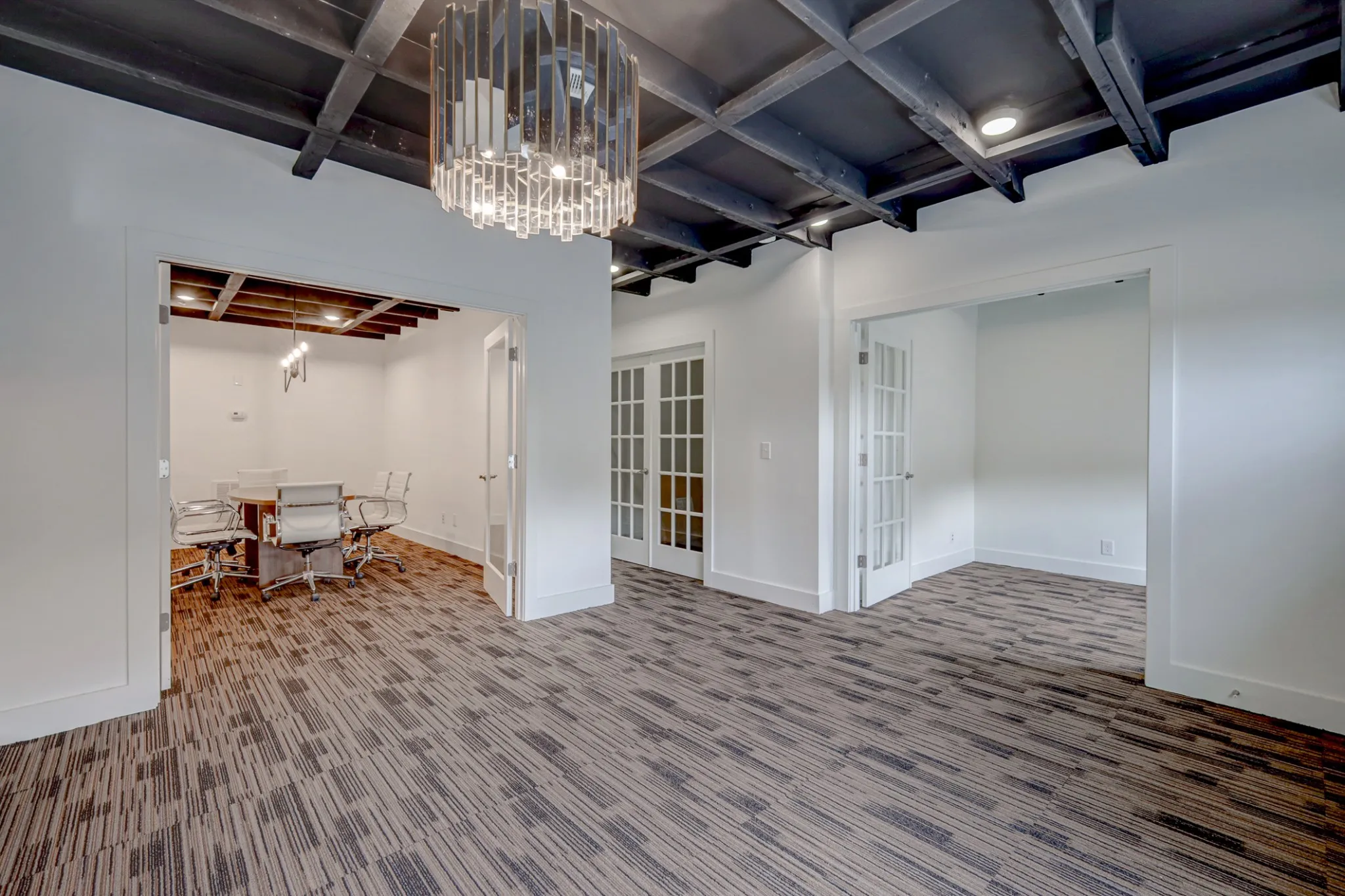 Additionally, an adjoining suite is also available for rent. This suite features a conference room, a storage area, a bathroom, and open office space for only $1,500 per month, with a total square footage of 550.