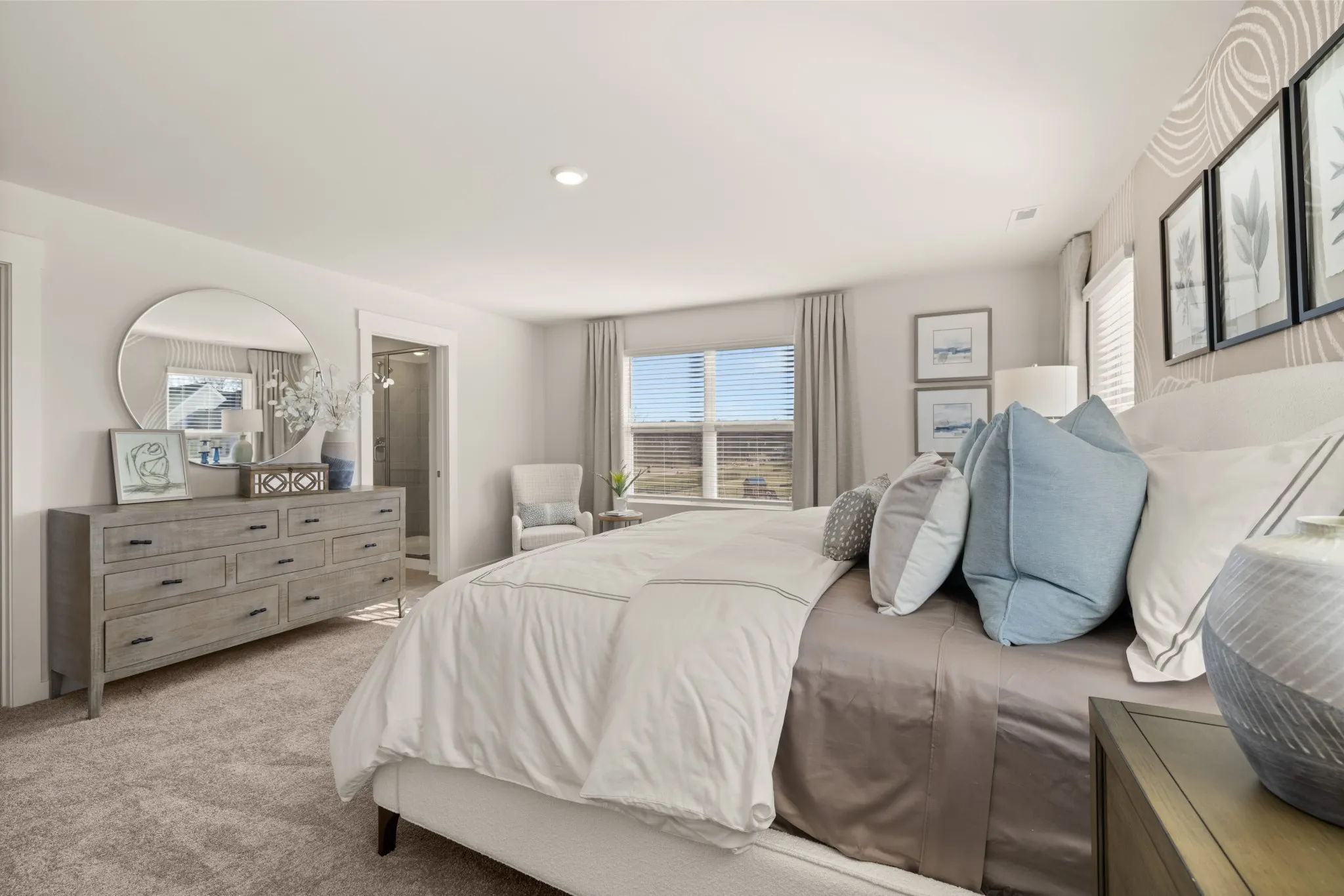 Lot #15 – Edinburgh. Past the welcoming front porch of this new two-story home, there is a practical study well-suited for those work-from-home days. At the back is a free-flowing open layout shared among a fully equipped modern kitchen, a dining room and a family room. Residing upstairs is a versatile loft surrounded by all four bedrooms, including the tranquil owner’s suite with an attached bathroom and walk-in closet.