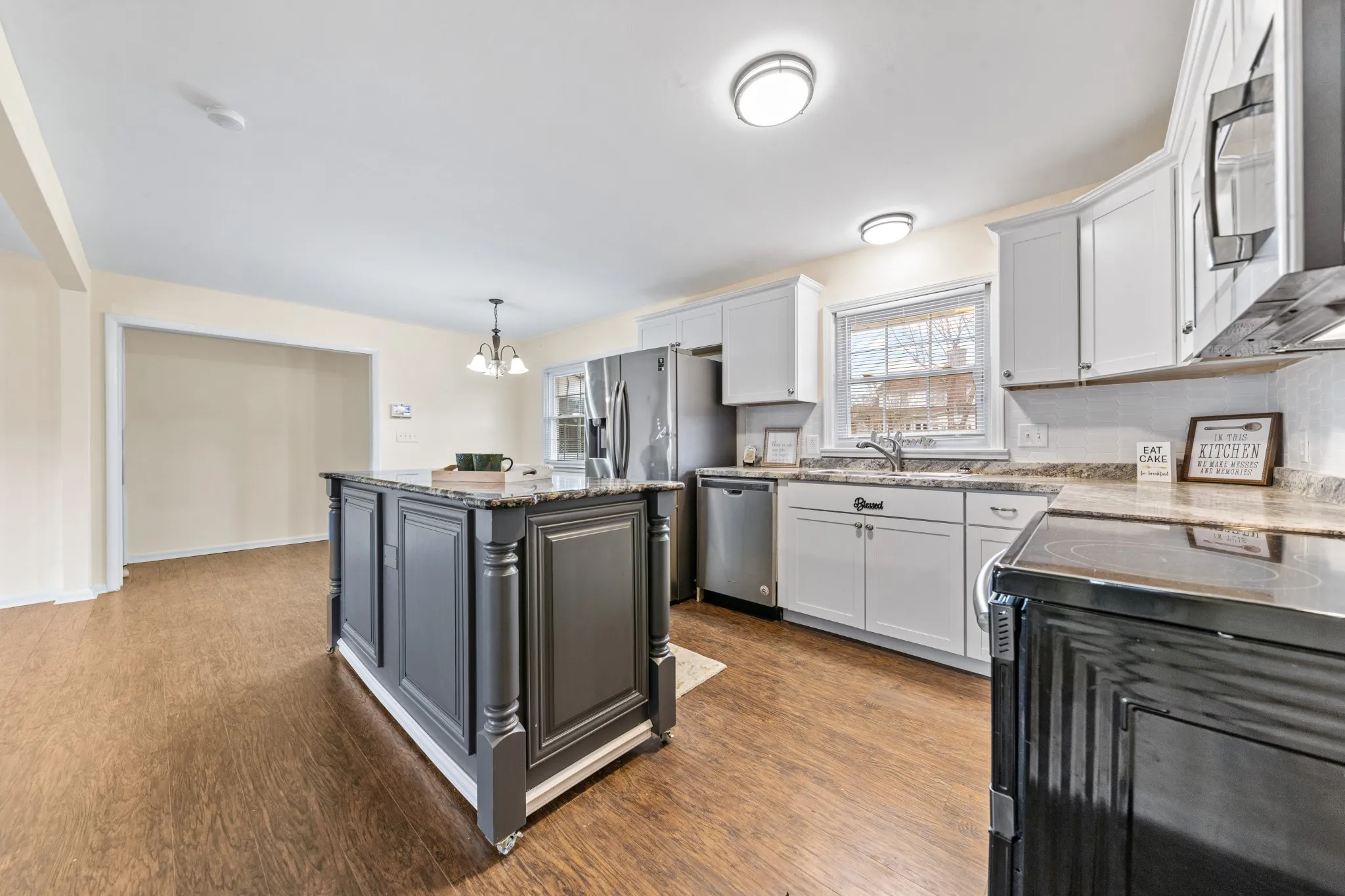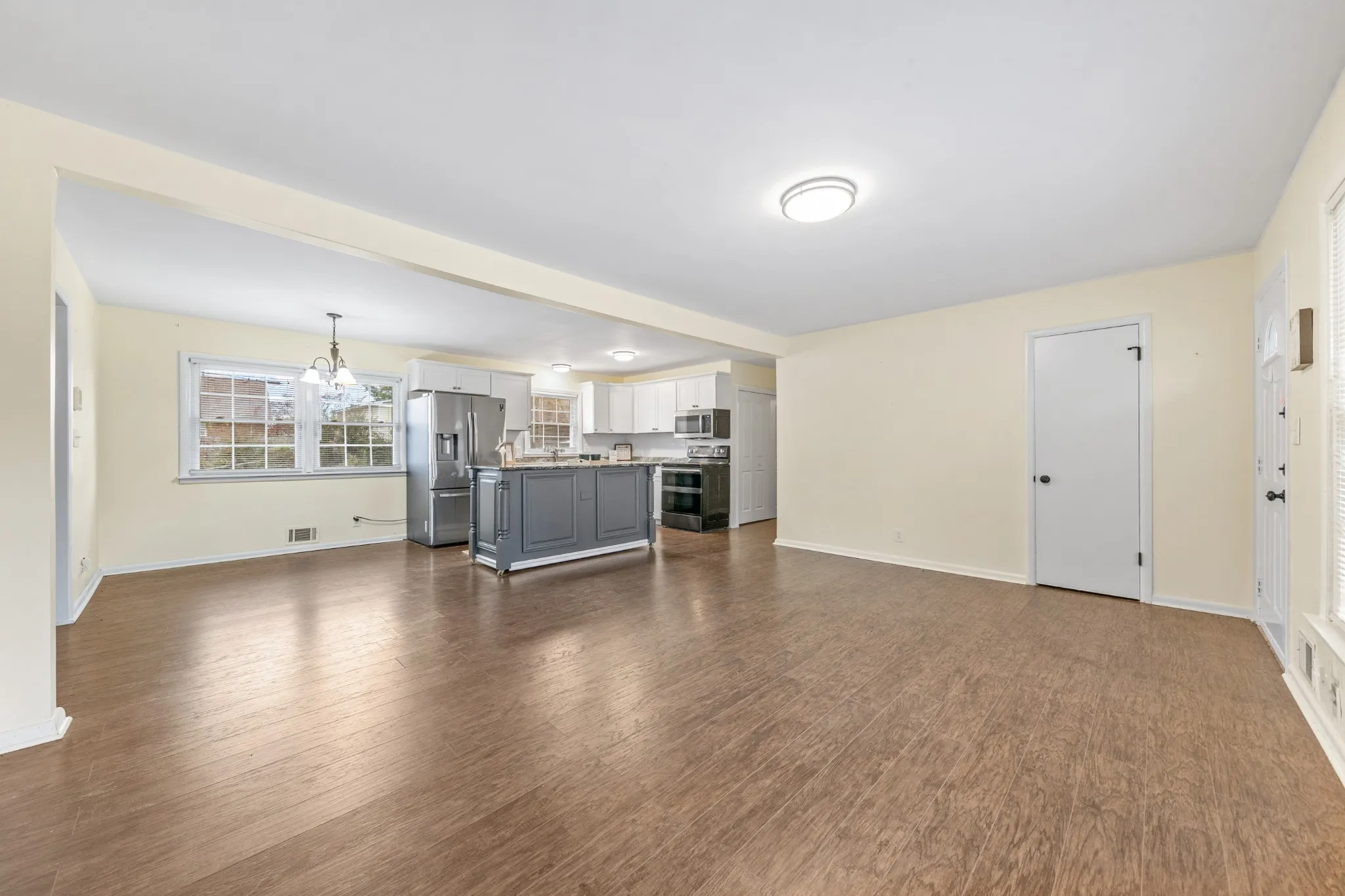 Welcome to this charming, fully updated ranch-style home in the heart of Lawrenceburg — just minutes from schools, shopping, and local amenities. This 4-bedroom, 2.5-bath home offers an ideal layout with a private primary suite featuring a spacious walk-in closet and full bath, thoughtfully separated from the additional bedrooms. The open-concept living, kitchen, and dining area is perfect for everyday living and entertaining alike. The kitchen showcases sleek stainless-steel appliances, new cabinetry, textured Formica countertops, and a moveable island topped with granite — a dream setup for any home cook.