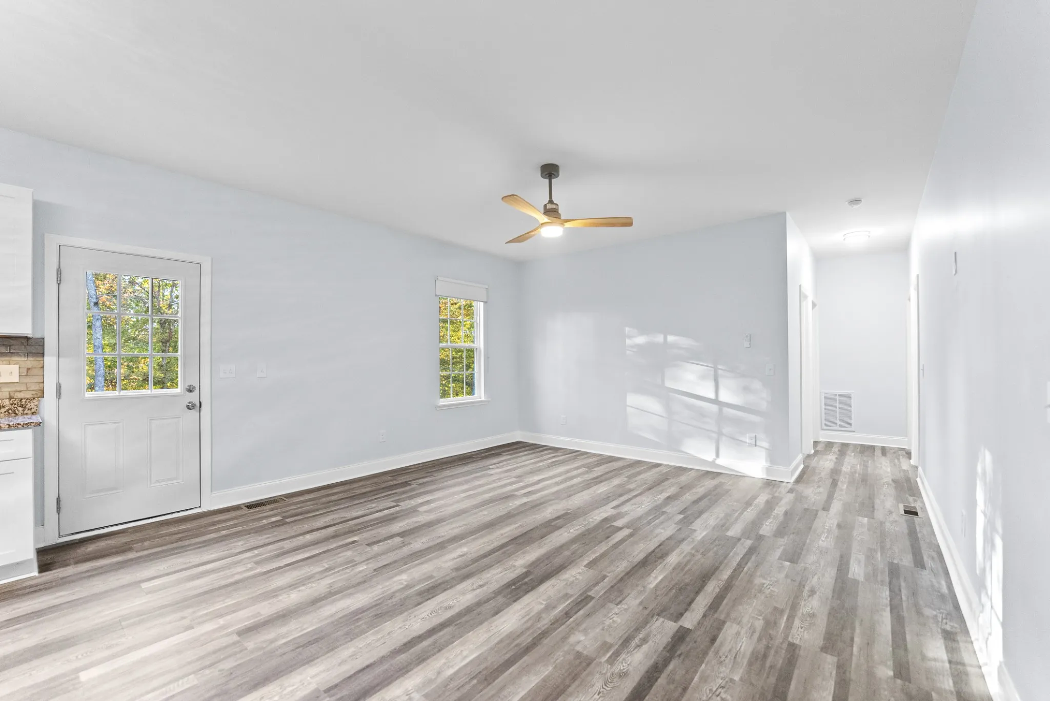 Inside, you’ll find granite countertops, tile back splash, durable waterproof flooring, and brand-new appliances. Every room includes ceiling fans with lights and window blinds, while each bathroom is beautifully finished with tile work and glass shower doors.