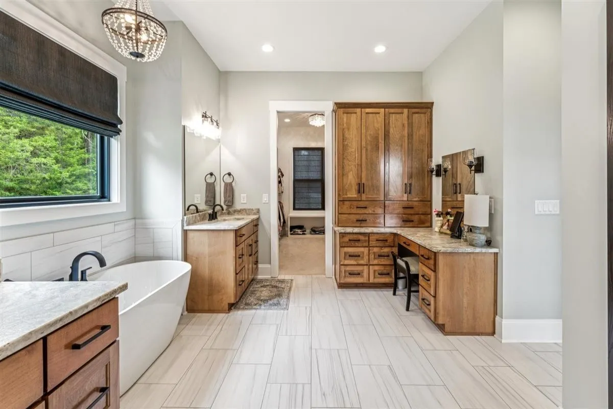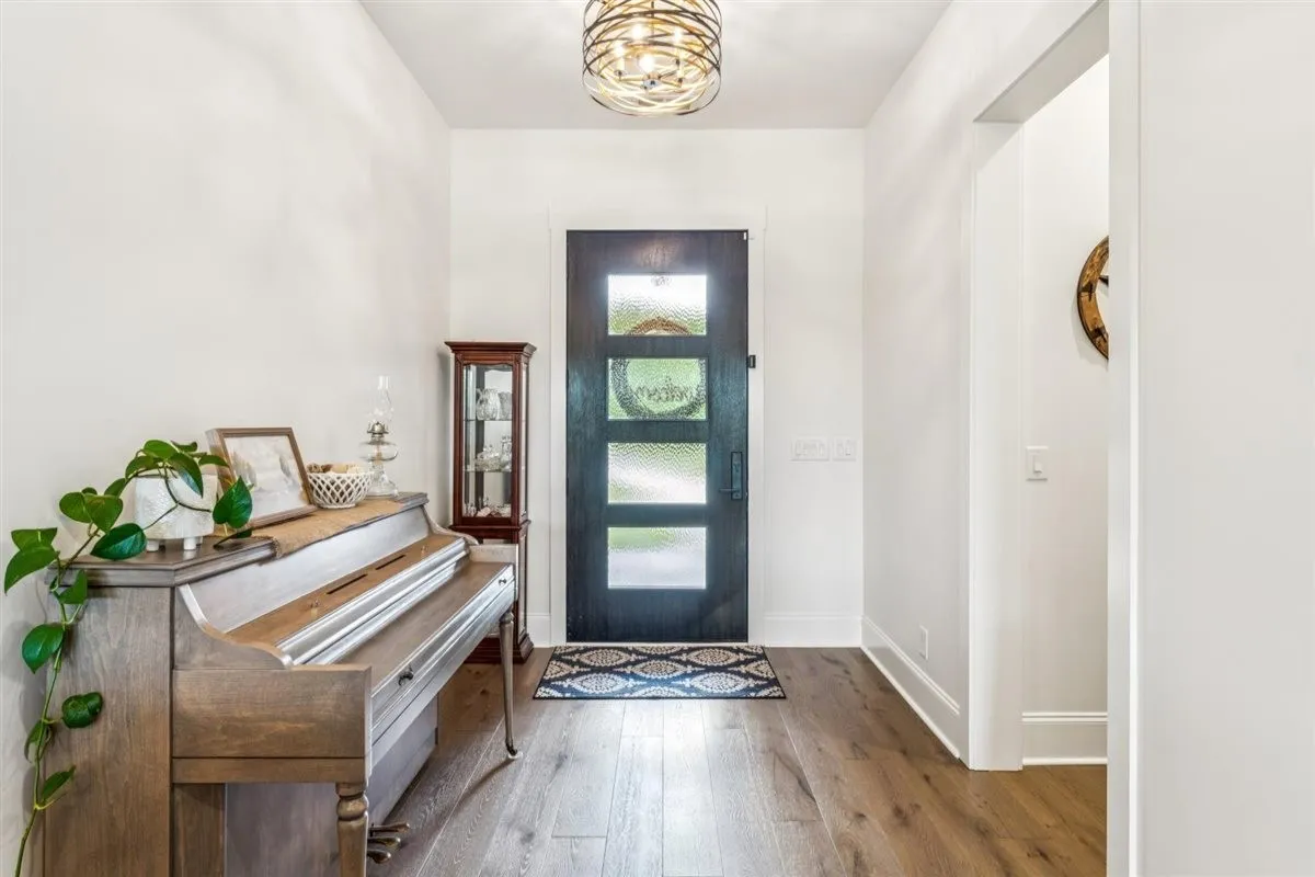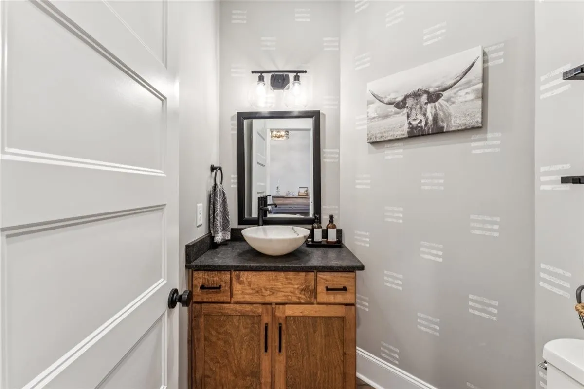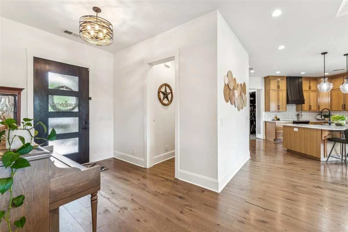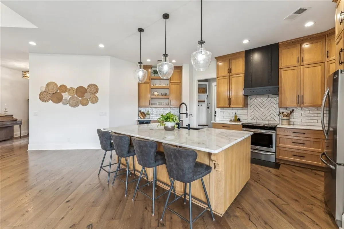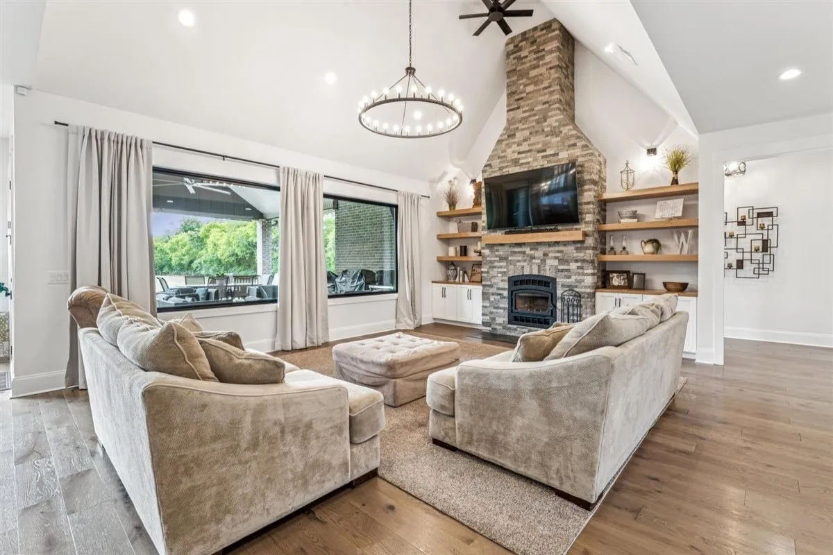 Inside, you’ll find a spacious kitchen with marble countertops, stainless steel appliances, and custom cabinetry throughout. The main living area boasts 18-foot ceilings with a wood-burning stove and double-insulated flue, while the rest of the home is accented with elegant 10-foot ceilings. Flooring includes hardwood in the main living areas, tile in the pantry, laundry, and mudroom, and granite counter tops with tile finishes in the bathrooms. Additional features include a whole-house water filtration system, water softener, built-in storm shelter, and fully encapsulated crawlspace.\n
