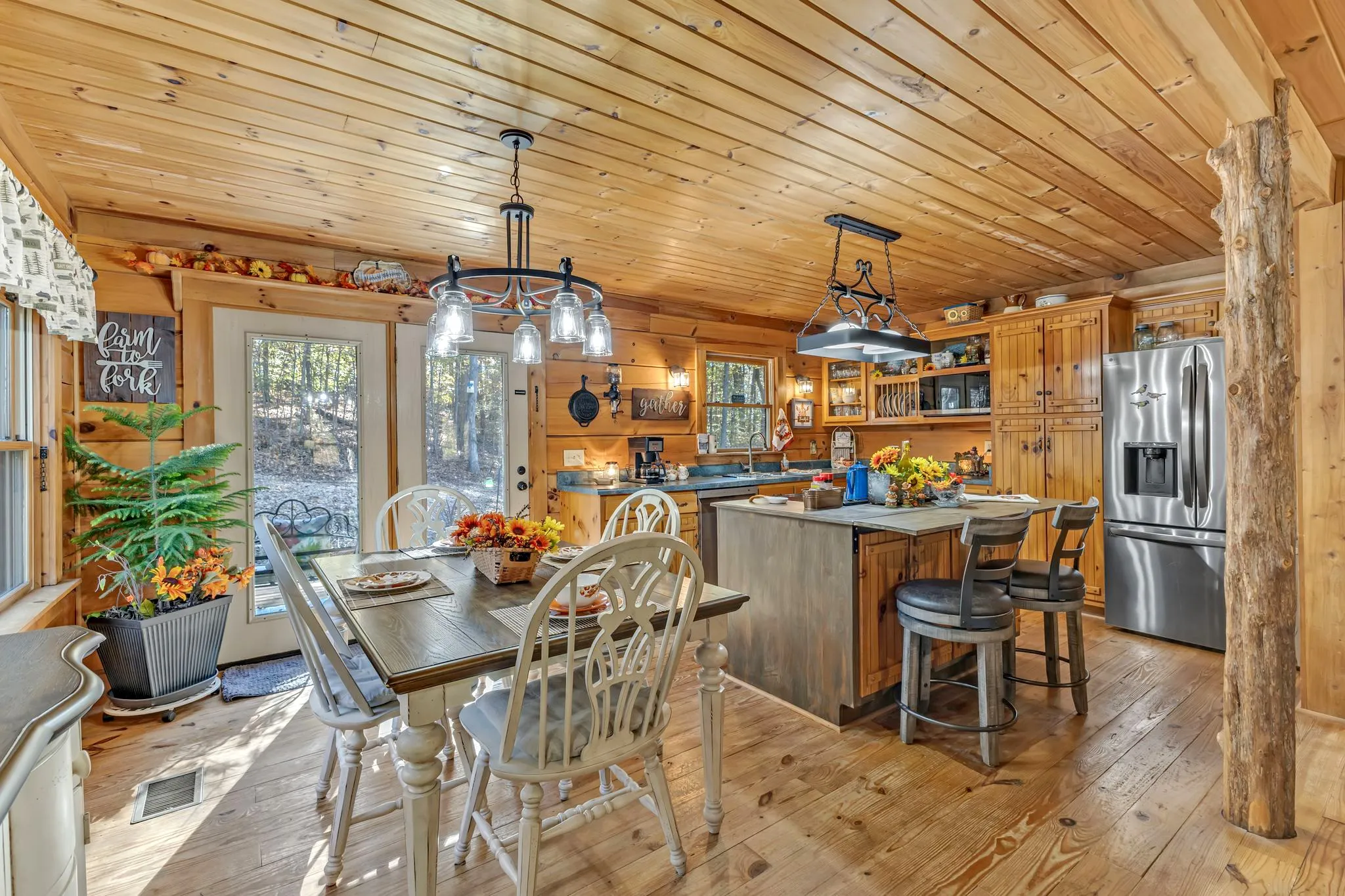 Prime opportunity to own an authentic Honest Abe Log Cabin with large exposed logs, dovetailed corners, large stone fireplace/chimney & stone covered foundation, brand new roof w/ 11 yr transferable warranty, all new appliances, hardwood floors, large front porch, all sitting in total seclusion on 5 sprawling acres with room to build behind home. Includes 14×40 storage shed less than 1 yr old, large enough to be used as a garage. Relax on your porch swing watching wildlife, listening to frogs on front pond & basking in your slice of tranquil paradise amongst nature. Full wraparound circular drive allows for kitchen back entry with only one step. French drain maintains dry heated & cooled fully finished basement with separate exterior entrance, a 3rd bedroom and a full bath. Main level includes 2 beds/1 full bath. Potential to reside or rent current home while building an additional residence on the back 5 acres. Scenic drive, homes with large lots, convenient to Portland, Gallatin, and downtown Westmoreland. Only 1 hr from Nashville airport. Don’t miss this opportunity to live in beautiful Bethpage!