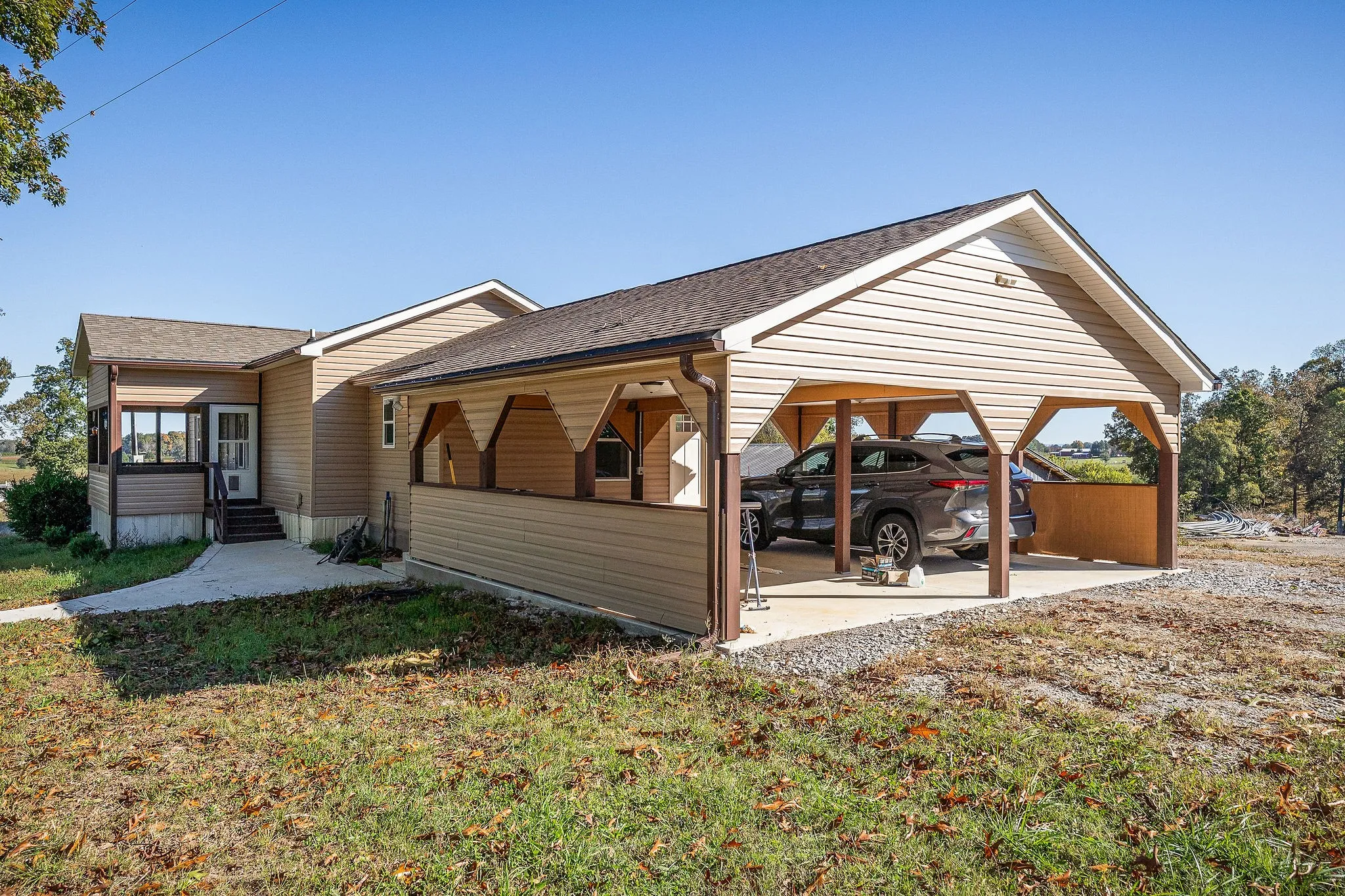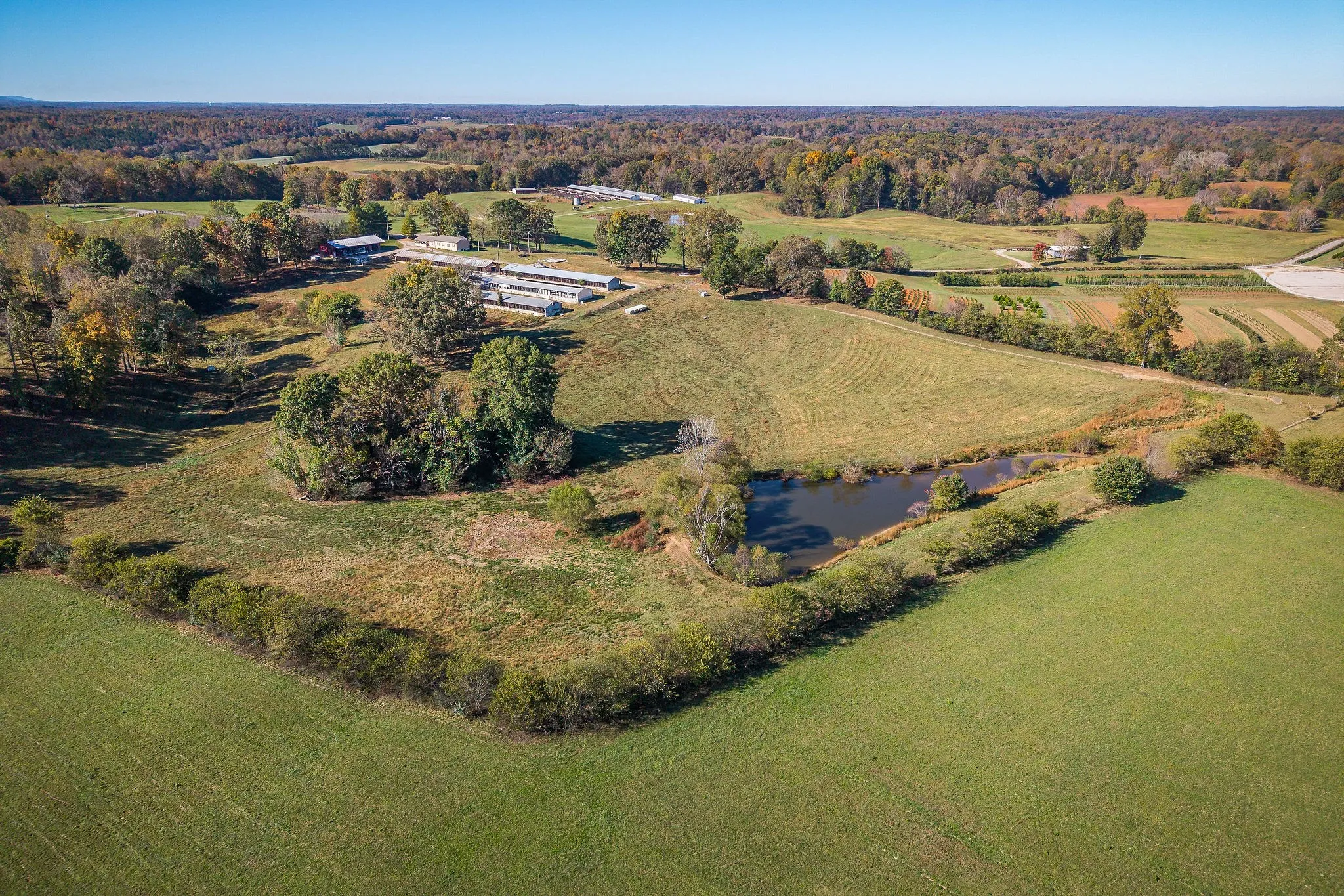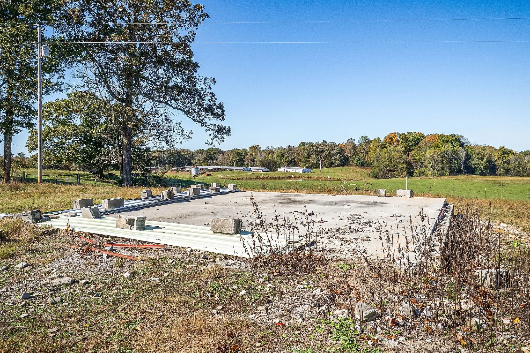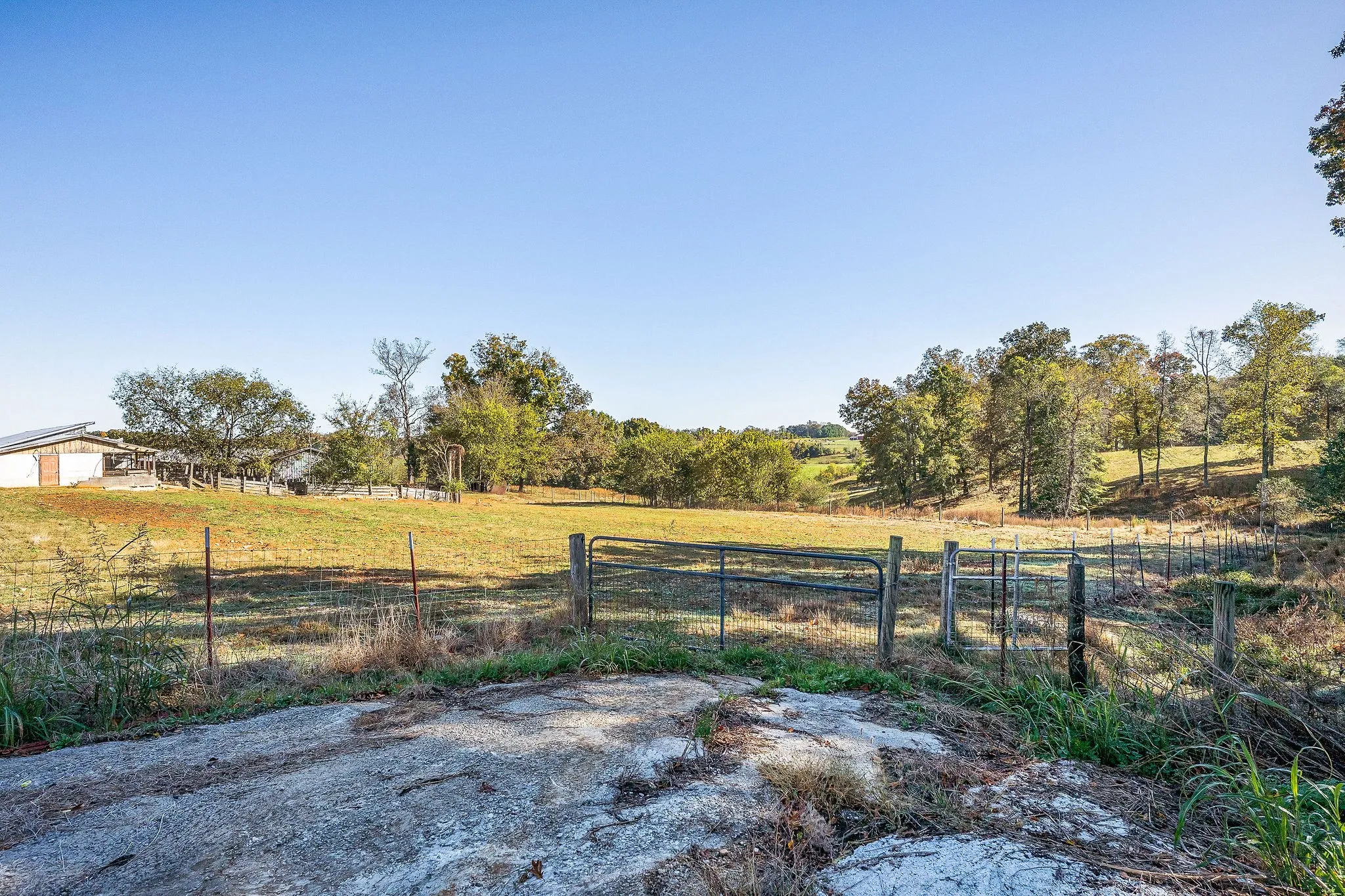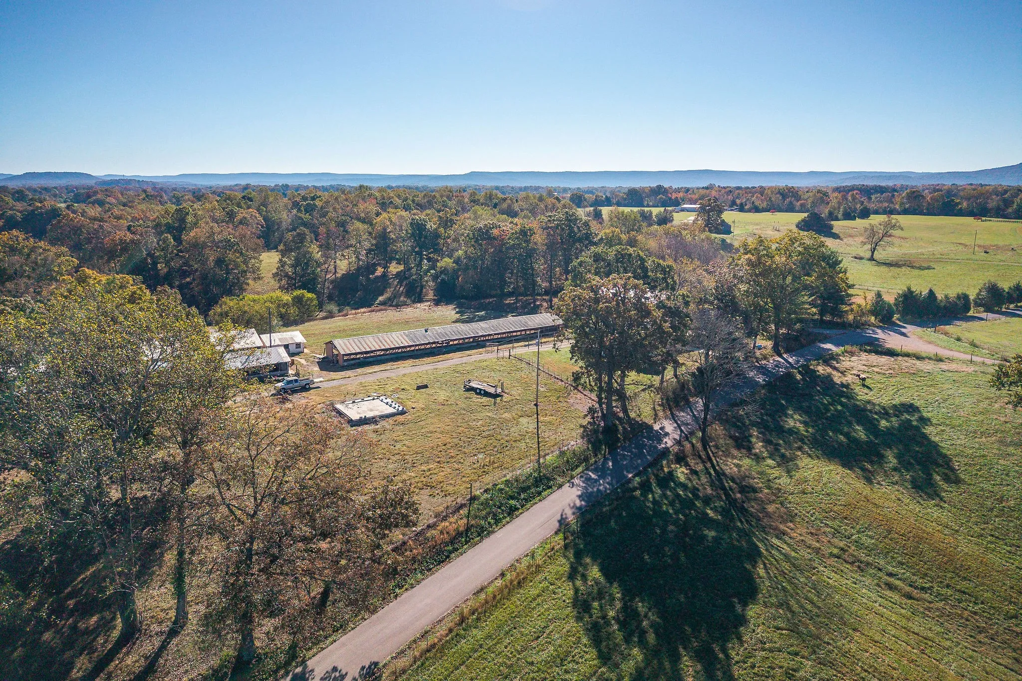 AT Public Auction46 +- Acre farm selling in one tract but could be subdivided by new owner. This modular home is like brand new inside and out, 2/3 bedrooms 1.5 baths, Great room, kitchen Dining combo, apprx 1152 sq. ft. plus a 2-car carport. Five former poultry houses are on the property, would be ideal for kennels, all sorts of storage. The entire 46 acres fenced and cross fenced. The equipment shed is perfect for tractors, truck or hay storage. Large shade trees are scattered throughout the 46 acres. This is a rare opportunity to buy a 46-acre tract at your own price. Terms: 50,000.00 down (or letter of credit) day of sale on property, balance due 15-30 days. 2025 Taxes to be prorated. Possession at closing.