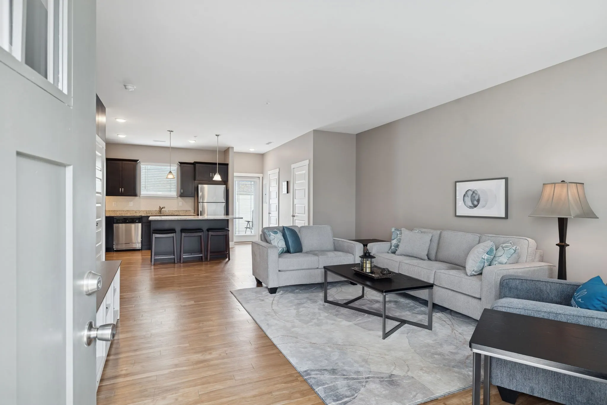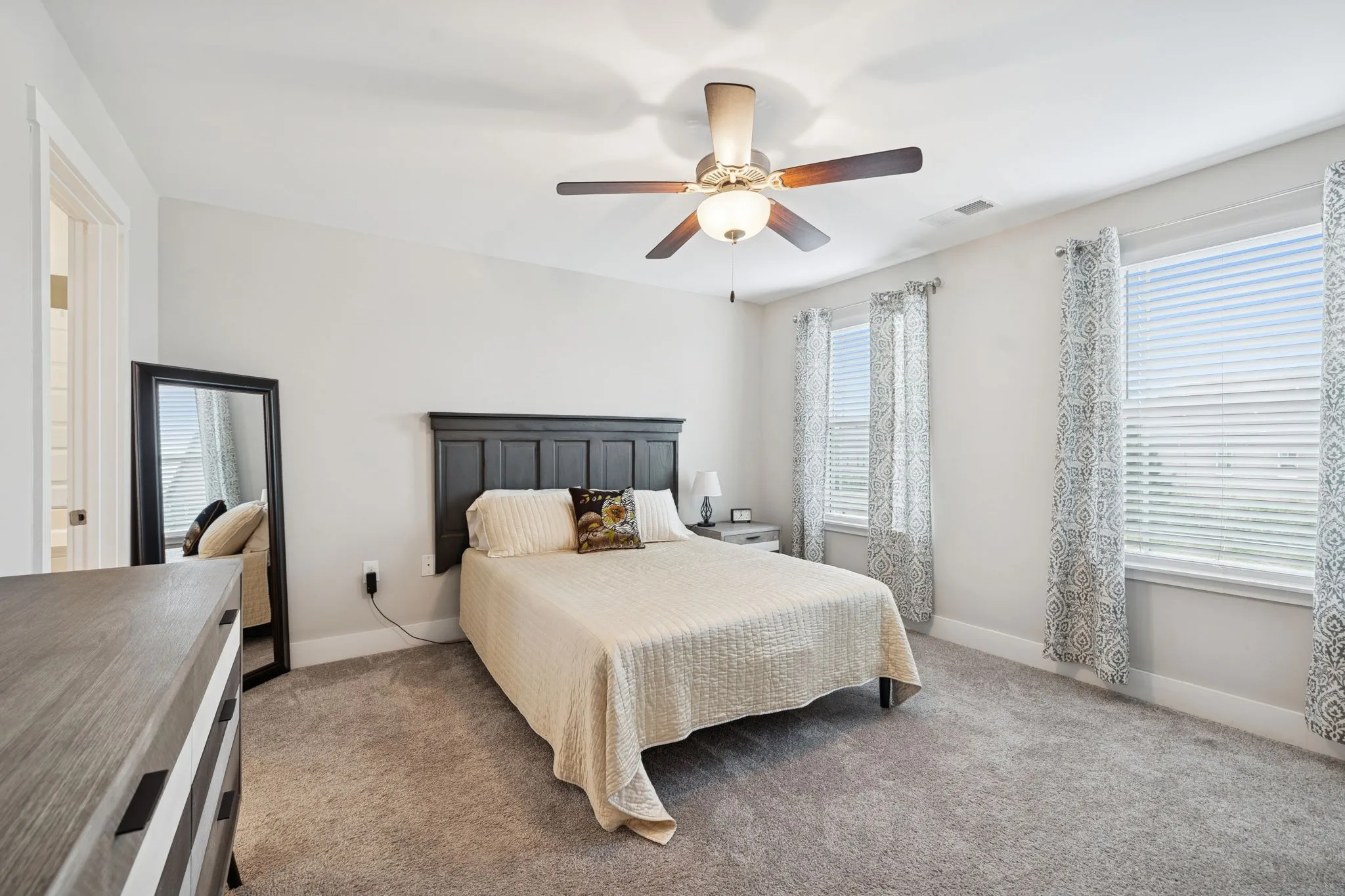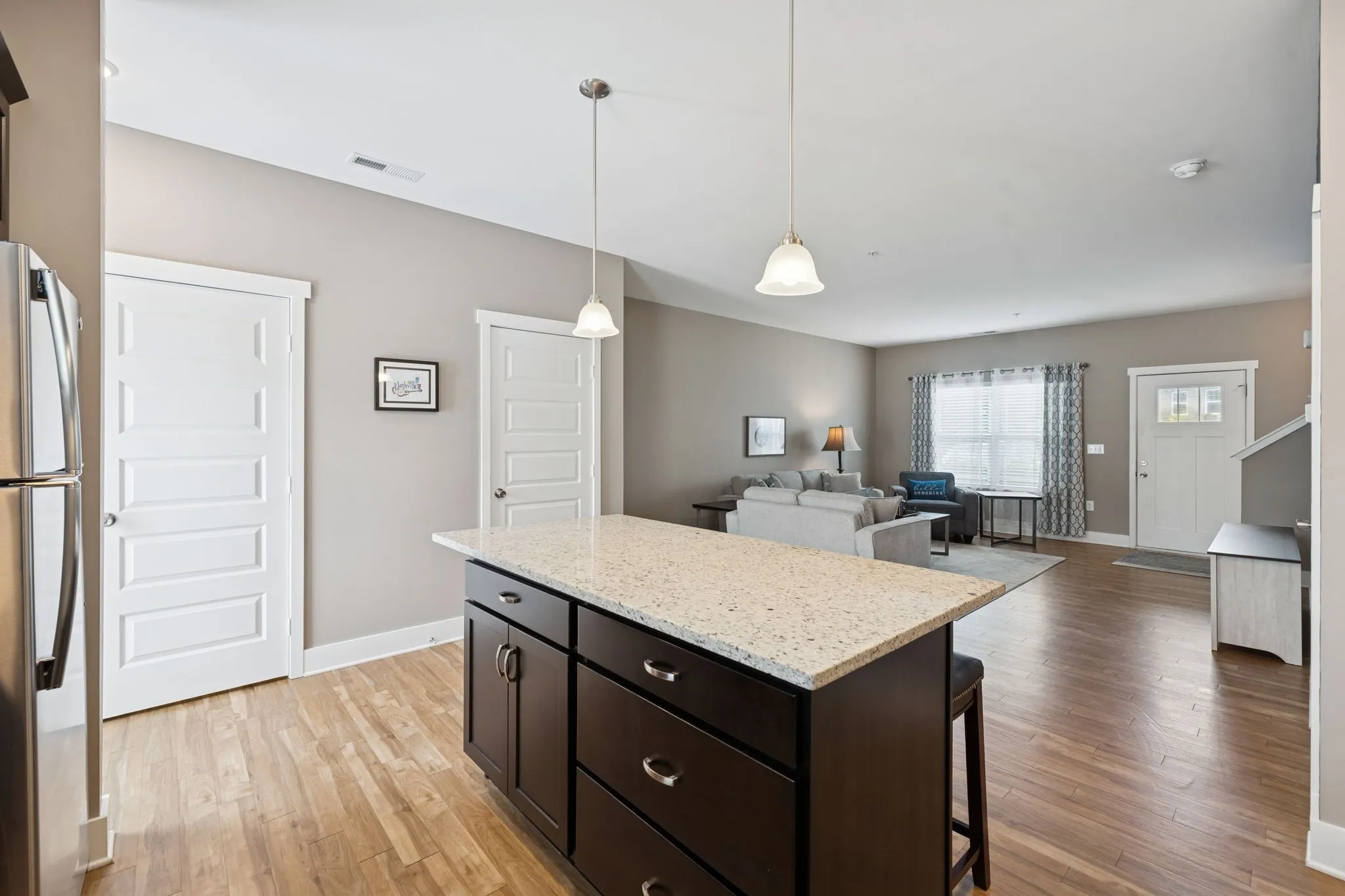 This impeccably maintained townhome offers the perfect blend of comfort, convenience, and community living. Nestled at the end of a tranquil street, yet just moments from shopping, groceries, and dining. The main floor plan, with a delightful kitchen is not only spacious but also features a pantry, a coat closet and a guest friendly half bath, adding to its functionality. Upstairs, two roomy bedrooms each boast large closets and private ensuite bathrooms, ensuring personal space and comfort. Outdoor enthusiasts will appreciate the private patio with extended fencing, ideal for relaxation or gatherings, alongside a large exterior storage closet. This move-in-ready home comes with two designated parking spaces, and easy access to I-65 makes commuting a breeze. The Somerset Springs community enhances your lifestyle with amenities like a swimming pool, fitness center, walking trail, and playground, catering to diverse interests. With friendly neighbors and ample privacy, this townhome is perfect for both peaceful evenings at home and an active social life.