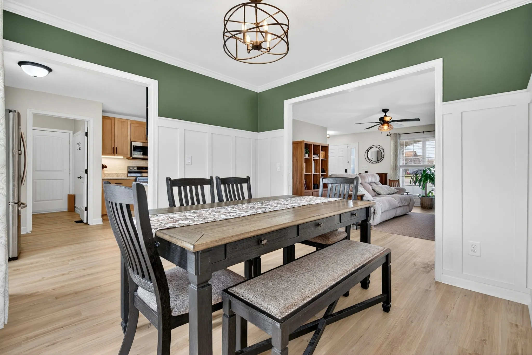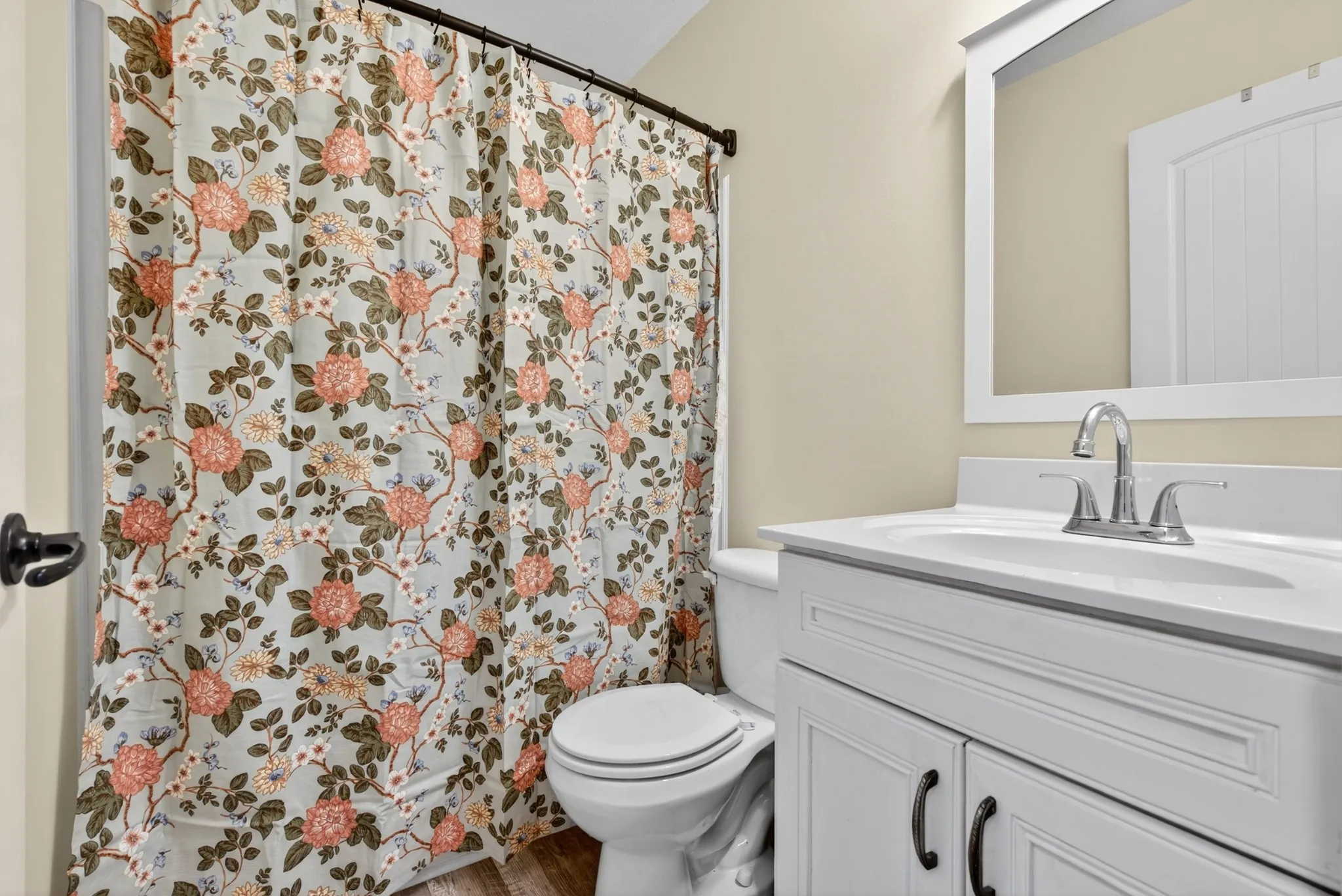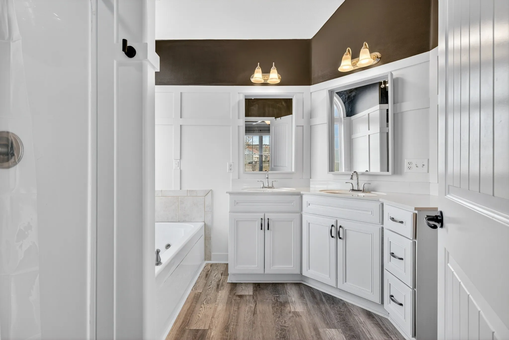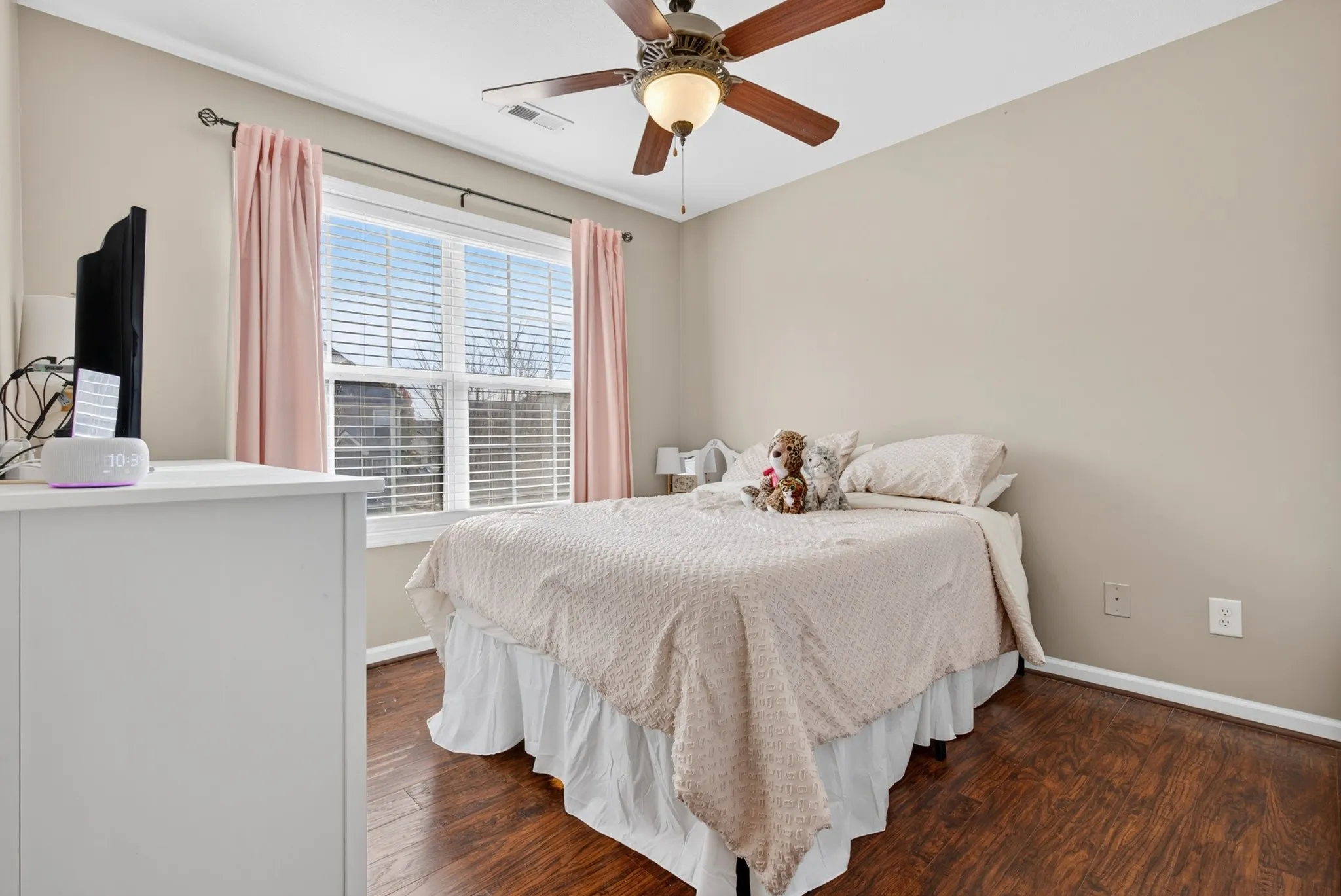 Features hardwood stairs, spacious living room with wood-burning fireplace, and a country kitchen with stainless steel appliances, and custom backsplash. Primary suite offers double tray ceiling, accent wall, large walk-in closet, dual vanities, and jetted tub. Guest rooms with hardwood floors plus a huge bonus room. Loaded with upgrades — a must-see!