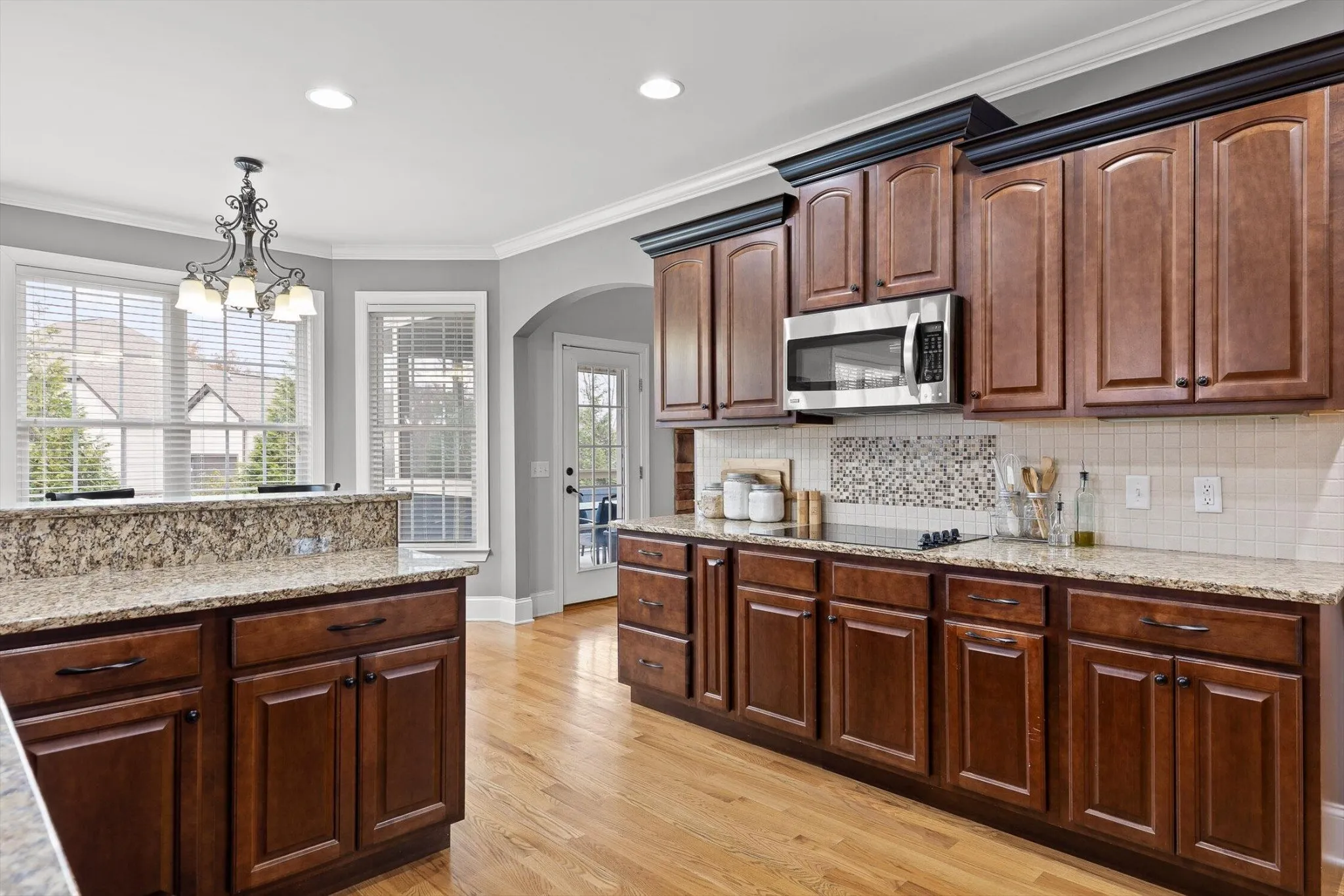 The floorplan is built to focus on the massive kitchen as the true heart of this home, but it also has space set aside to create quiet places inside when needed. All rooms in this home are large and inviting. The large foyer invites you inside and opens up to the vaulted Great Room, with a beautiful view of this fantastic back yard and all that it offers. This leads directly into the stunning kitchen, adjacent to many of the rooms for convenience. There’s a separate formal dining room for quiet dinners, or use the breakfast nook to keep everyone cozy in the kitchen. The Great Room is anchored by the stacked stone fireplace, providing a nice visual backdrop from the kitchen. This large kitchen has custom cherry cabinets, with granite countertops and stainless appliances to compliment the room. The breakfast nook is perched in a bay window overlooking the backyard, the pool and pond. A perfect-sized den sits just off the other side of the kitchen and is useful for whenever separate spaces are needed for extra guests. The large primary suite has a dome ceiling, sitting area, and view of the woods outside. The luxurious ensuite bath has separate vanities, a jetted tub, and an over-sized tile shower. An open stairway leads to the 3 upstairs bedrooms and bonus room. The front bedroom has its own private bath and is very bright with a large east facing window. The next bedroom is a suite with another bedroom or bonus room just beside it, plus a large walk-in closet.