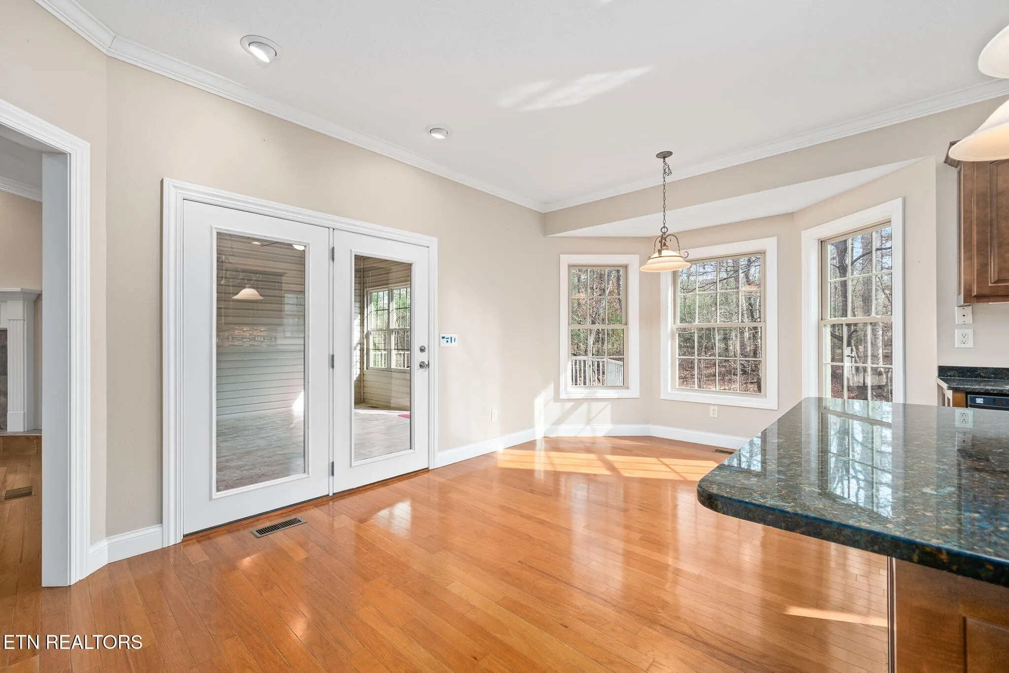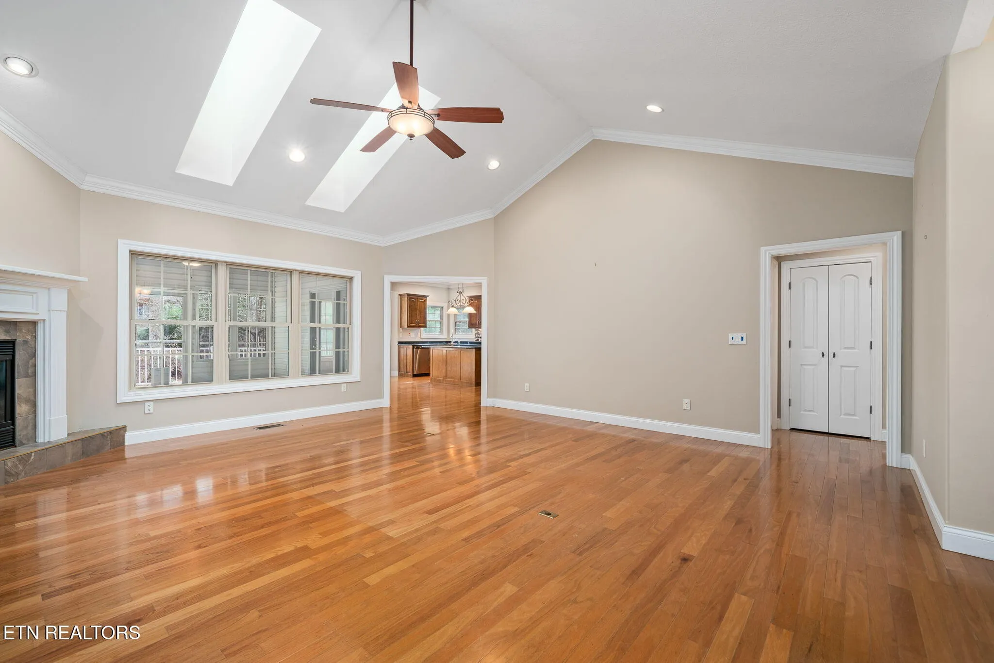 Inside, enjoy 10-foot ceilings, a vaulted living room with skylights, and a bright sunroom overlooking the backyard. The kitchen is well-appointed with granite countertops, stainless appliances, pantry, and abundant cabinetry with pull-outs and lighting. The primary suite features a tray ceiling, dual walk-in closets, whirlpool tub, and tiled walk-in shower, while the renovated guest bath adds modern appeal.