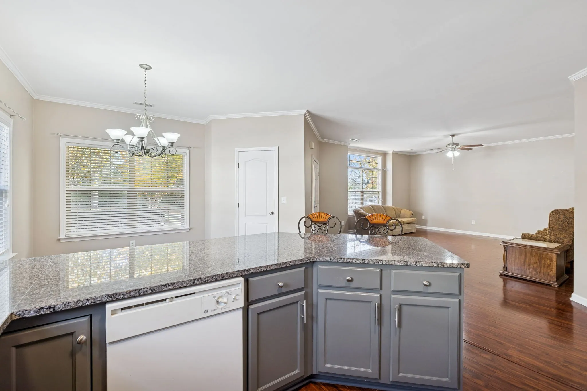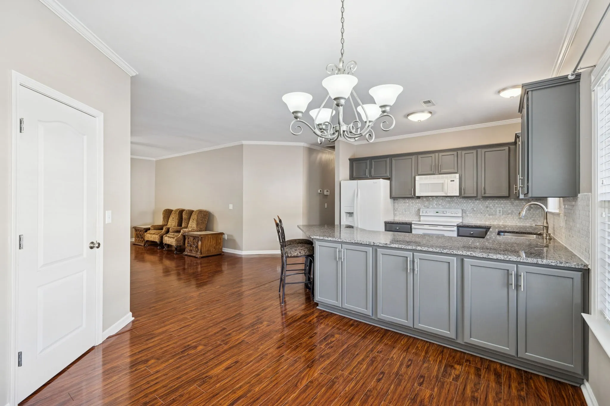 Save up to 1% of your loan amount as a closing cost credit when you use seller’s suggested lender! Enjoy easy, one-level living in this beautifully maintained end-unit condo conveniently located just minutes from all the shopping and dining on Main Street in Spring Hill. New roof less than a year old! Only 20 minutes from CoolSprings Galleria and 30 minutes from downtown Nashville. Step inside to find hardwood floors throughout the main living areas and an open floor plan designed for comfort and functionality. The spacious living room flows seamlessly into the dining area and large kitchen, complete with beautiful gray cabinetry, granite countertops, a sleek tile backsplash, and built-in appliances that remain with the home. The primary suite features an ensuite bathroom with double vanities, a soaking tub, a walk-in shower, and a large walk-in closet. Two additional bedrooms share a full bathroom, offering flexibility for guests, family, or a home office. Washer and dryer included as well! A true highlight of this home is the enclosed sunroom with air conditioning—a bright and inviting space to relax and enjoy year-round comfort. Move-in ready, thoughtfully updated, and ideally located—this condo has it all!