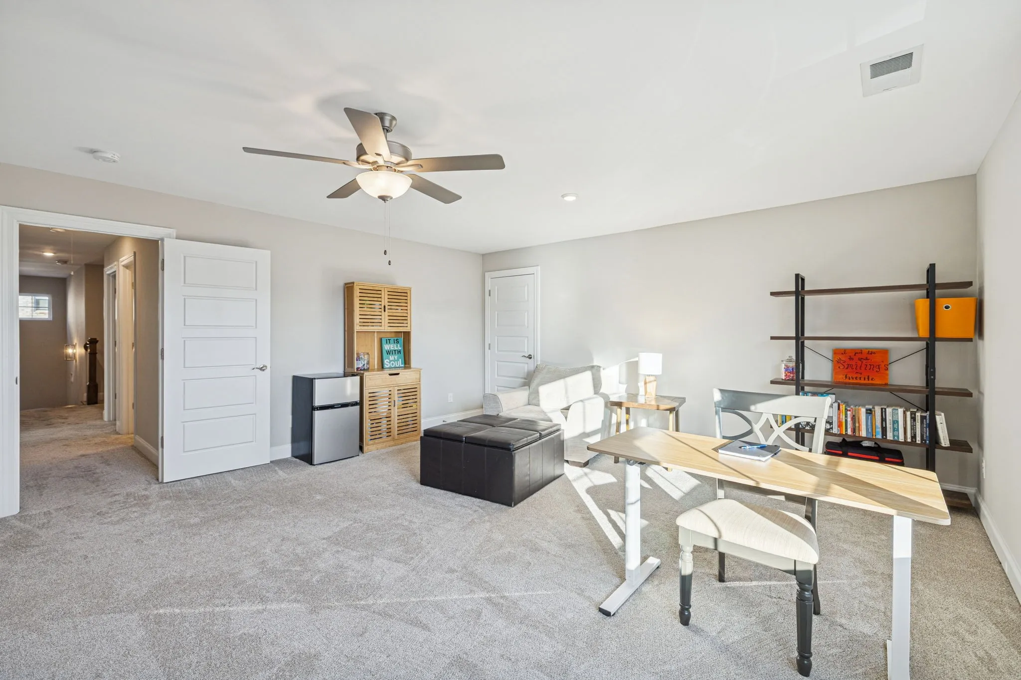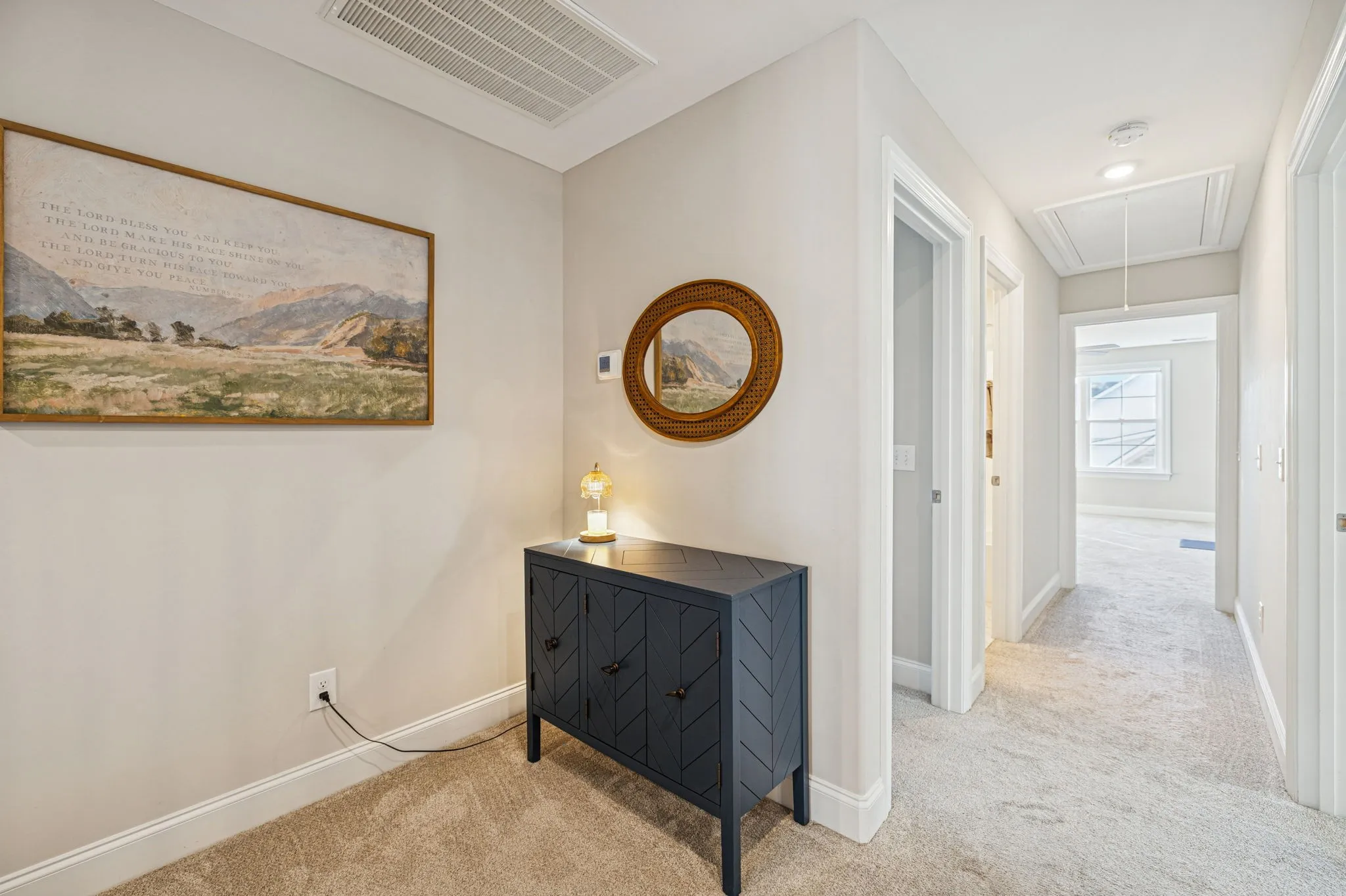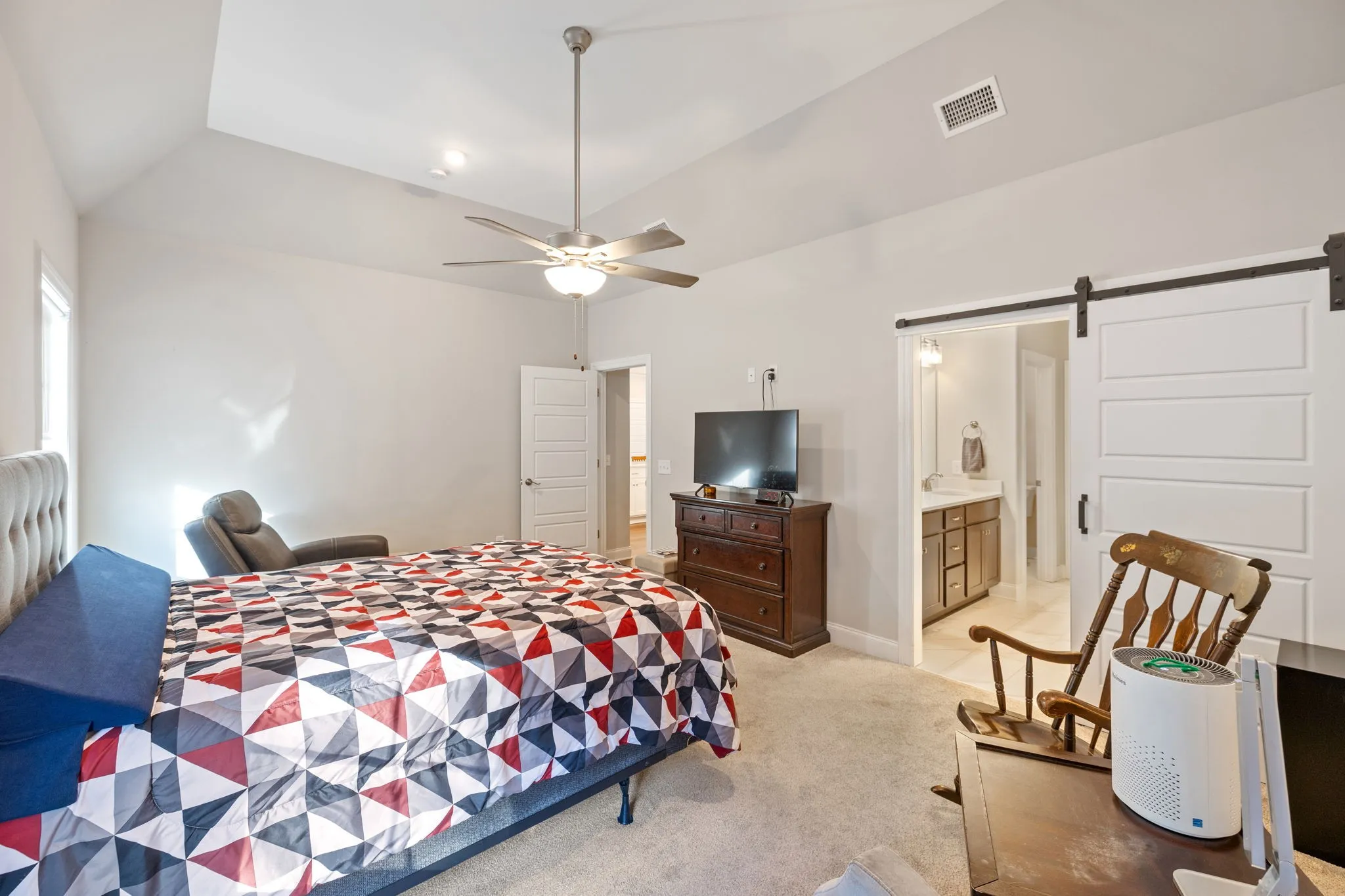 Step into luxury living with this like-new, move-in ready home in the highly desirable Farms community – known for its peaceful, country feel and top-rated Stewarts Creek schools. This stunning 3-year-old residence features an impressive double front door that opens to an elegant foyer and an open-concept floor plan. Step into the living room with soaring vaulted ceilings, built-in shelving, and a cozy gas fireplace that elevates the warm, inviting atmosphere. The gourmet kitchen offers a large center island with sink, sleek cabinetry, recessed lighting, stainless steel appliances, and a pantry for storage. Enjoy a formal dining room with beautiful board-and-batten trim – great for both everyday meals and special occasions. The main-floor primary suite provides a serene retreat with a spacious walk-in closet, double vanity sink, and a large walk-in shower. Upstairs, you’ll find three oversized bedrooms, two full bathrooms, a generous rec room, and convenient attic storage. Additional highlights include a dedicated first floor office space, laundry room, powder room, a spacious side-entry 3-car garage with carriage-style details, and premium water filtration system which remains with the home. Head out back to the covered patio and extended outdoor living space for entertaining! Backing up to a wooded area, this home offers privacy while still giving you access to sought-after community amenities. Perfectly situated between Murfreesboro and Smyrna, with access to commuter routes. Don’t miss your chance to own a luxury Murfreesboro home filled with upgrades – schedule your private showing today!