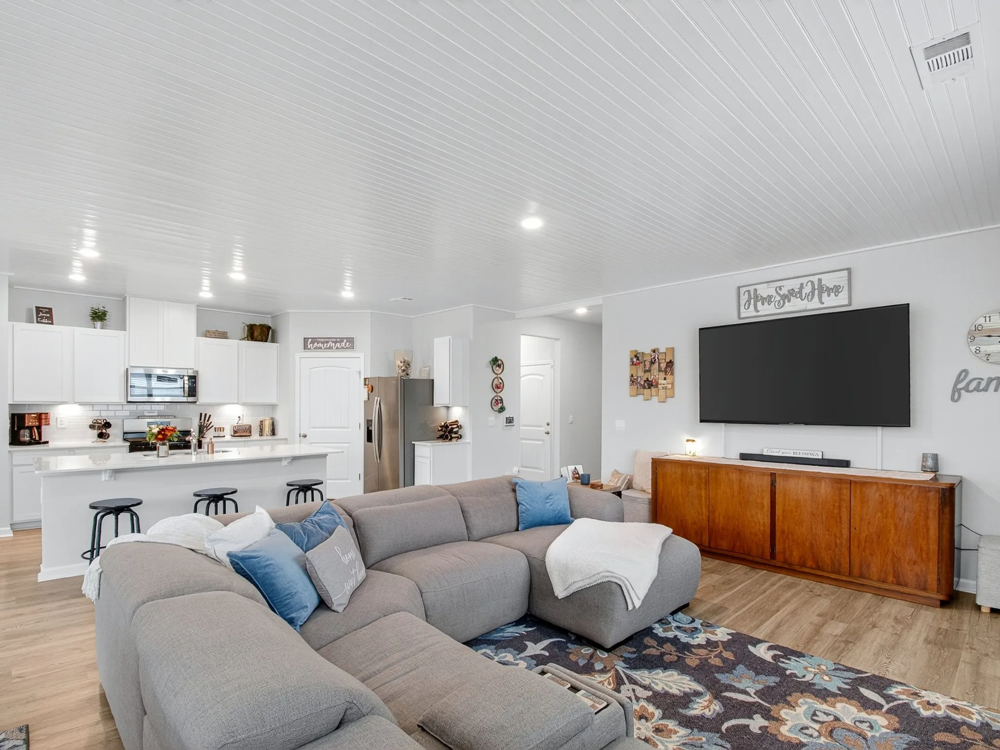 Get up to 1% towards closing with use of preferred lender (ask for details). Welcome to this stunning one-level home offering the perfect blend of modern design and everyday comfort—just 30 minutes north of downtown Nashville, 30 minutes south of Hendersonville and 30 minutes south of the Kentucky boarder. Built in 2024, this residence features 3 bedrooms, 2 full baths, and 1,796 square feet of beautifully crafted living space. Step inside to discover a bright, open-concept floor plan with beautiful wood floors and designer finishes throughout, including a new custom ceiling. The spacious living area flows seamlessly into the kitchen showcasing quartz countertops, stainless steel appliances, and a large center island—ideal for entertaining or enjoying family meals. The owner’s suite provides a private retreat with two walk-in closets and a luxurious en-suite bath complete with modern fixtures and finishes. Two additional bedrooms offer ample space for family, guests, or a home office. Outside on your back patio you can enjoy your privacy with no backyard neighbors.