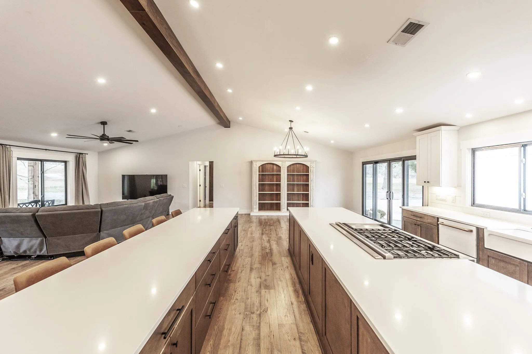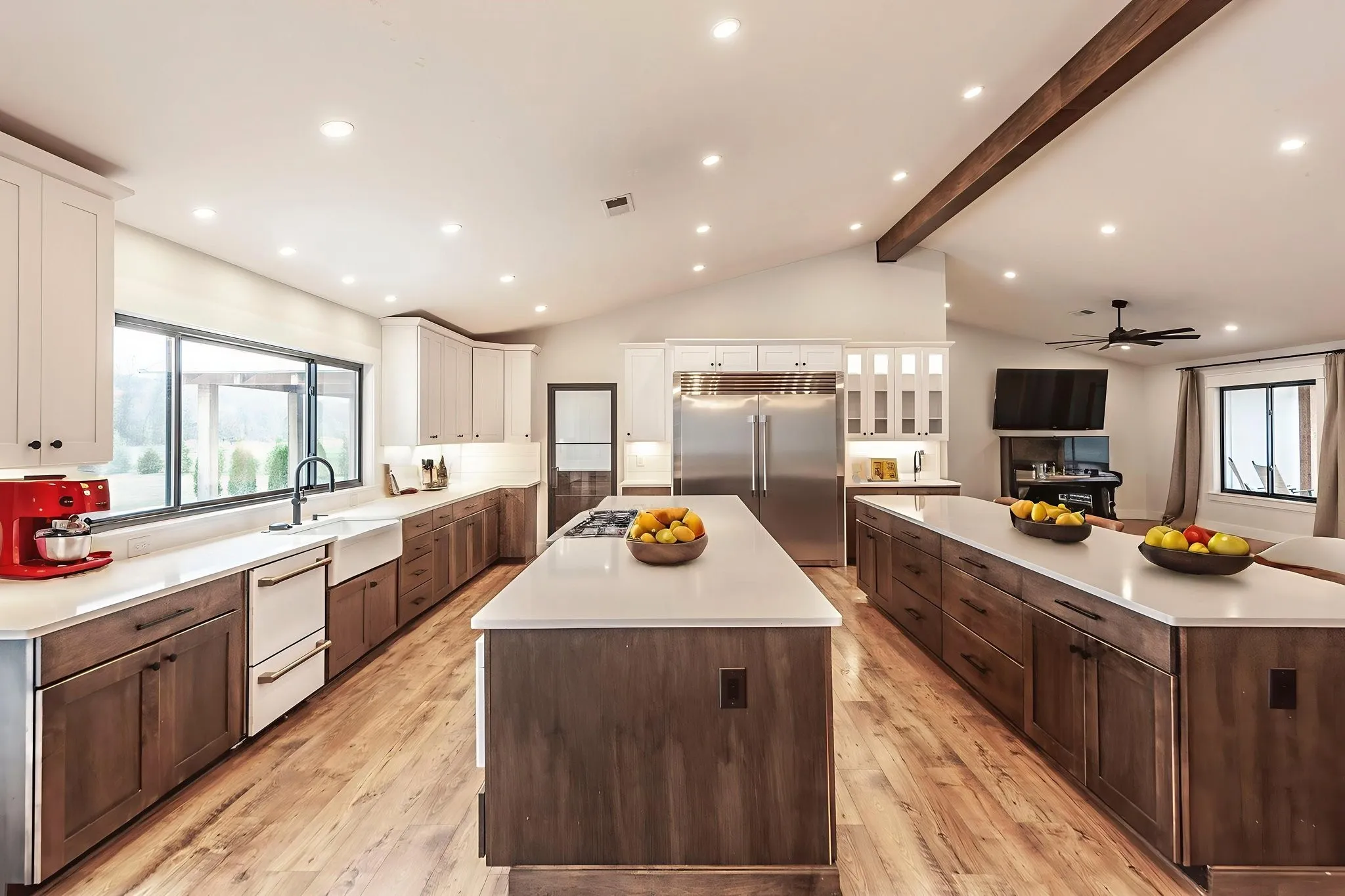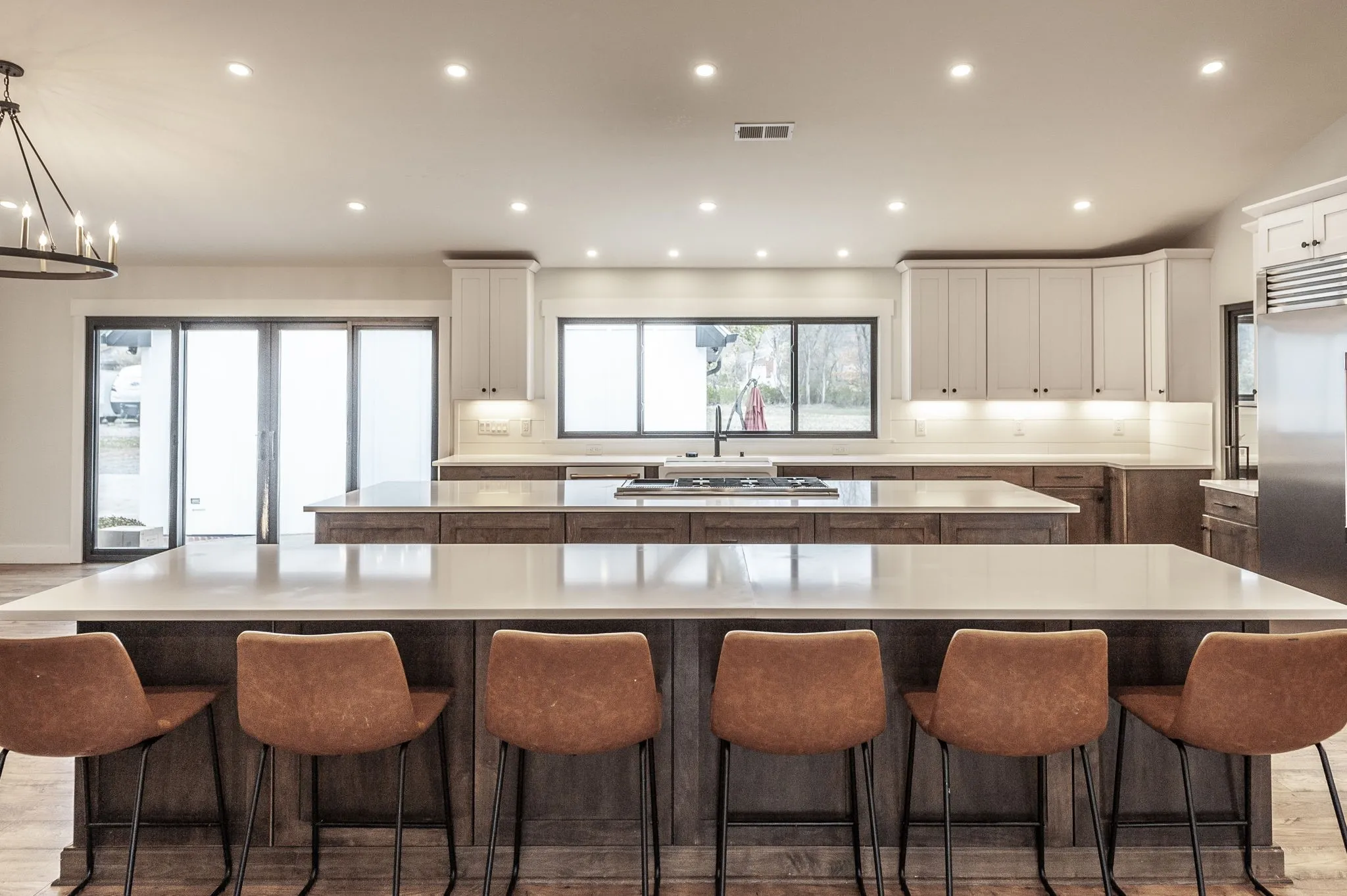 This home features two 12-foot islands in the kitchen, a Butler’s pantry equipped with a dishwasher, and heated bathroom floors. Enjoy the cozy fireplace in the master bedroom and the luxury of two primary suites featuring walk-in closets.