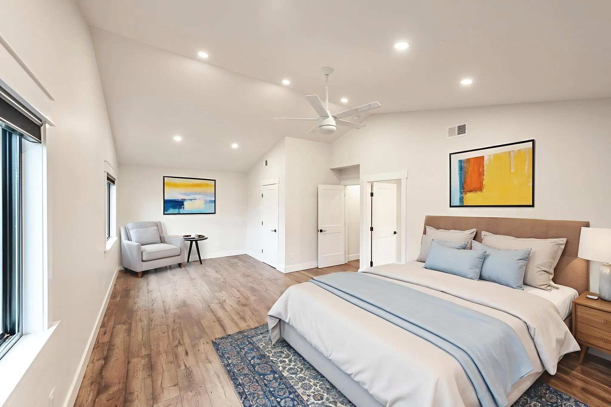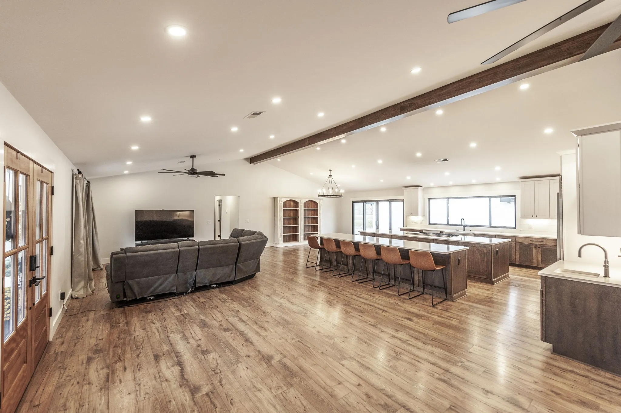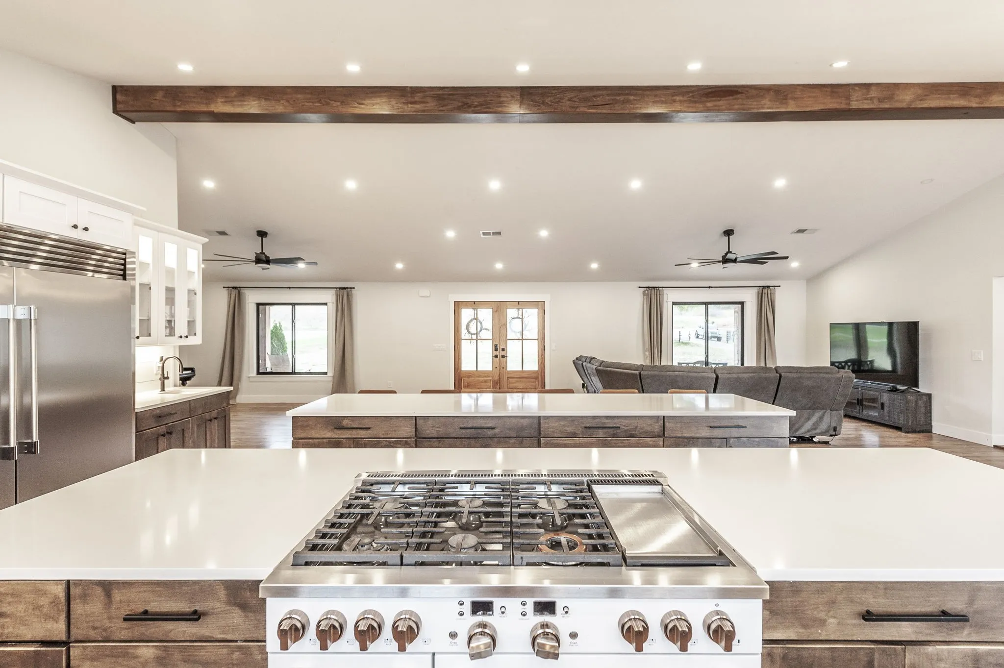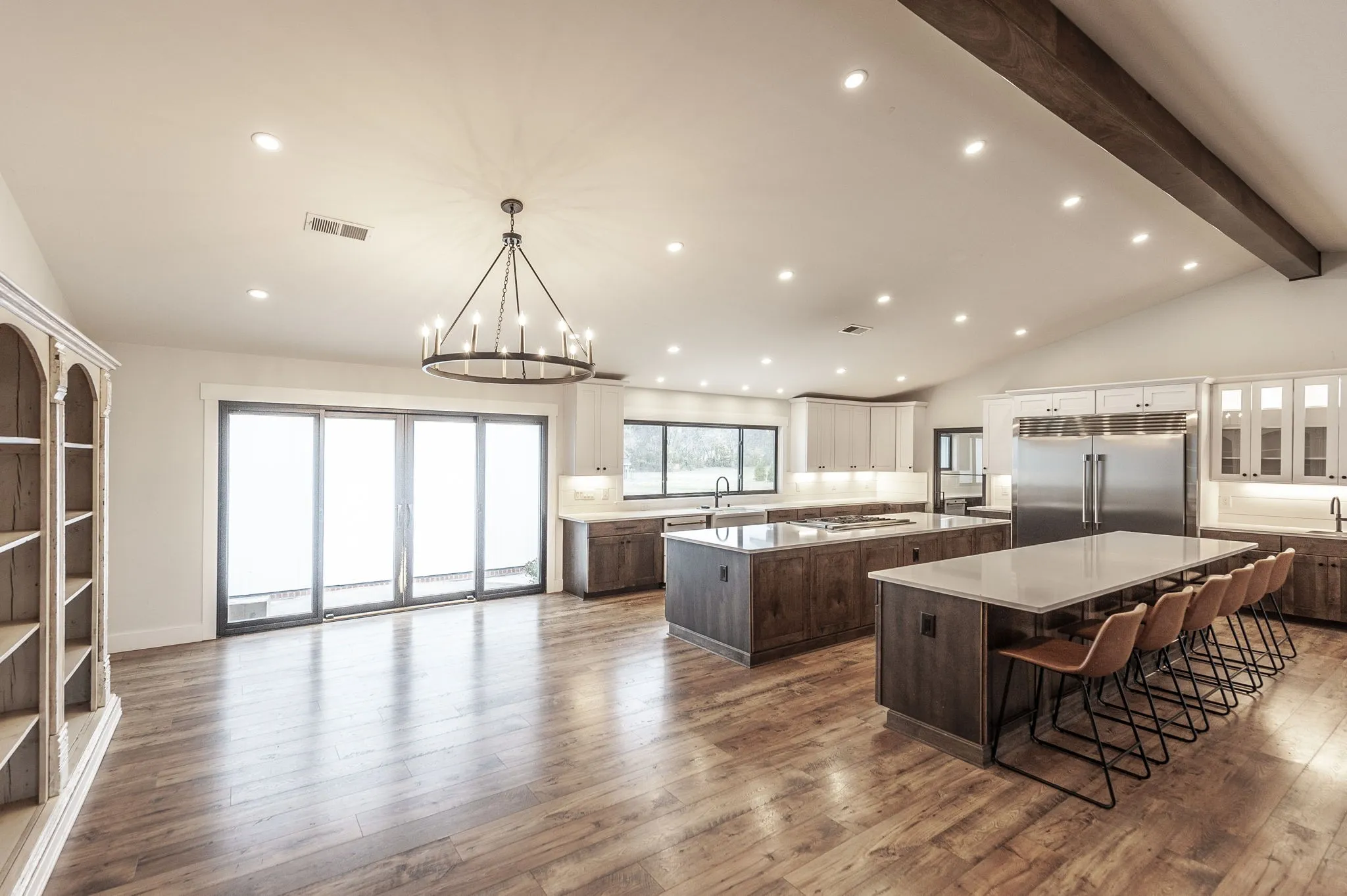 This home features two 12-foot islands in the kitchen, a Butler’s pantry equipped with a dishwasher, and heated bathroom floors. Enjoy the cozy fireplace in the master bedroom and the luxury of two primary suites featuring walk-in closets.