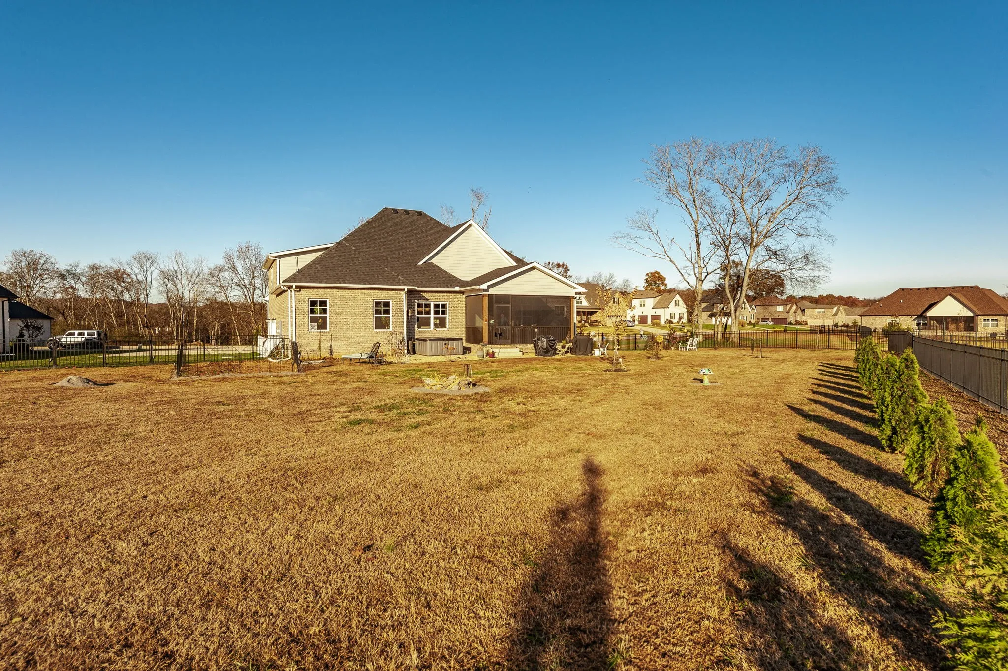 PREFERRED LENDER OFFERING A 1% LENDER CREDIT BASED ON LOAN AMOUNT AND A FREE APPRAISAL! Move-in ready and beautifully crafted, this custom-built all-brick home with a 3 car garage sits on a spacious half-acre lot! Enjoy outdoor living with both a covered front porch and a screened-in back patio overlooking the large, fenced backyard. Step inside to find beautiful natural LVP flooring flowing throughout the main living areas. The open eat-in kitchen features a gas range, large island, quartz countertops, and a tile backsplash. The living room boasts soaring vaulted ceilings and a stunning floor-to-ceiling stone gas fireplace, creating a warm and inviting atmosphere filled with natural light. The primary suite offers a peaceful retreat with trey ceilings, double vanities, and an upgraded tile walk-in shower. Upstairs, you’ll find a spacious bonus room with a walk-in attic for extra storage. This home combines timeless craftsmanship, modern finishes, and thoughtful details…ready for you to move right in and make it your own!