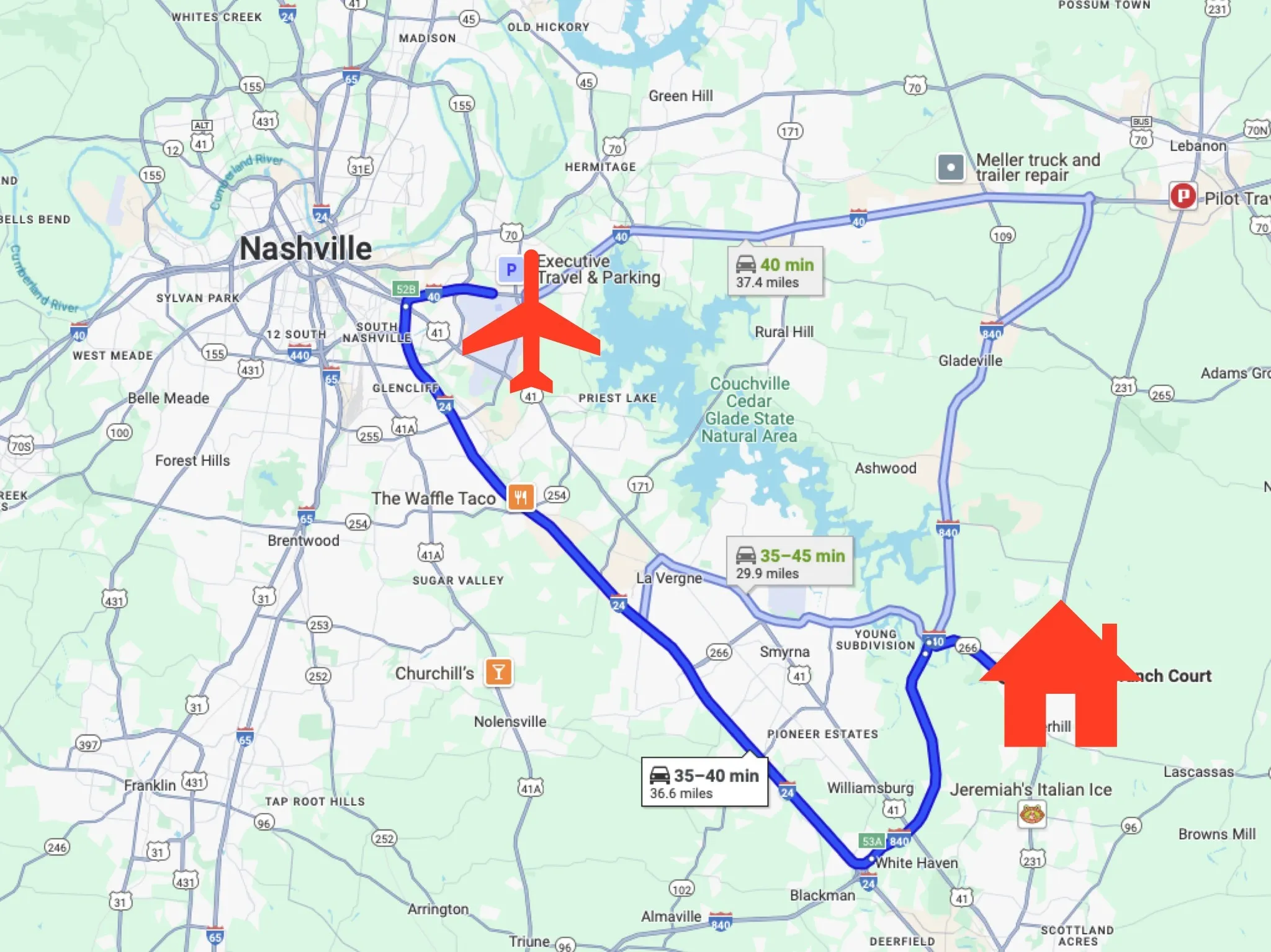 - Directions: From Nashville: Take I-24 East toward Murfreesboro. Use Exit 70 for TN-102/Almaville Road. Turn left onto Almaville Road (TN-102 North) and continue straight as it becomes Jefferson Pike (TN-266). Stay on Jefferson Pike for several miles. Turn right onto
