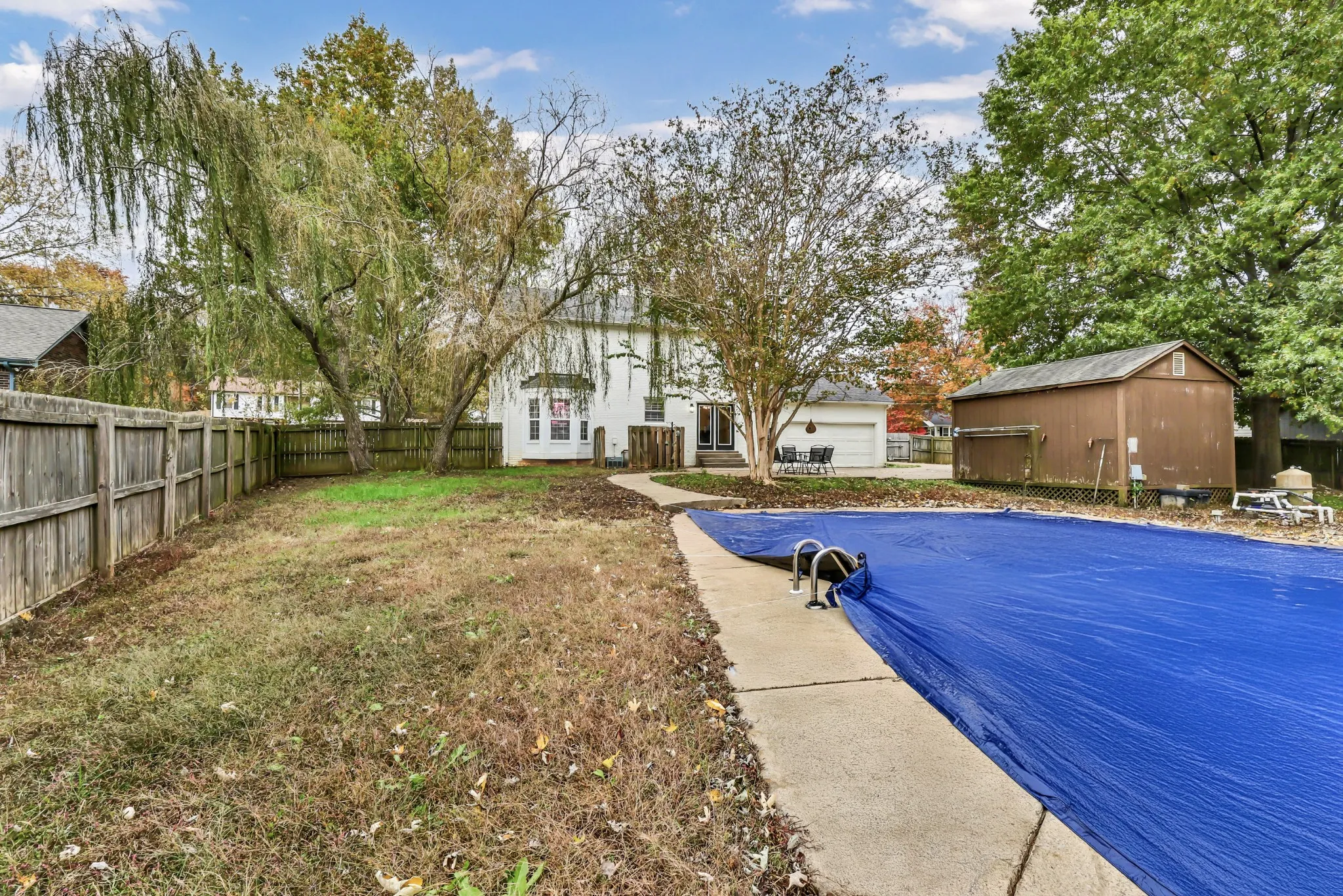 Enjoy the crisp white exterior of this all-brick home—timeless in style and built to last. Situated on a generous lot with mature trees, the property offers natural beauty, shade, and a sense of established charm. Inside, all bedrooms are thoughtfully located on the same level for effortless comfort and accessibility. The kitchen features granite countertops, bright stainless-steel appliances, and a modern shiplap backsplash, creating an inviting space for cooking and gathering. A formal dining room sits just off the kitchen, providing an elegant backdrop for meals and entertaining. The home offers two spacious living areas, giving you flexibility for relaxation, entertainment, or family time. An oversized two-car garage plus an additional storage shed ensure plenty of room for tools, toys, and gear. Outdoors, enjoy an inground pool perfect for warm-weather fun, along with a dedicated children’s play area—ideal for both relaxation and recreation.