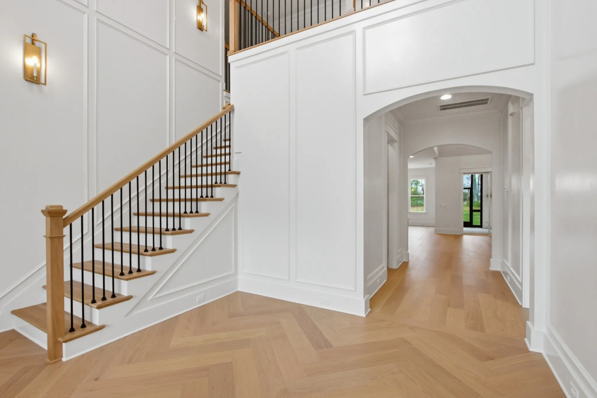 From the moment you walk in, you’re greeted by a breathtaking 19’ foyer with herringbone hardwood flooring and elegant wall details throughout. The main level features 10’ ceilings, while the upper level offers 9’, creating an open and airy feel in every room.