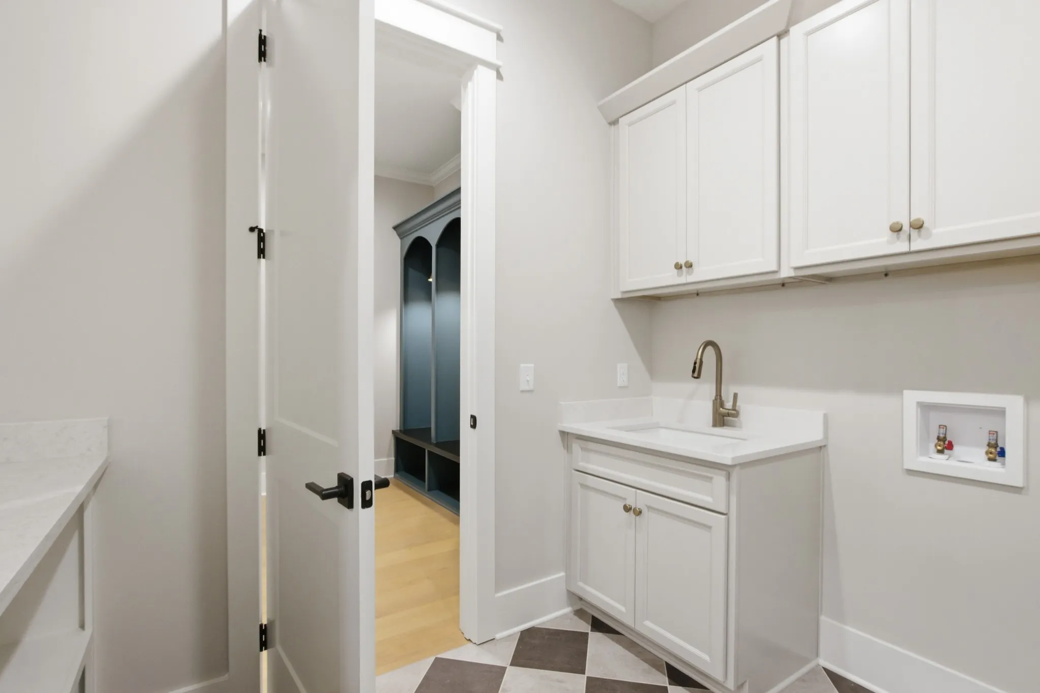 The primary suite is a true retreat, boasting a 19’ vaulted ceiling, his-and-hers closets, and direct access to the laundry and mud room. All bedrooms include their own en-suite bathrooms for added comfort and privacy.