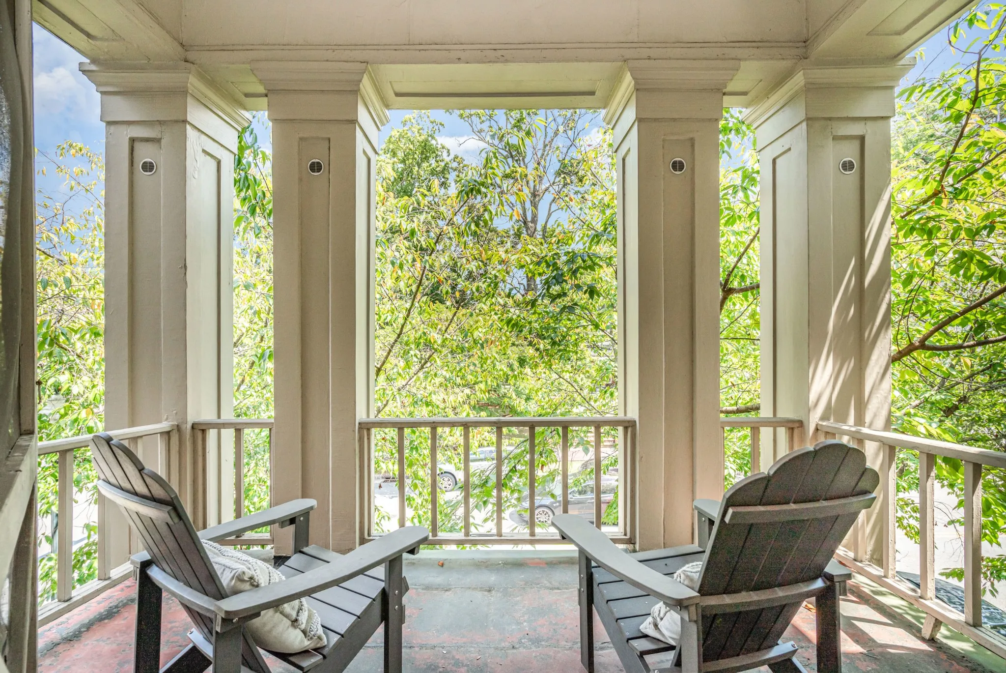 Parking: Carport parking behind building, nearby parking garage, and ample street parking.