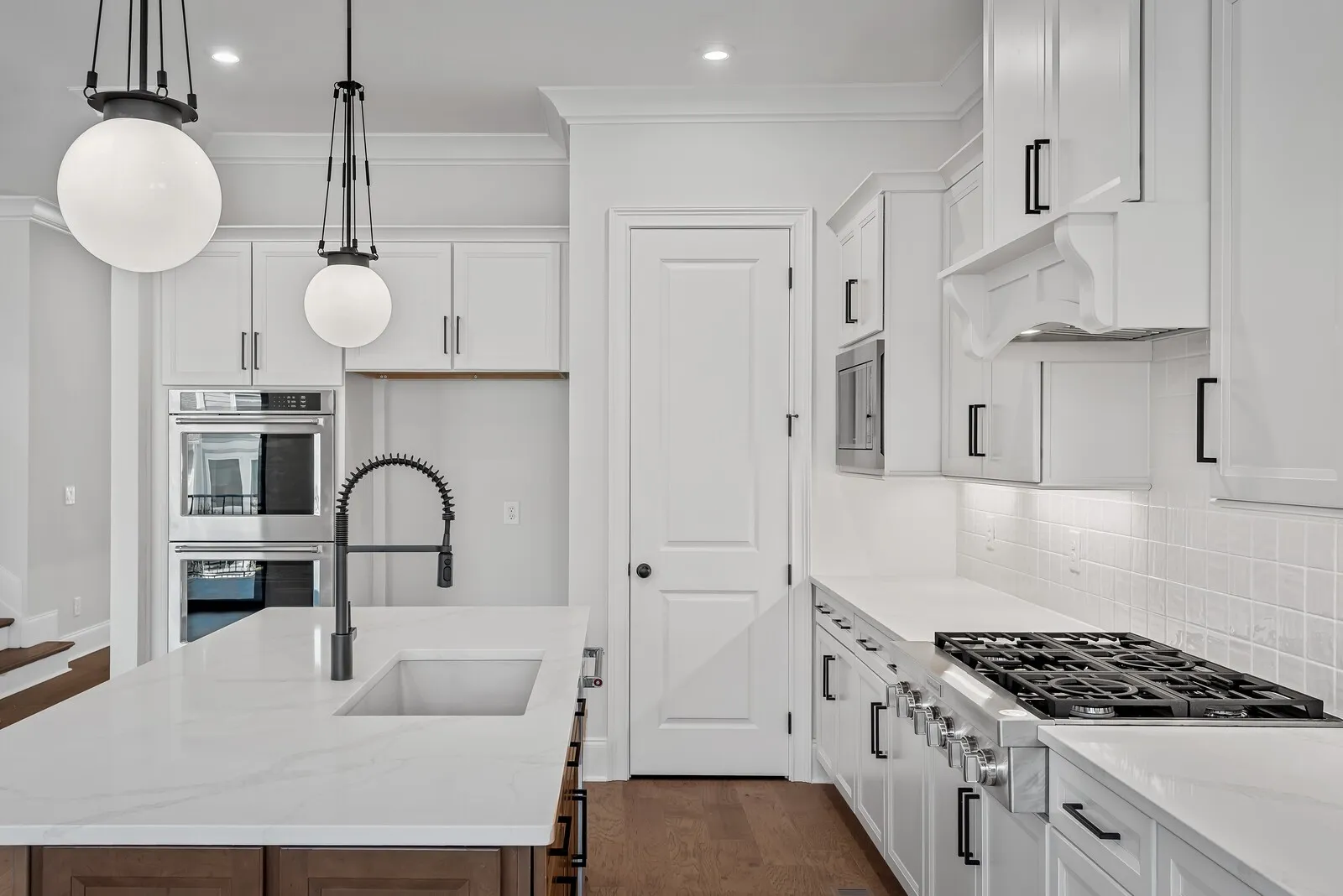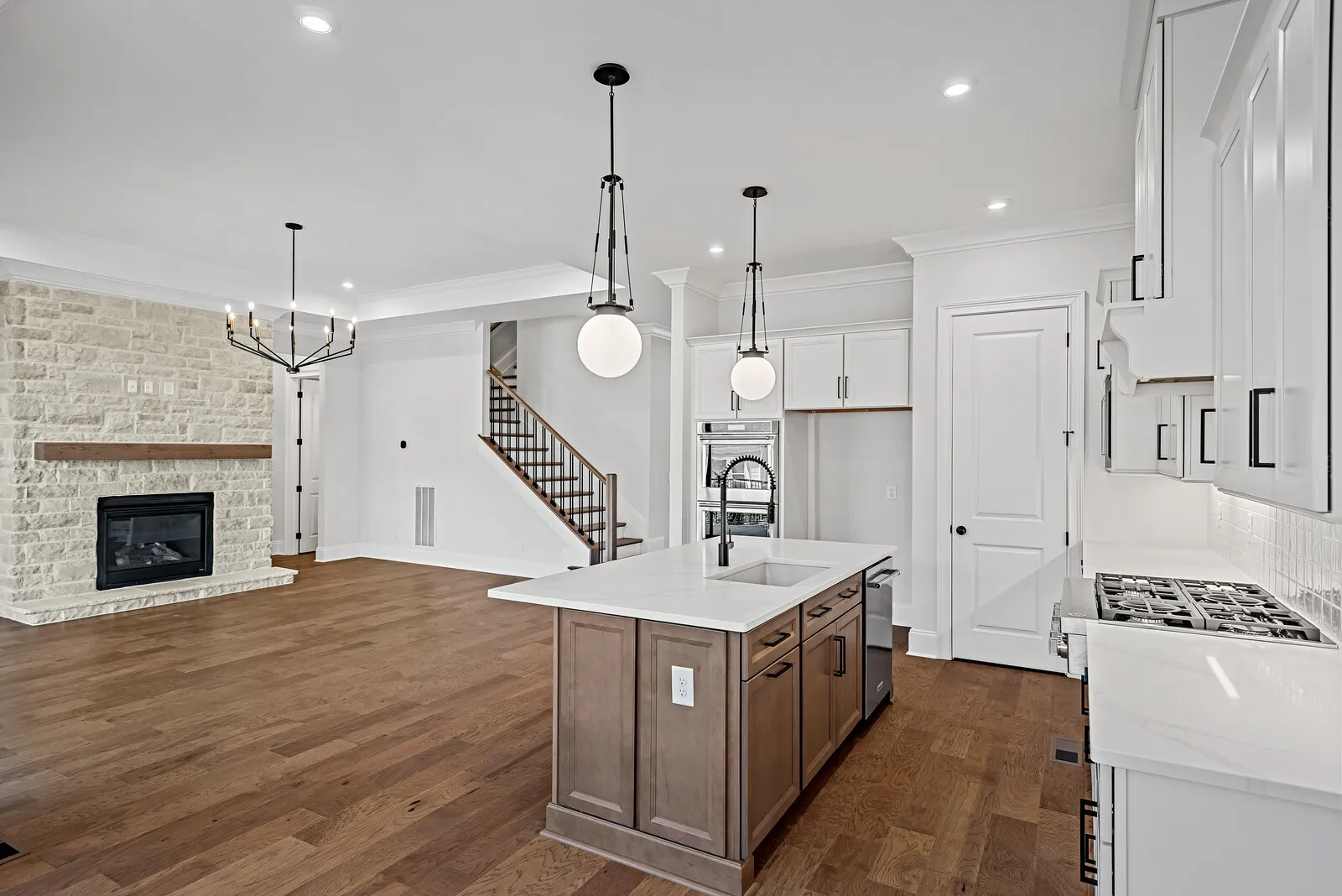 The gourmet kitchen is designed to impress with double ovens, double stainless appliances, and sleek quartz countertops. A huge family-ready room adds everyday convenience with abundant storage, work space, and secondary fridge space.