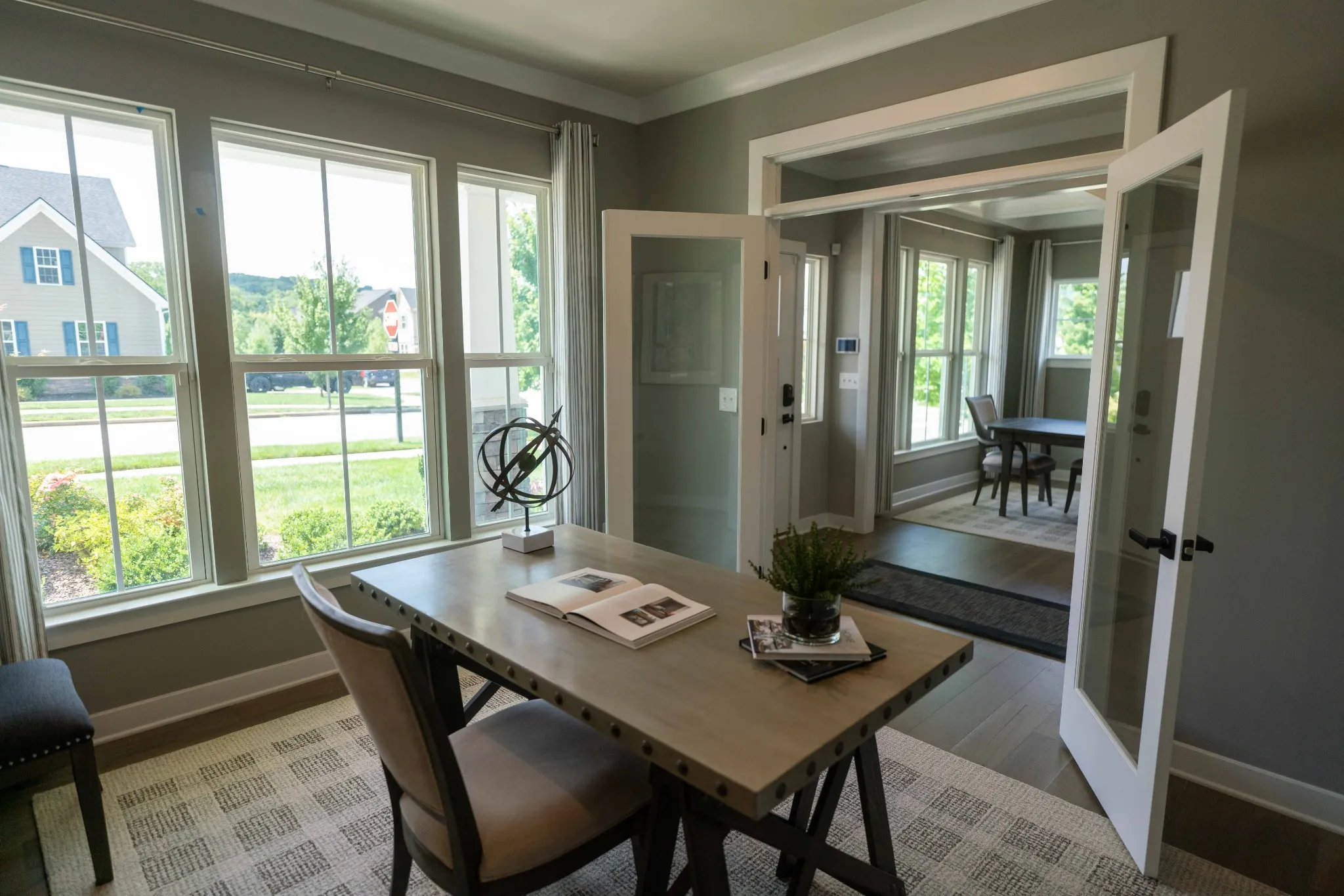 This home offers 4 bedrooms and 3.5 baths. The laundry room includes a utility sink for added convenience. Downstairs features a beautiful open space with a separate office/library room. Neighborhood amenities include a community pool.
