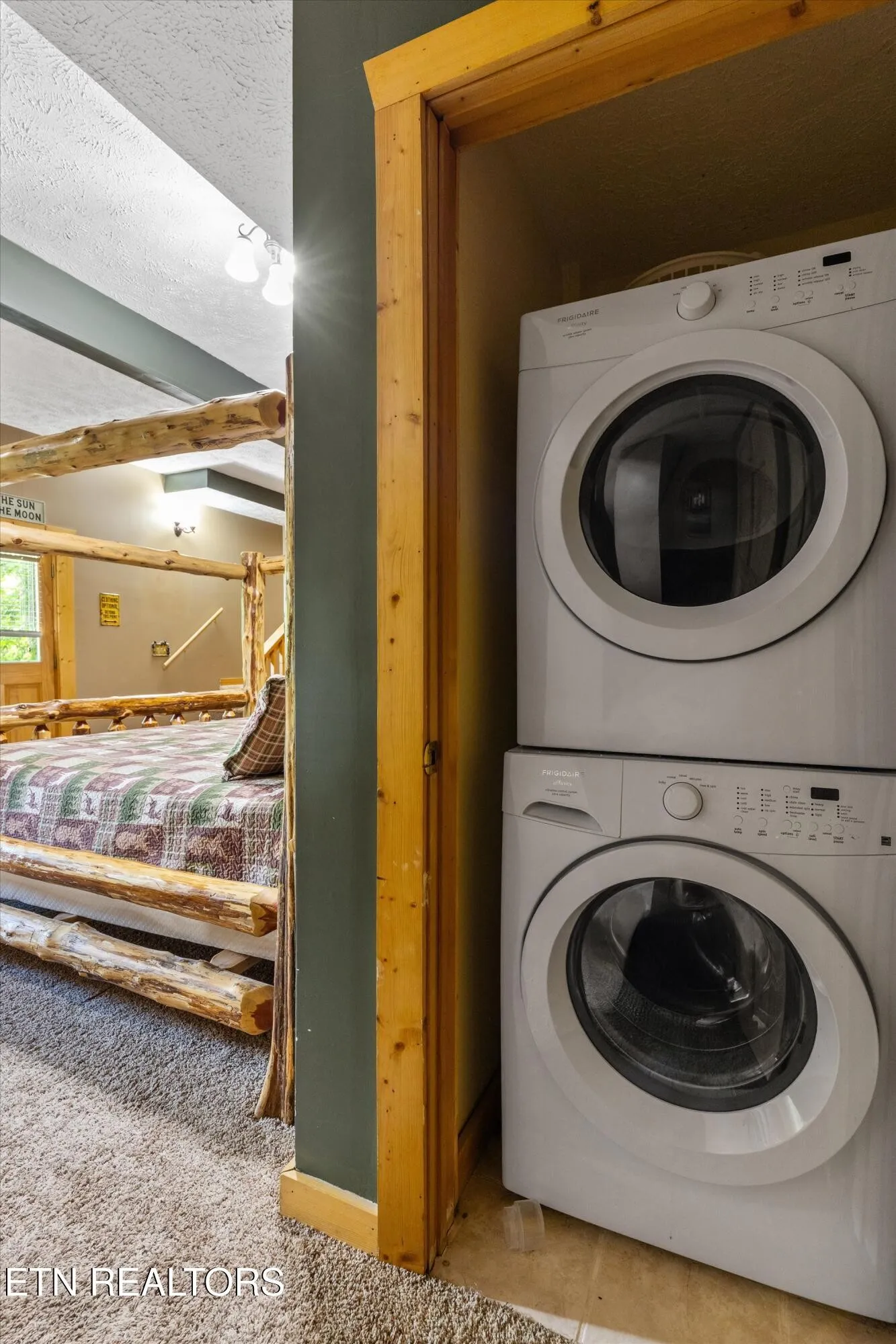 Inside, you’ll find a well-maintained space that easily sleeps four, with recent upgrades including brand-new flooring in the kitchen and bathrooms, a freshly painted front door and trim to make it pop, and newly stained exterior logs. Did we mention it’s an interlocking true log cabin?! The warm, rustic charm is enhanced by a stone fireplace, a custom-made dining set, an in-unit washer and dryer, and entertainment options like a foosball table and a Pac-Man arcade game. Step outside to enjoy the hot tub, classic wooden swing, and inviting porch furniture, all set against a peaceful wooded backdrop.
