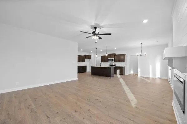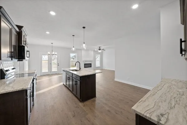 Four bedrooms all on the main floor make this stunning ranch-style home as functional as it is beautiful! Step through the front door and you’ll immediately feel the airy openness of the expansive open-concept floor plan. The heart of the home is the large, inviting kitchen featuring a generous island that’s perfect for entertaining or casual meals. Overlooking the spacious great room with its cozy shiplap fireplace, this layout ensures you’ll always be part of the conversation.\n