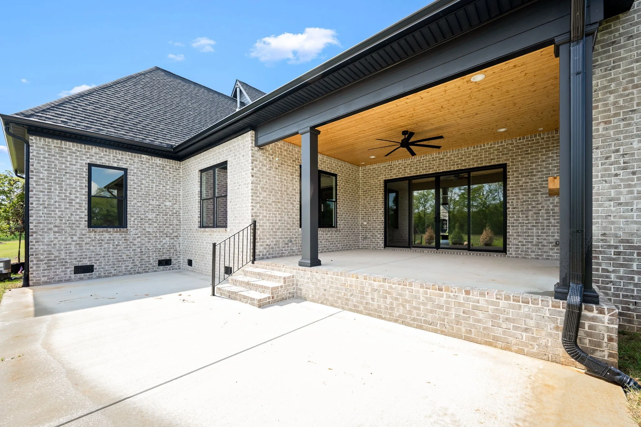 The chef’s kitchen is a standout, featuring a 6-burner cooktop, pot filler, double ovens, and gorgeous custom cabinetry. A bright and airy living room offers expansive glass sliders that lead to a spacious covered patio complete with a full masonry fireplace—perfect for year-round entertaining.