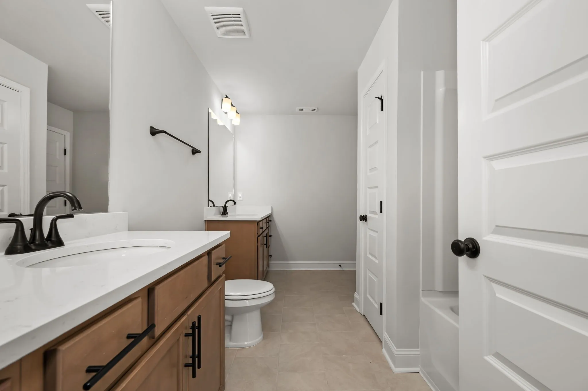 Discover the Drew plan — a smart, split-layout design that makes everyday living easy and comfortable. The front door opens to a bright living room, while the kitchen and dining area sit privately in back, creating a cozy but open flow. The kitchen features an L-shaped layout with abundant counter and cabinet space, plus a pantry. A convenient hallway between the living room and kitchen offers access to a powder room, storage closet under the stairs, and the garage entry. The main bedroom is tucked off the kitchen with a private bath boasting dual vanities on opposite walls and a linen closet. Upstairs, you’ll find two large bedrooms, a full bath with separate vanities, and 2 oversized storage closets one of which is located in bedroom 2 while bedroom 3 has in-room access to the bathroom.