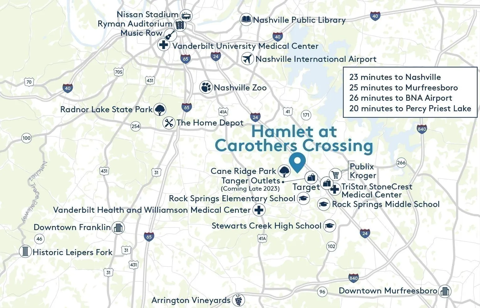 - Directions: From Nashville: I-24 to Waldron Rd / Exit 64 - Turn Left on Waldron, Right on Carothers Rd, Left on Oasis Drive. Proceed on Oasis Dr 0.3 miles straight ahead. Pulte Homes Model Home on the right at 220 Oasis Dr. La Vergne 37086.