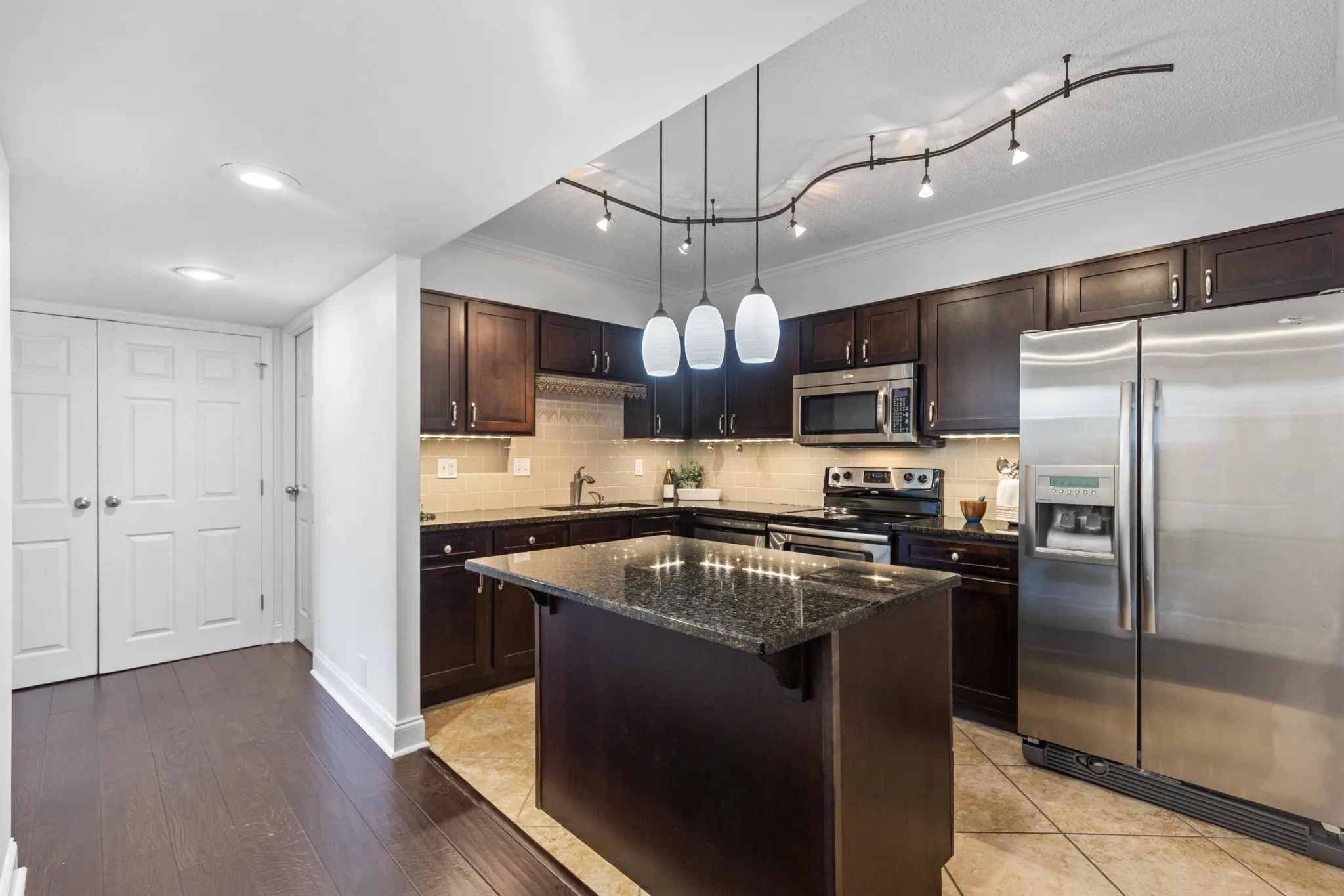 • Gourmet kitchen with granite countertops and stainless steel appliances