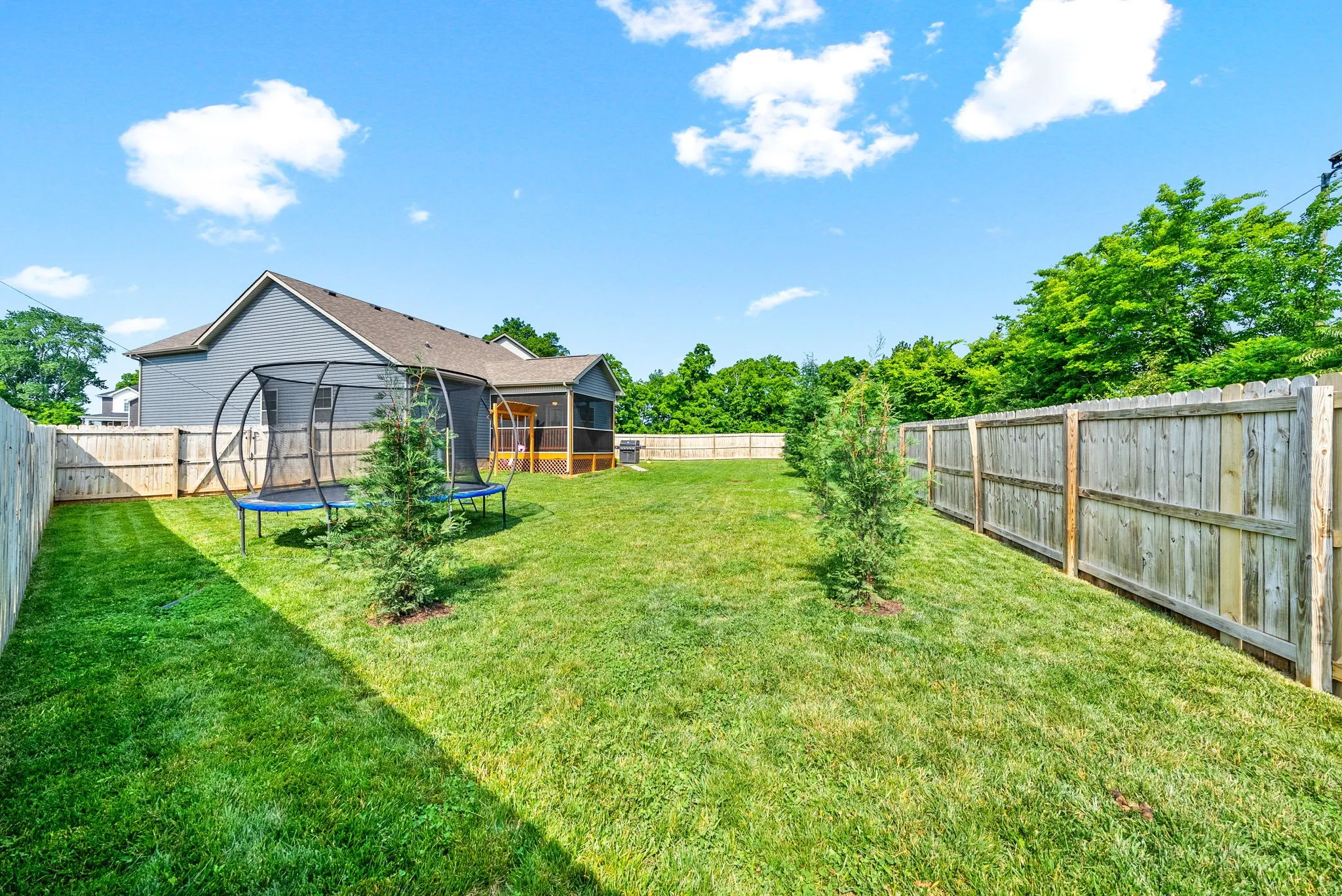 Located in a quiet cul-de-sac, this well-maintained 3 bedroom, 2 bath home with a large bonus room offers modern comfort and a functional layout. With all the bedrooms on the main level and an open concept design features a spacious kitchen with granite countertops, stainless steel appliances, updated fixtures, and a large island that flows into the inviting living room with a cozy gas fireplace. The primary suite includes a tray ceiling, double vanities, and a walk-in tiled shower. Enjoy outdoor living with a screened deck, additional patio space, and a fully fenced backyard perfect for relaxing or entertaining. This home also includes a security system and sits minutes from shopping, dining, and only 20 minutes to Fort Campbell. This move-in ready home offers incredible value and convenience.