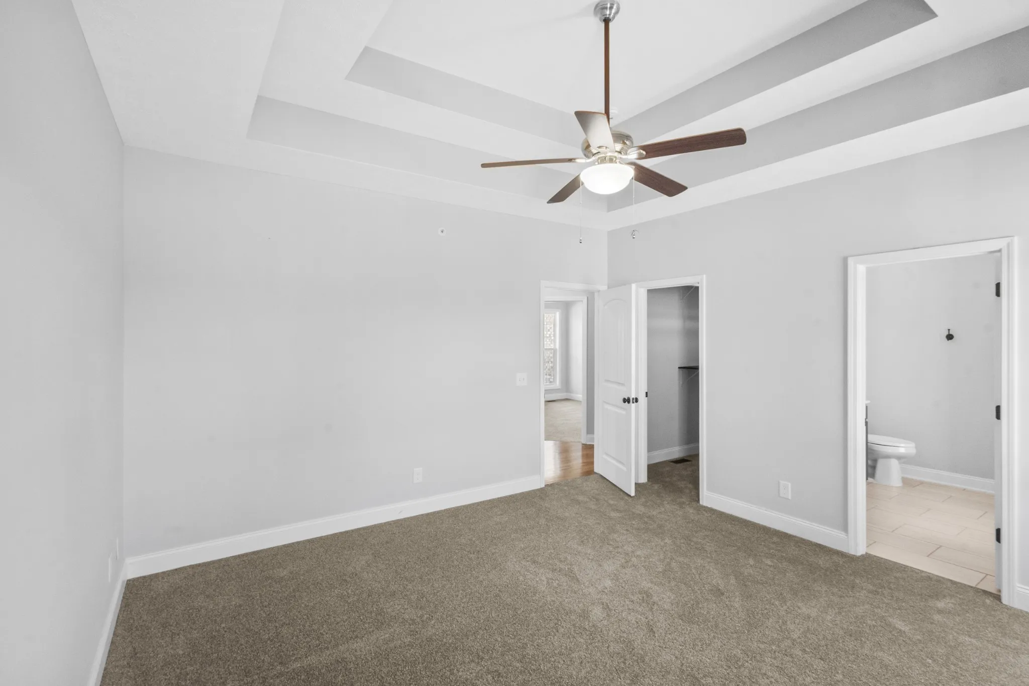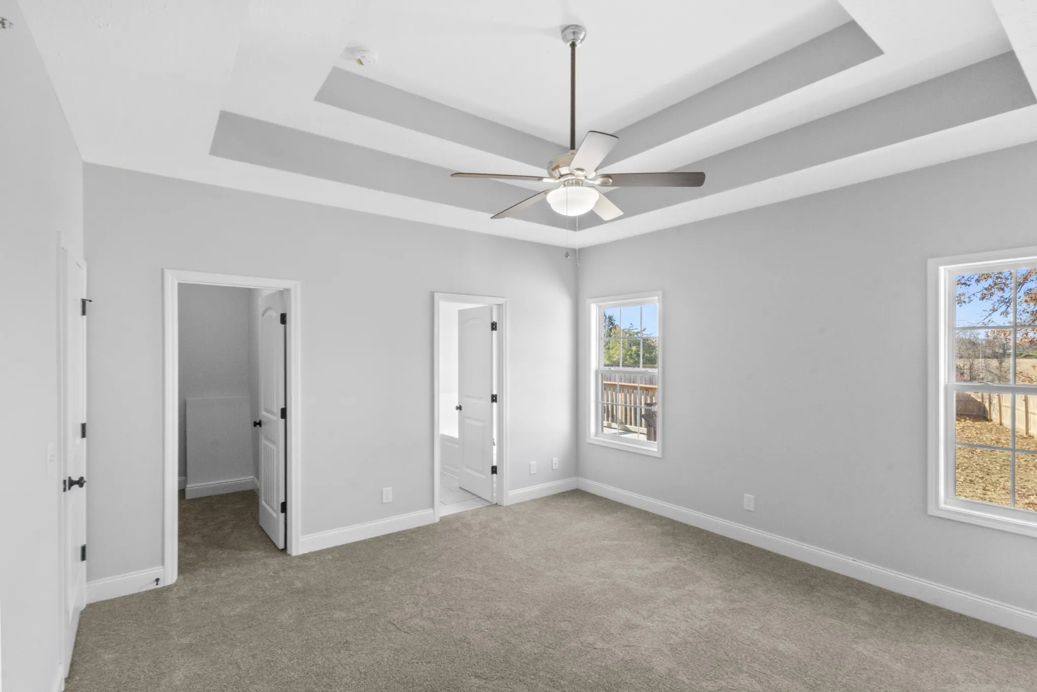 • Graceful tray ceilings with ceiling fan, adding depth and sophistication