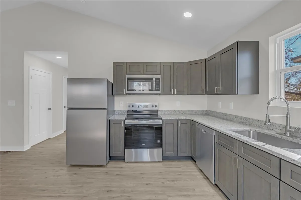 This 1064 sq ft home offers modern finishes with a funtional layout. Featuring granite countertops and soft close kitchen cabinets. Luxury vinyl flooring throughout. The vaulted ceilings in the kitchen and livingroom elevate these common areas. The kitchen is equipped with a stove, microwave, dishwasher, and refrigerator. Convenient stackable washer and dryer also included. Enjoy the outdoors with a covered front porch ideal for relaxing. The backyard deck is perfect for entertaining. This home blends style and comfort in every detail. Built by: Redwood Construction LLC.