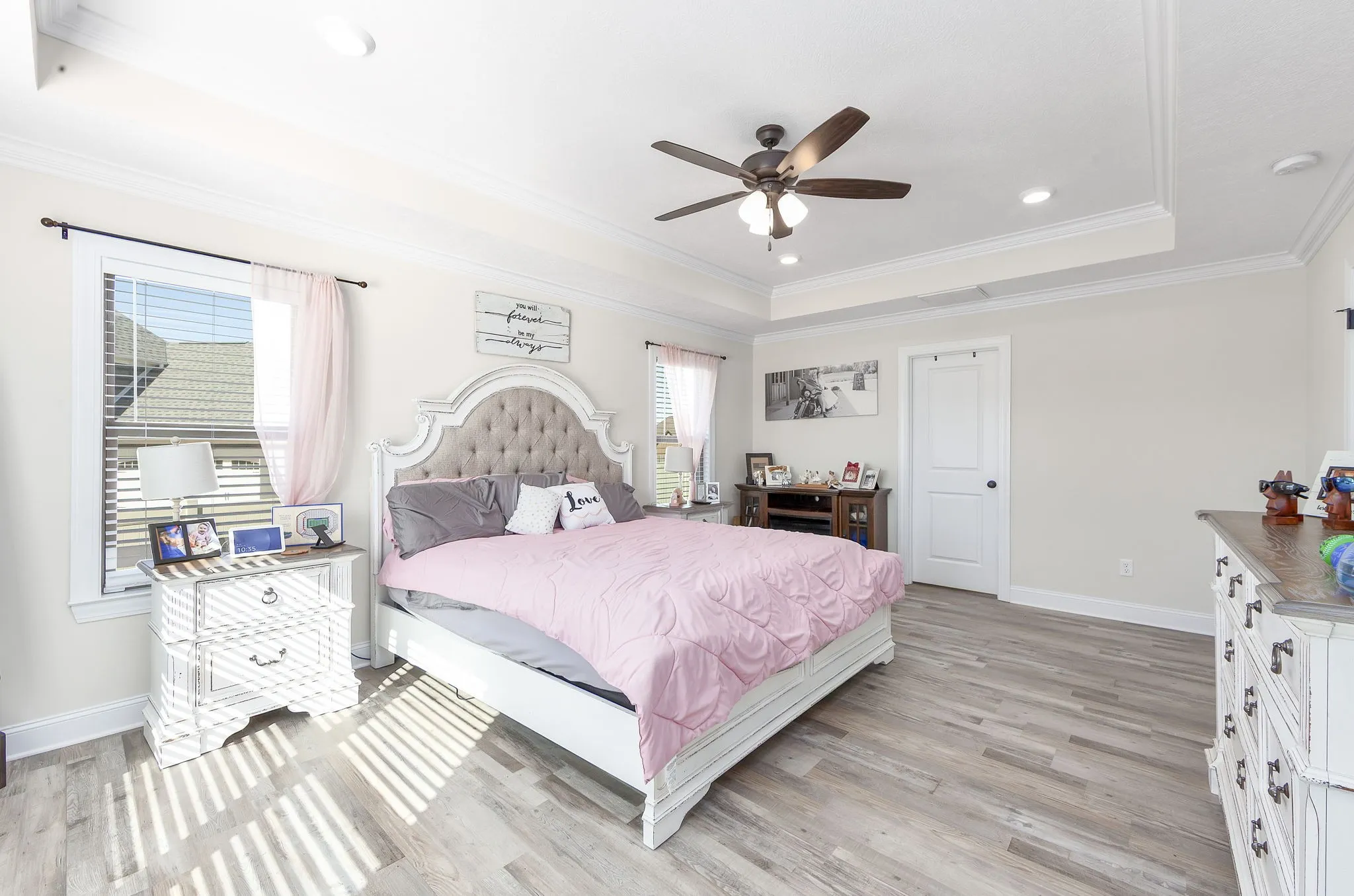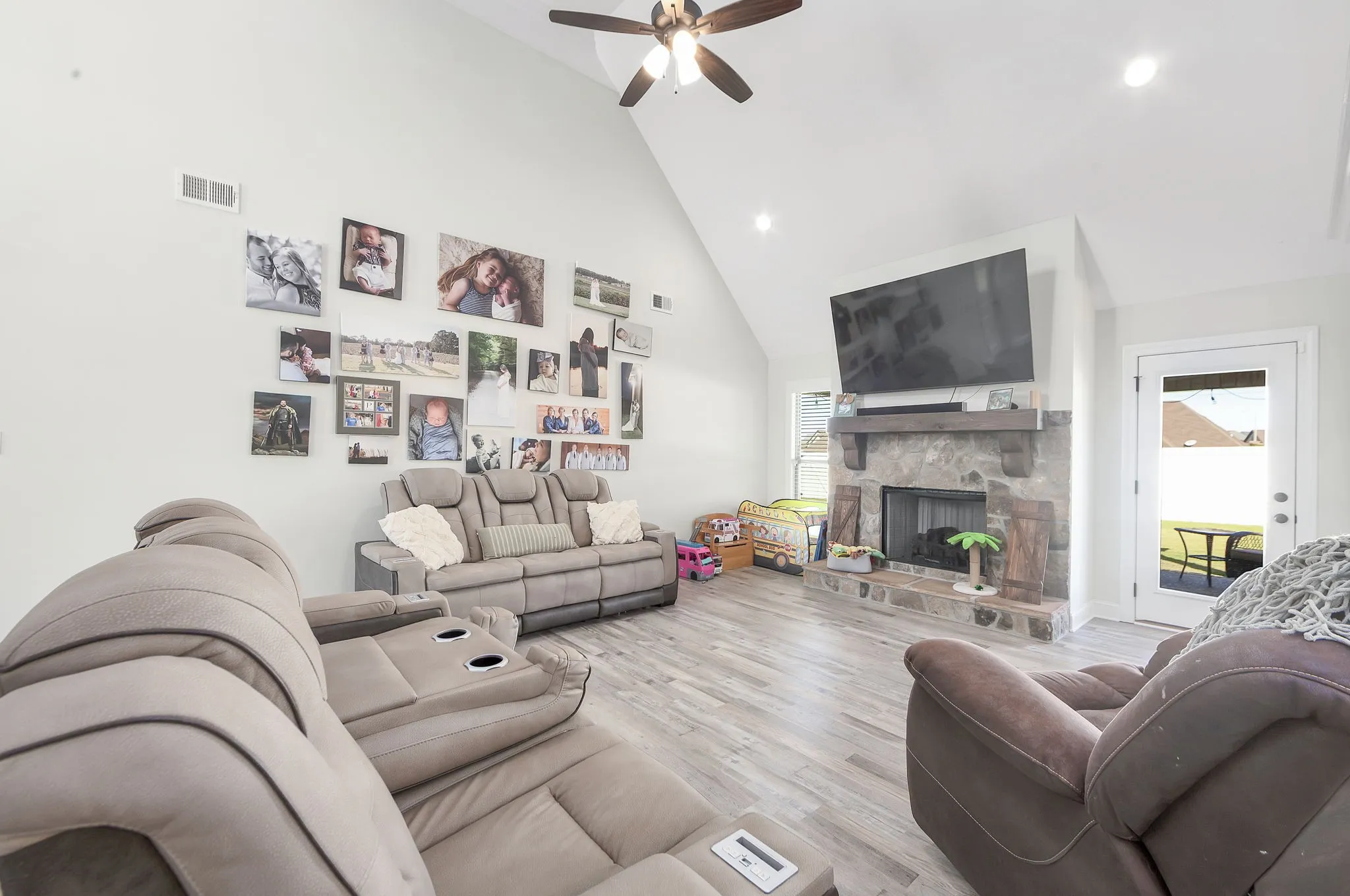Beautiful 5 Bedroom Home in Sought-After Medina Subdivision. Welcome home to this stunning 5-bedroom 3-bath home located in one of Medina’s most desirable neighborhoods. Built just 2 years ago, this home offers the perfect blend of modern comfort and timeless style. Step inside to find gorgeous LVP flooring throughout the main level and cozy carpet upstairs. The spacious living room features vaulted ceilings and a beautiful stone fireplace, creating a warm and inviting atmosphere. The formal dining room with elegant wainscoting is perfect for entertaining. The kitchen is a dream — featuring stainless steel appliances including double ovens and a gas cooktop, tons of cabinet space (ideal for a coffee bar), a pantry, and a charming farmhouse sink. The eat-in area overlooks the backyard, making it a bright and cheerful space for everyday meals. The primary suite is a true retreat with tray ceilings, his and her closets, and a luxurious bath complete with a soaking tub, separate tile shower, and dual vanities. Two additional bedrooms and two full baths are located on the main level, while upstairs offers two more bedrooms, a large bonus room, and another full bathroom — plenty of space for family or guests. Additional features include a large laundry room, oversized garage with ample storage, and a walkout attic. Outside, enjoy a covered patio overlooking the fenced backyard — perfect for relaxing or entertaining. Smart and efficient, this home includes a tankless water heater, two HVAC units, Amazon smart thermostats, WiFi-connected garage door openers, and an ADT security system with cameras, sensors, and a video doorbell. A current termite contract adds even more peace of mind. This beautiful home truly has it all — space, style, and smart features — and is ready for its new owner to move right in.