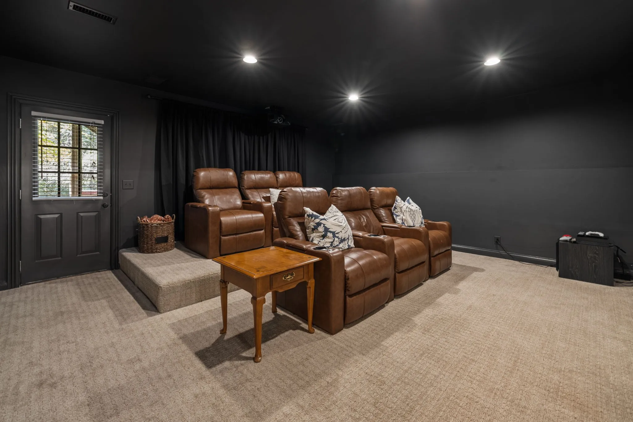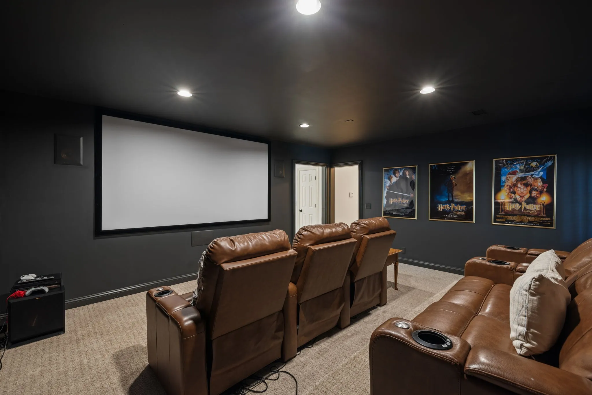 The spacious primary suite feels like a retreat, complete with French doors, dual vanities with a makeup counter, and a large soaking tub for ultimate relaxation. The home’s thoughtful layout includes a fully finished basement with a kitchenette and a theater/media room, offering the perfect spot for movie nights or game days.