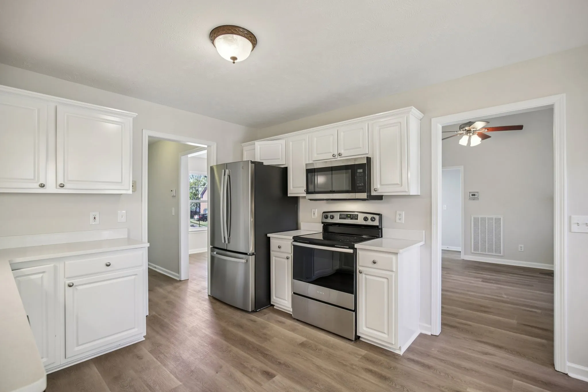 Experience the Comfort of Home! Nestled in a well-established neighborhood on a quiet cul-de-sac, this charming home invites you to create lasting memories from day one. Imagine cooking in your newly updated kitchen with fresh countertops and stainless appliances, relaxing on the cozy new floors, or enjoying peaceful mornings surrounded by natural light from new windows. Step outside to the fenced backyard, framed by mature trees a private sanctuary perfect for family gatherings, playtime, or quiet evenings under the stars. Every detail has been thoughtfully updated, making this more than a house. It’s a place where your next chapter begins and memories are made.