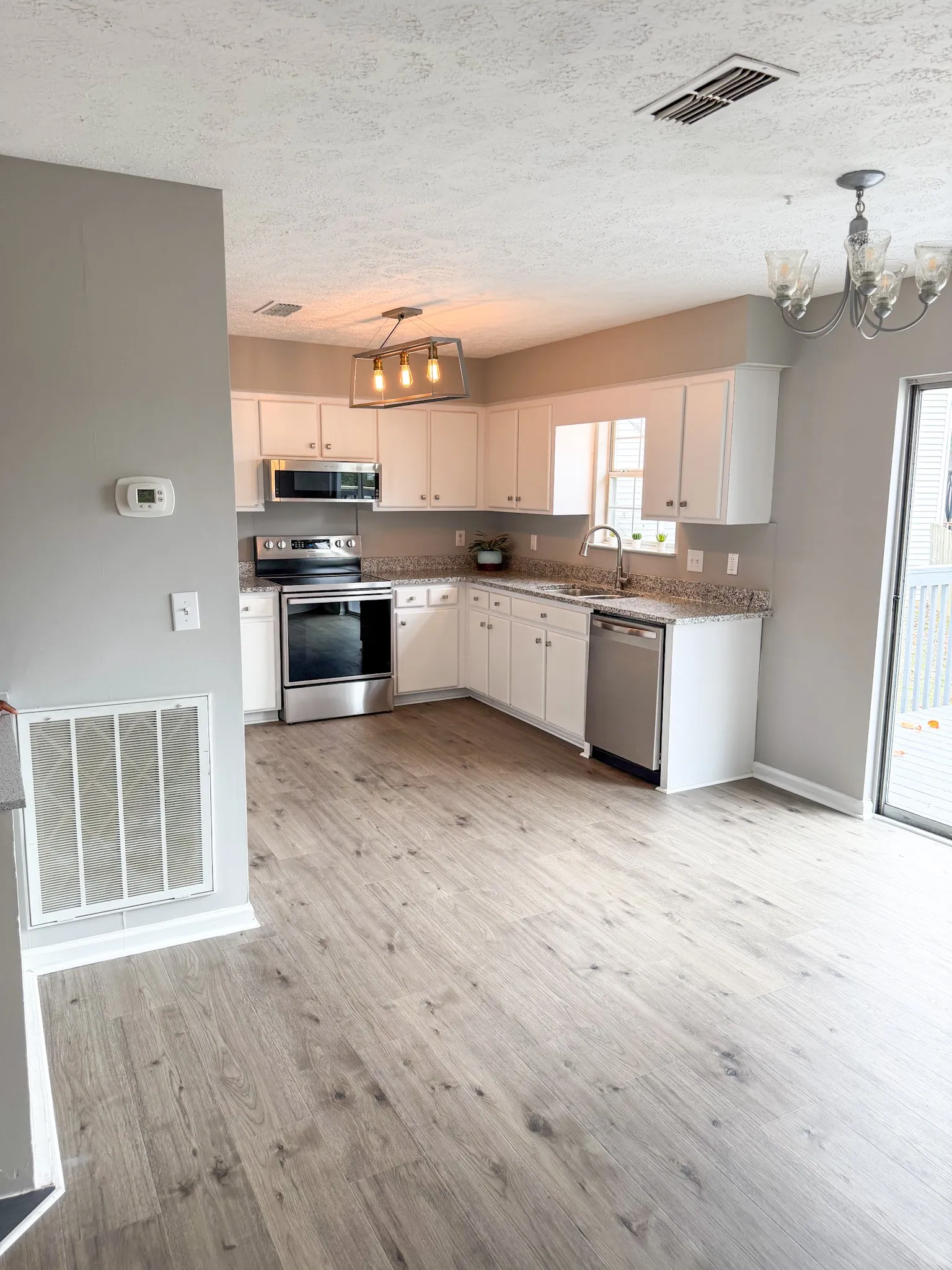 Remodeled, new flooring, paint, kitchen appliances, freshly painted deck , shows well!