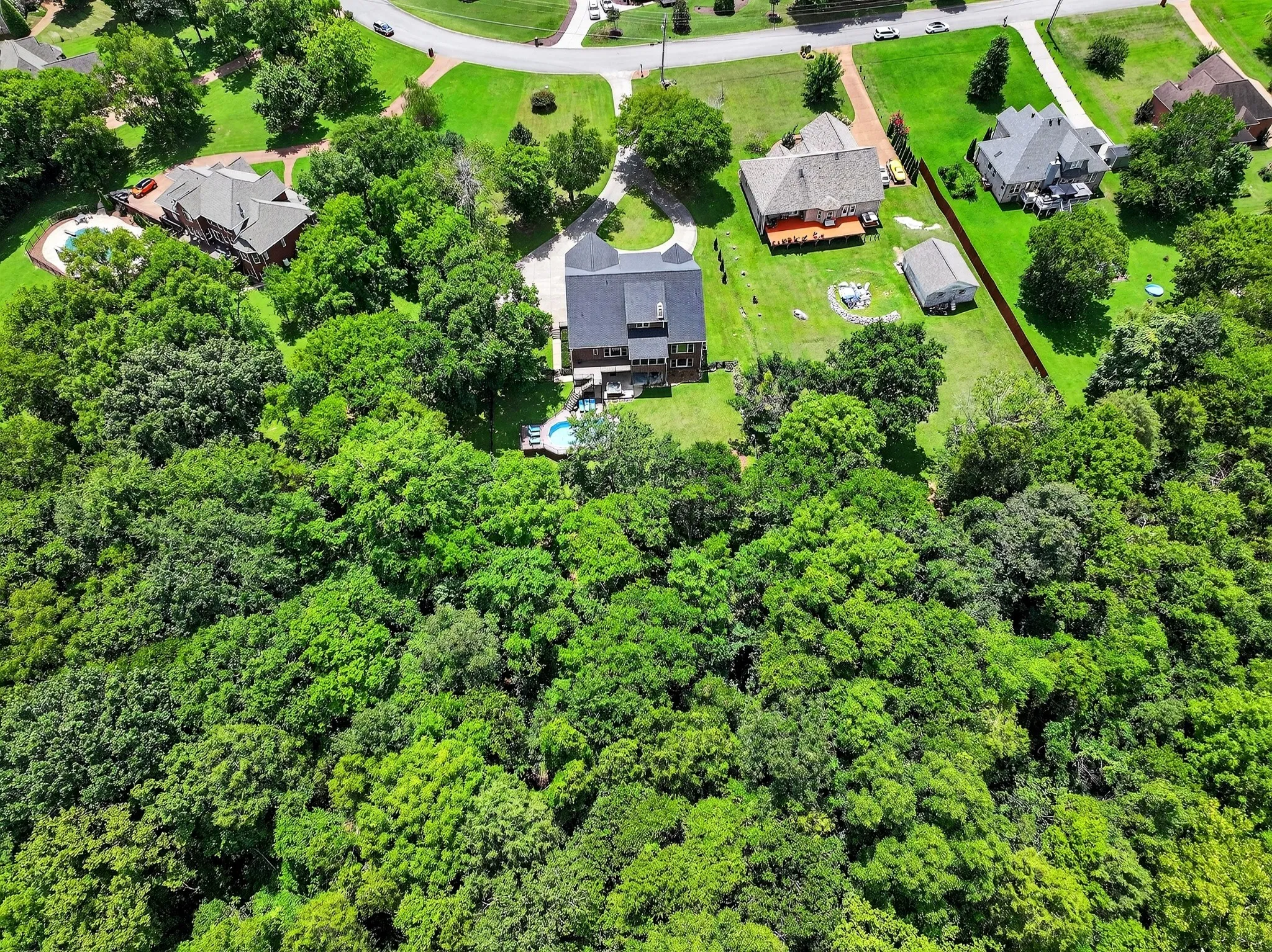 THIS IS A BIG HOUSE!!! This multigenerational home has 4 BR and offers 2 other versatile flex rooms with walk-in closets that can be customized to fit your unique needs. These additional spaces provide endless possibilities.. The main story has a large, newly renovated gourmet kitchen showcasing a 12-foot quartzite (top tier quality) island. Picture frame windows and a screen room overlook Corps of Engineers property, leading to the creek/lake (where you can kayak or fish), which provides even more appeal to this private1-acre lot. Seller has approval from the Corp of Engineers to mow to Creek. The fully finished basement resembles a second house containing a kitchen, sleeping quarters, one bathroom, a living room, a dining room, a garage, and a laundry room. The pool, hot tub, deck, parking space, and private outdoor area make this home perfect for hosting. Parking is easy in the circular driveway with a convenient turnaround that provides easy access to the 2-car garage. Additionally, there is another garage bay for your toys/tools that is rear facing (No driveway access). The roof is 2 years old. Two of the HVAC Systems are also only 2 years old. Also, LOTSSSS of storage space!!! COME CHECK IT OUT TODAY!
