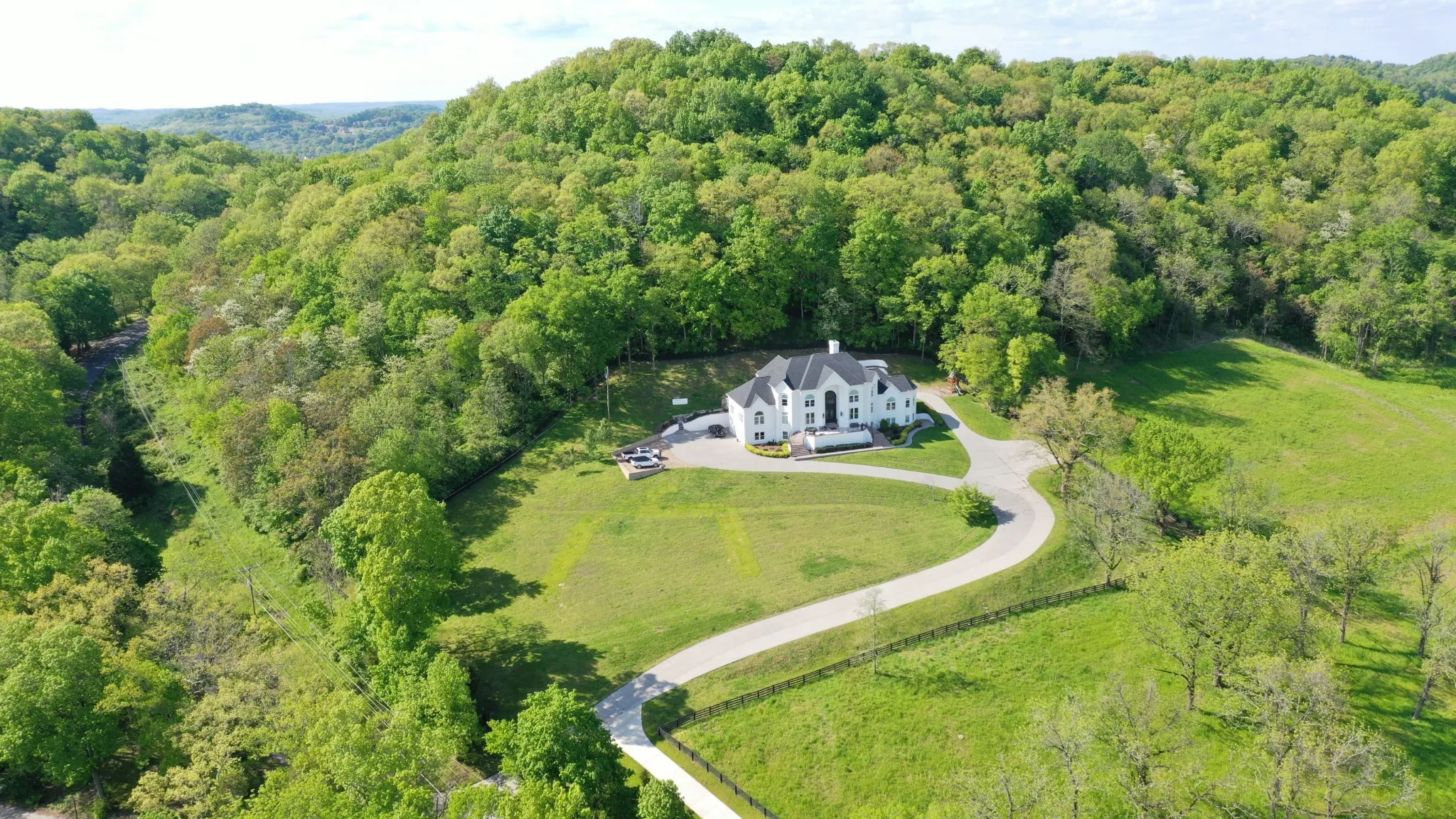 Location, Location, Location! Set on over 4 pristine acres just minutes from Cool Springs and I-65, this gated hilltop retreat delivers one of the most breathtaking views in all of Williamson County. Tucked peacefully off the road and wrapped in four-board fencing, the property offers a regal sense of arrival and a level of privacy rarely found this close to town.\n
